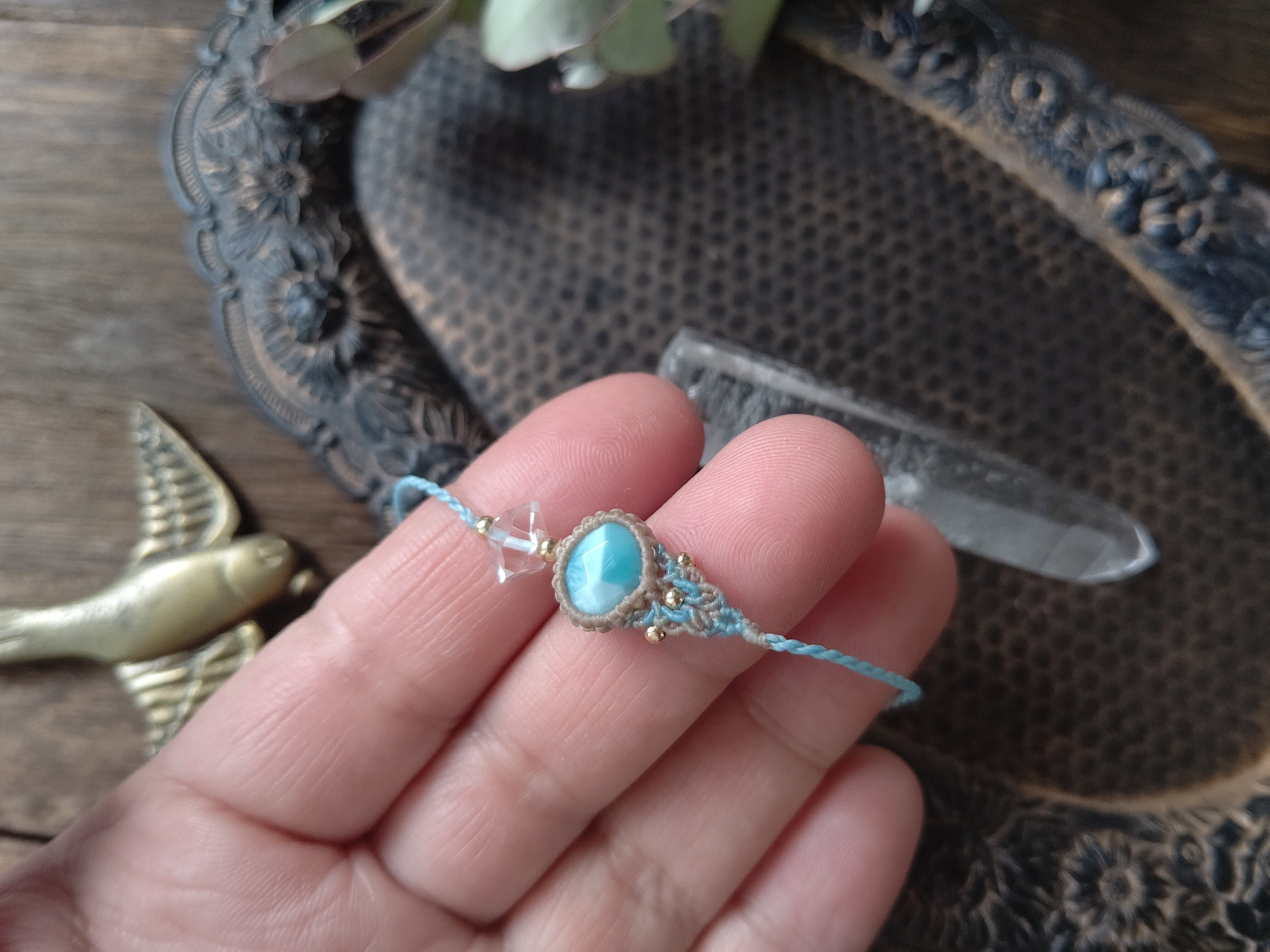 ハーキマーダイヤモンド×ラリマーのアシンメトリーブレスレット