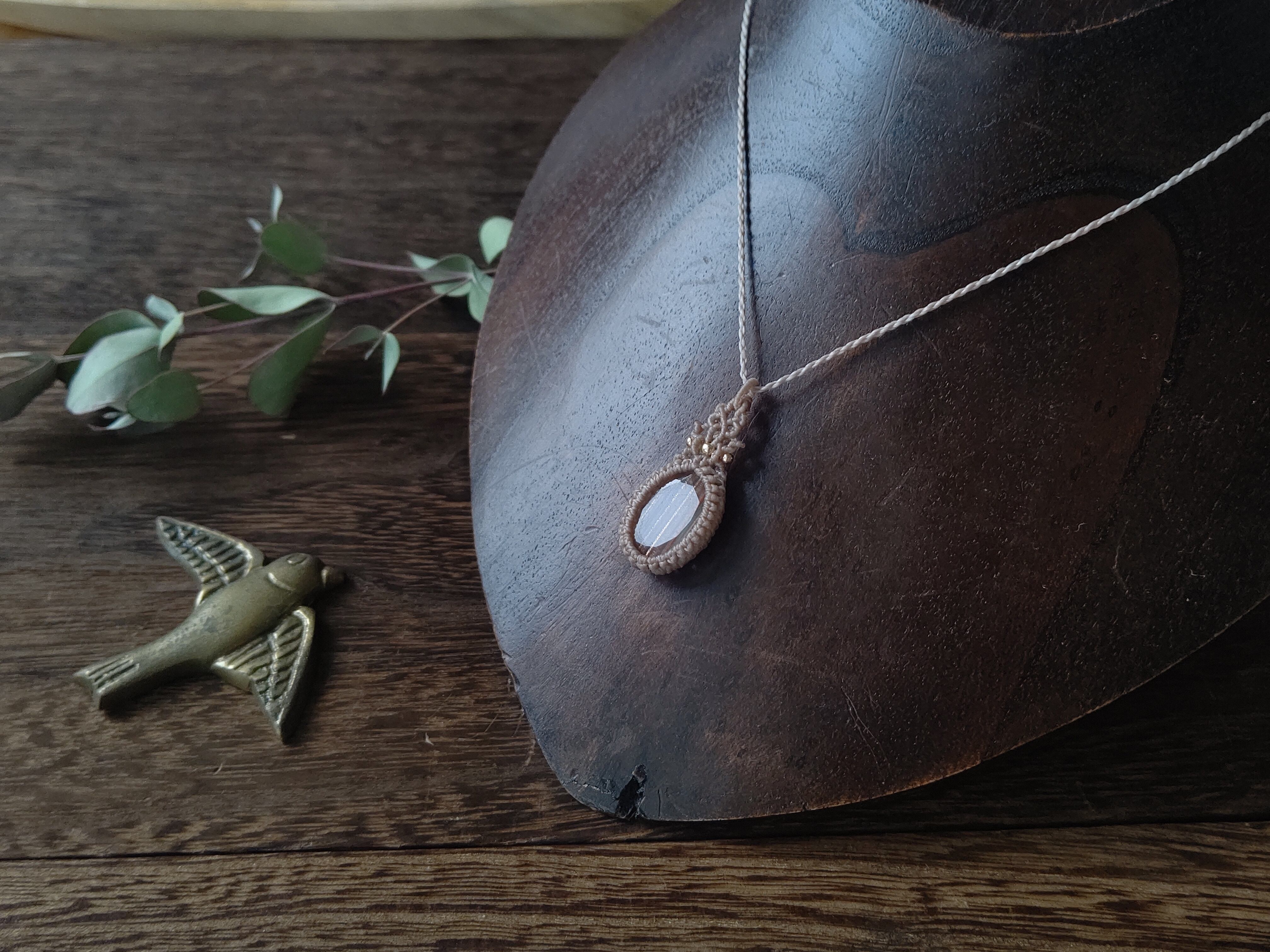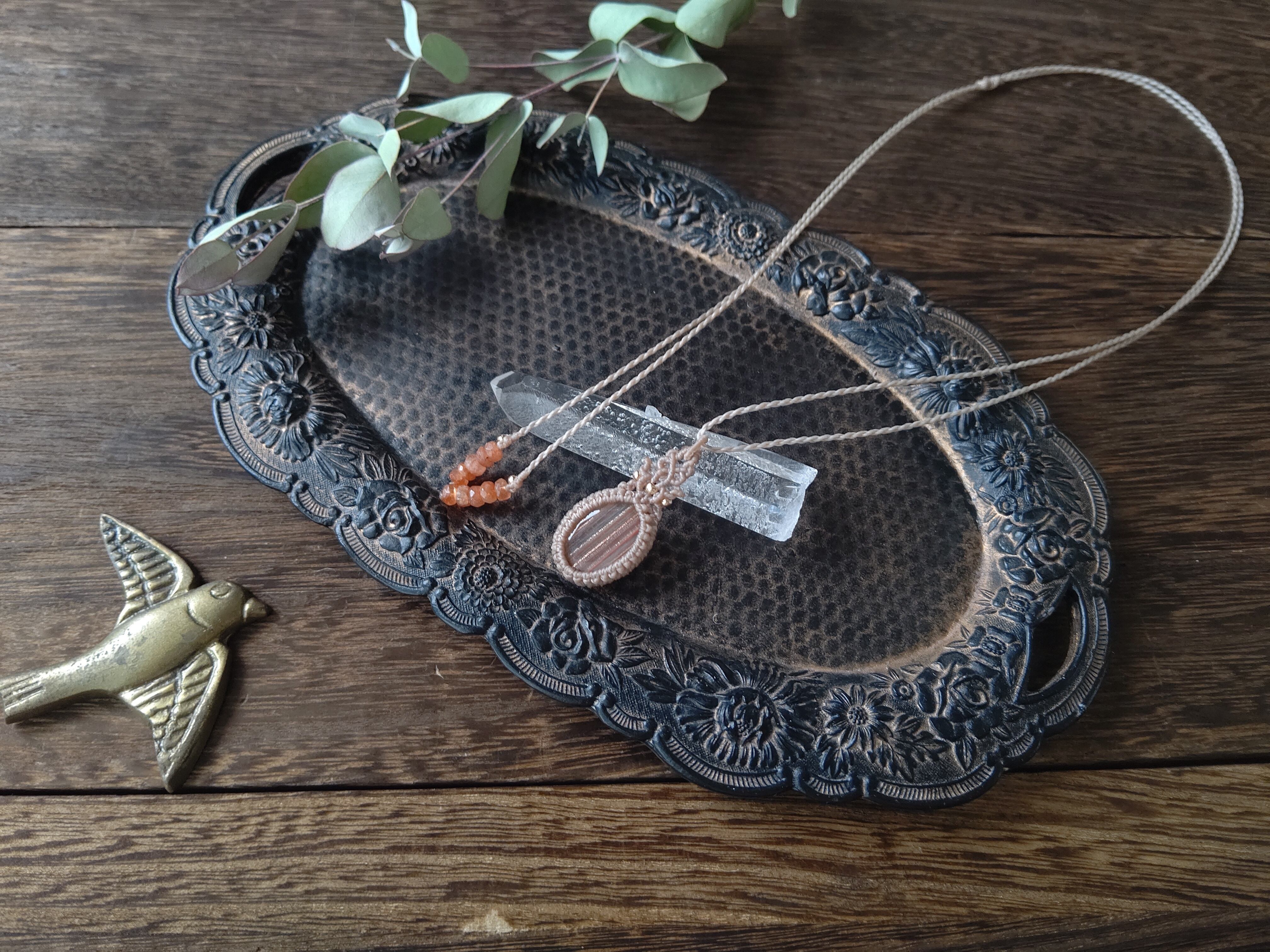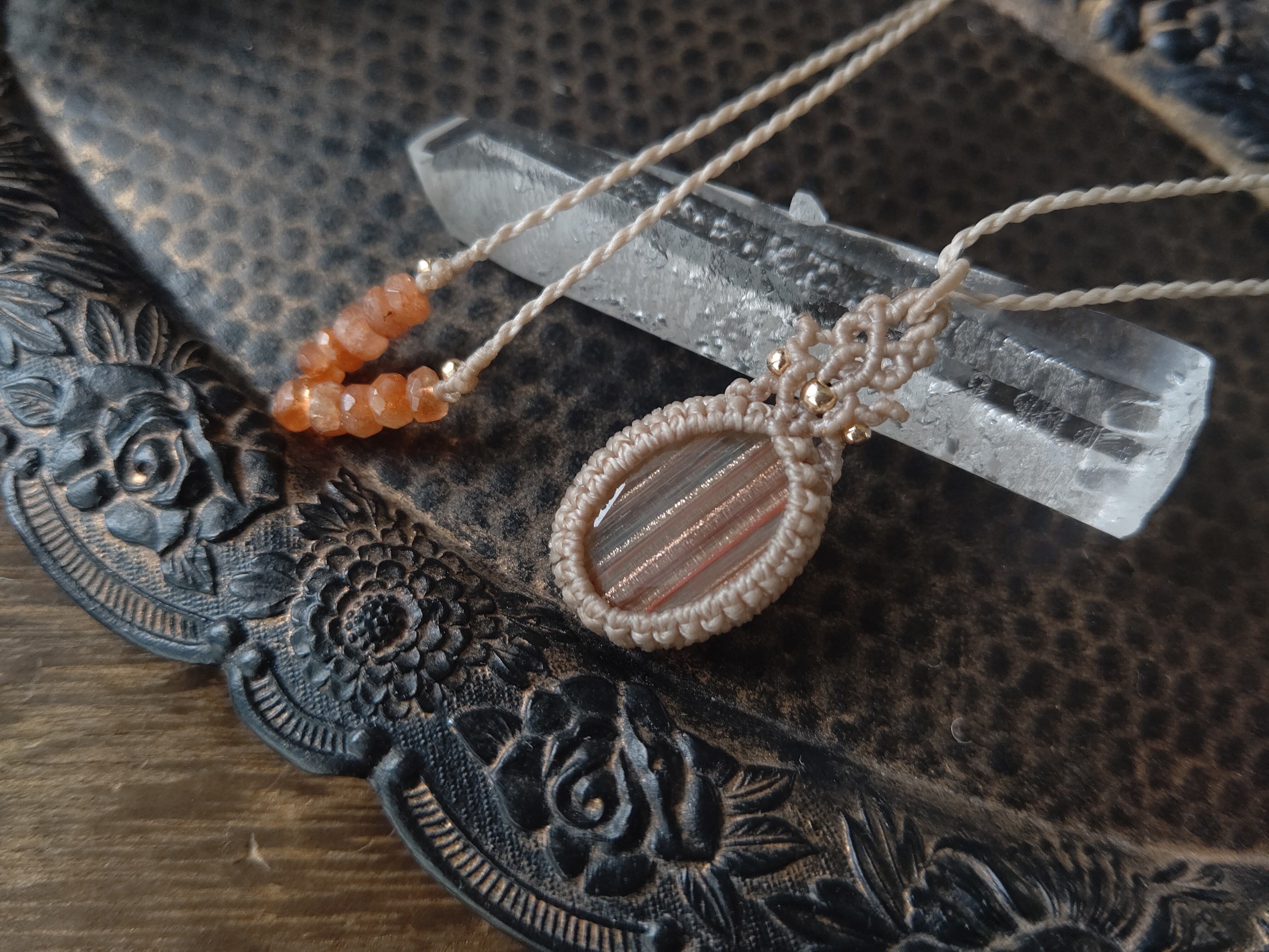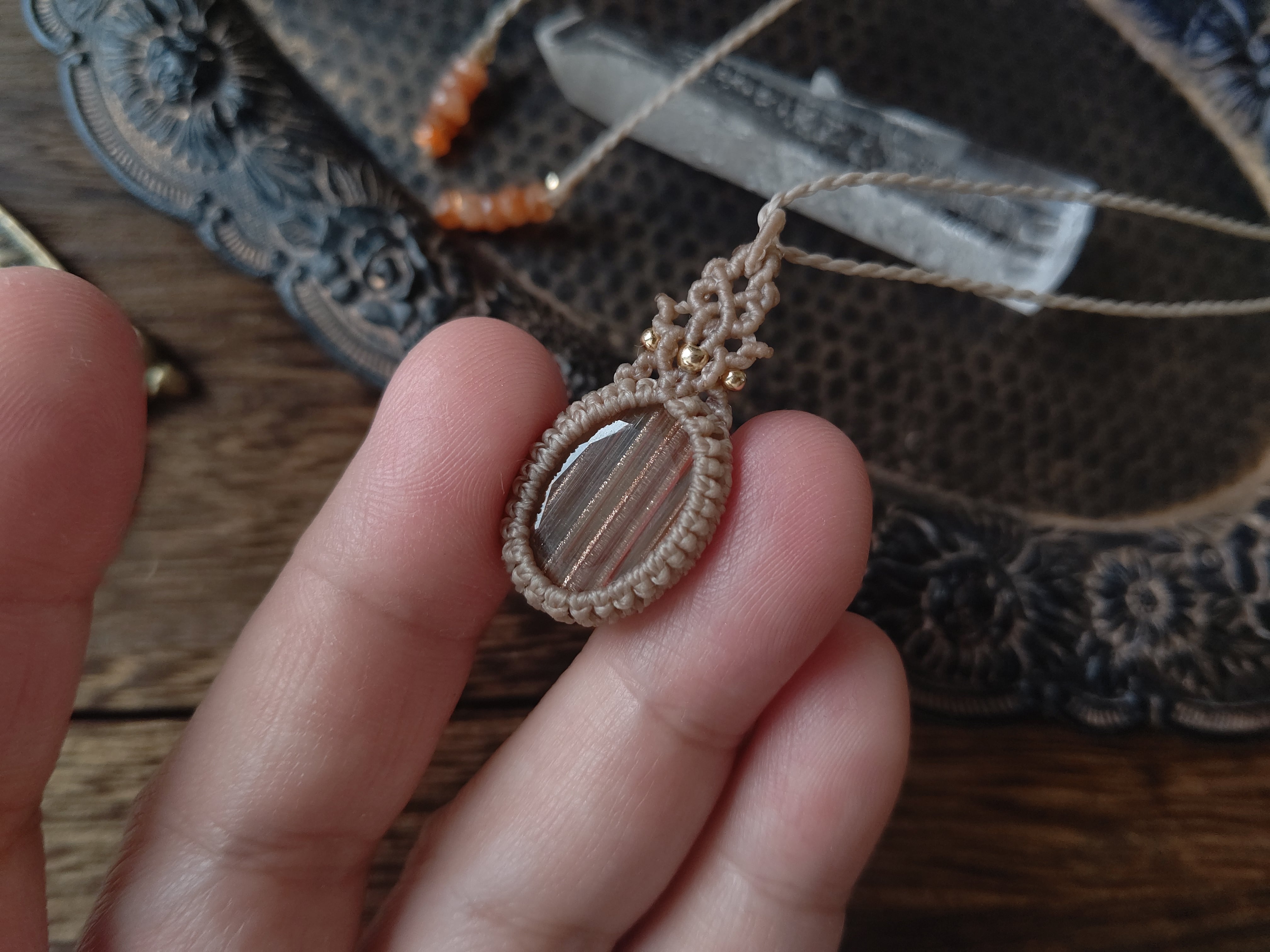 ≪ペンダント≫ルチルクォーツとスキャポライトのタブレットルースのマクラメペンダント