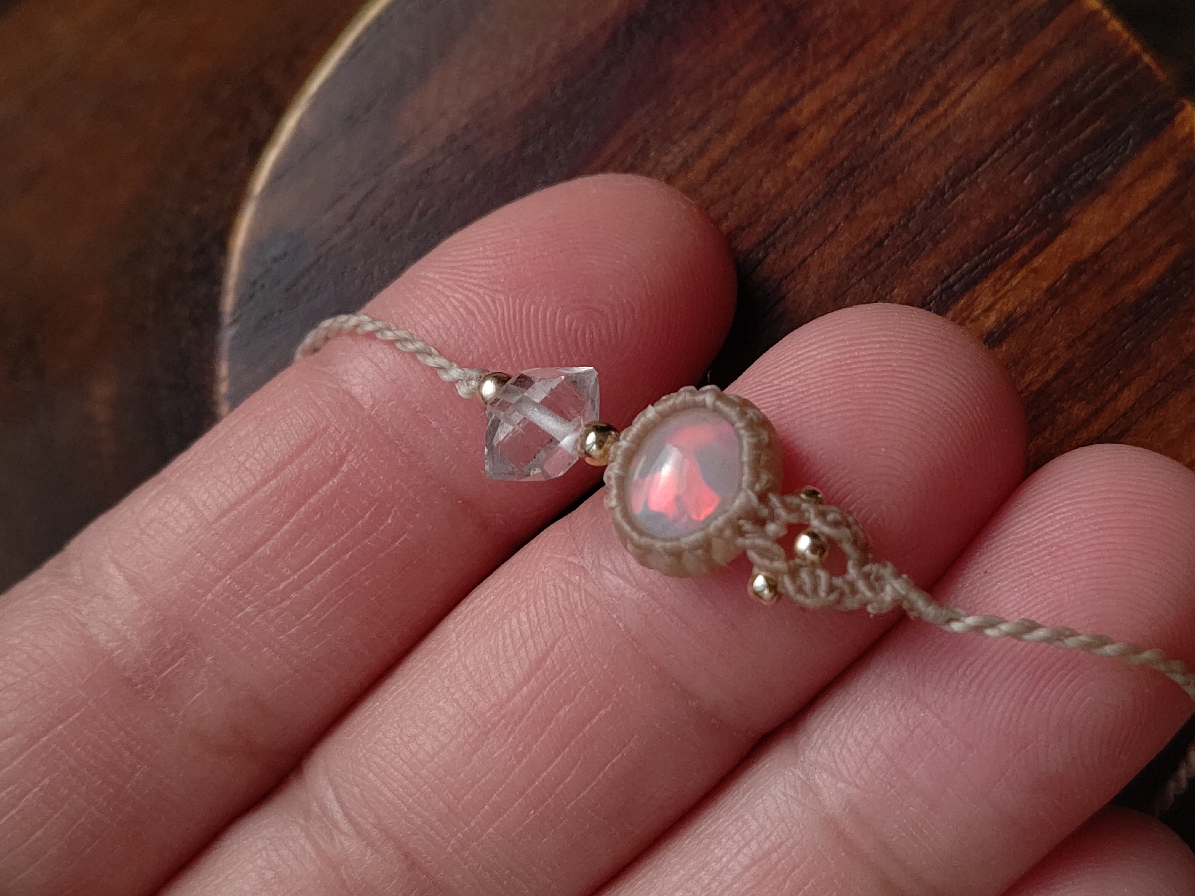 エチオピア産オパール×ハーキマーダイヤモンドのアシンメトリーブレスレット