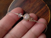 ハーキマーダイヤモンドの原石とエチオピア産オパールを組み合わせスッキリとした細身のデザインのアシンメトリーブレスレットを製作しました。