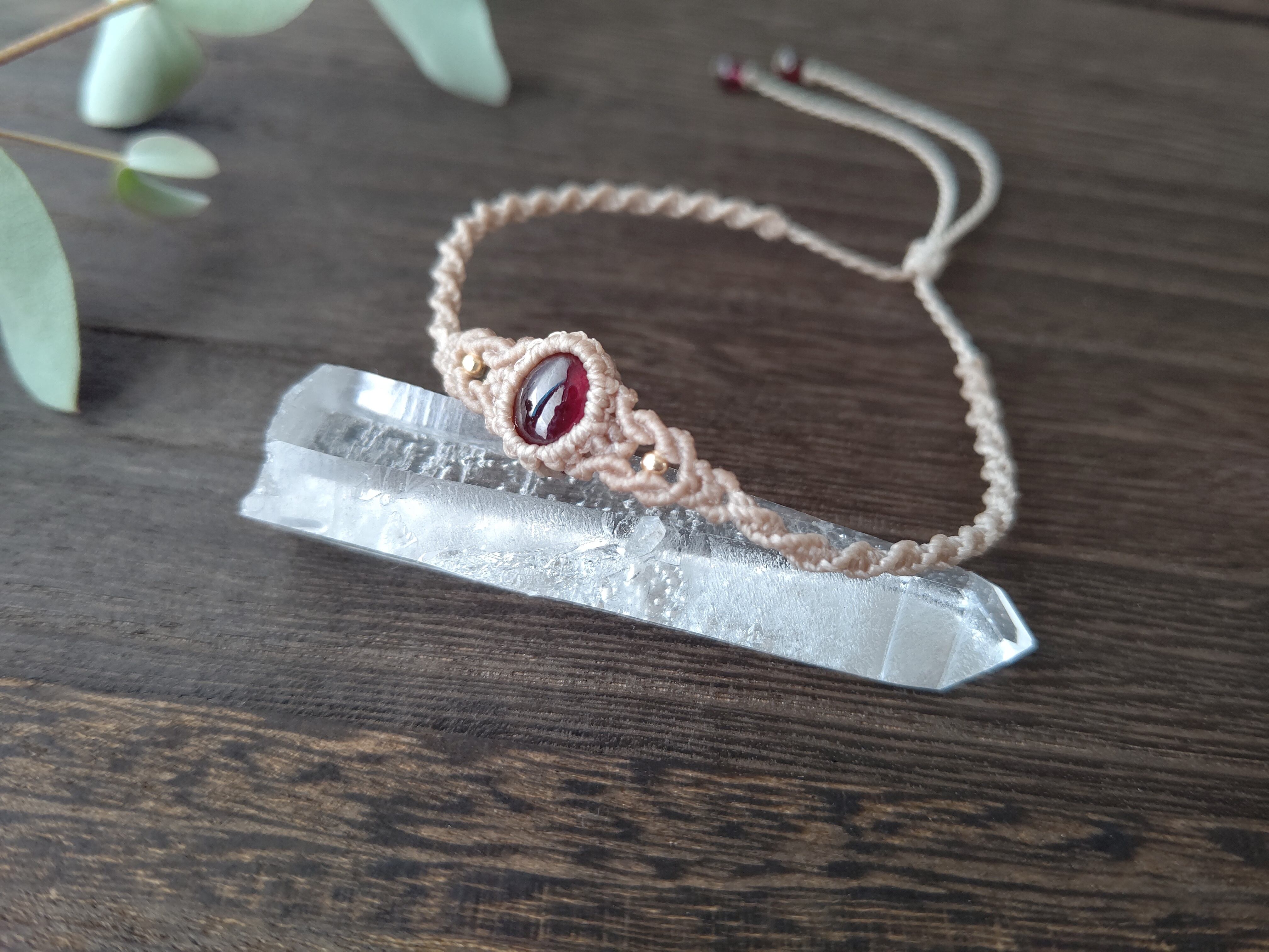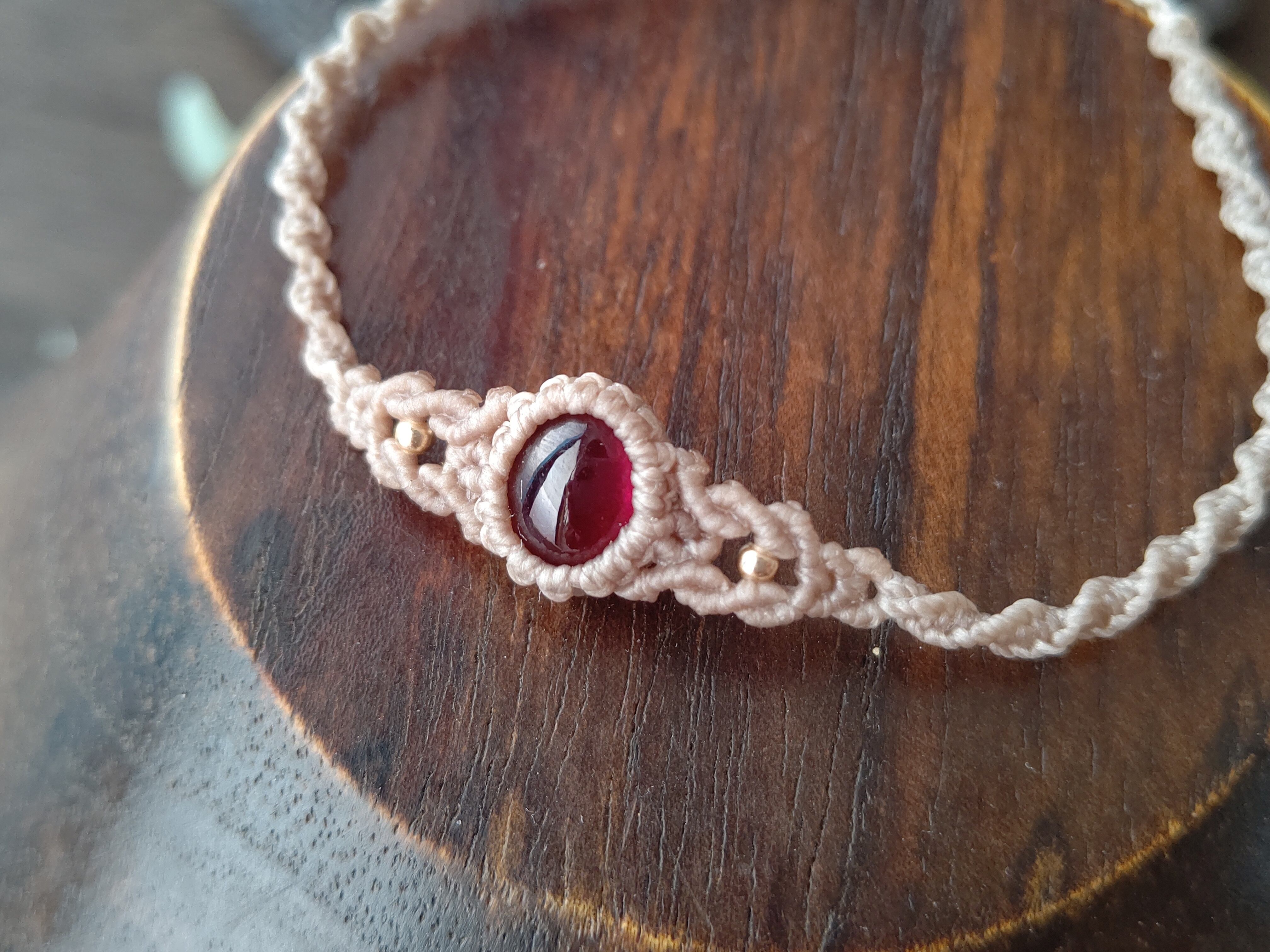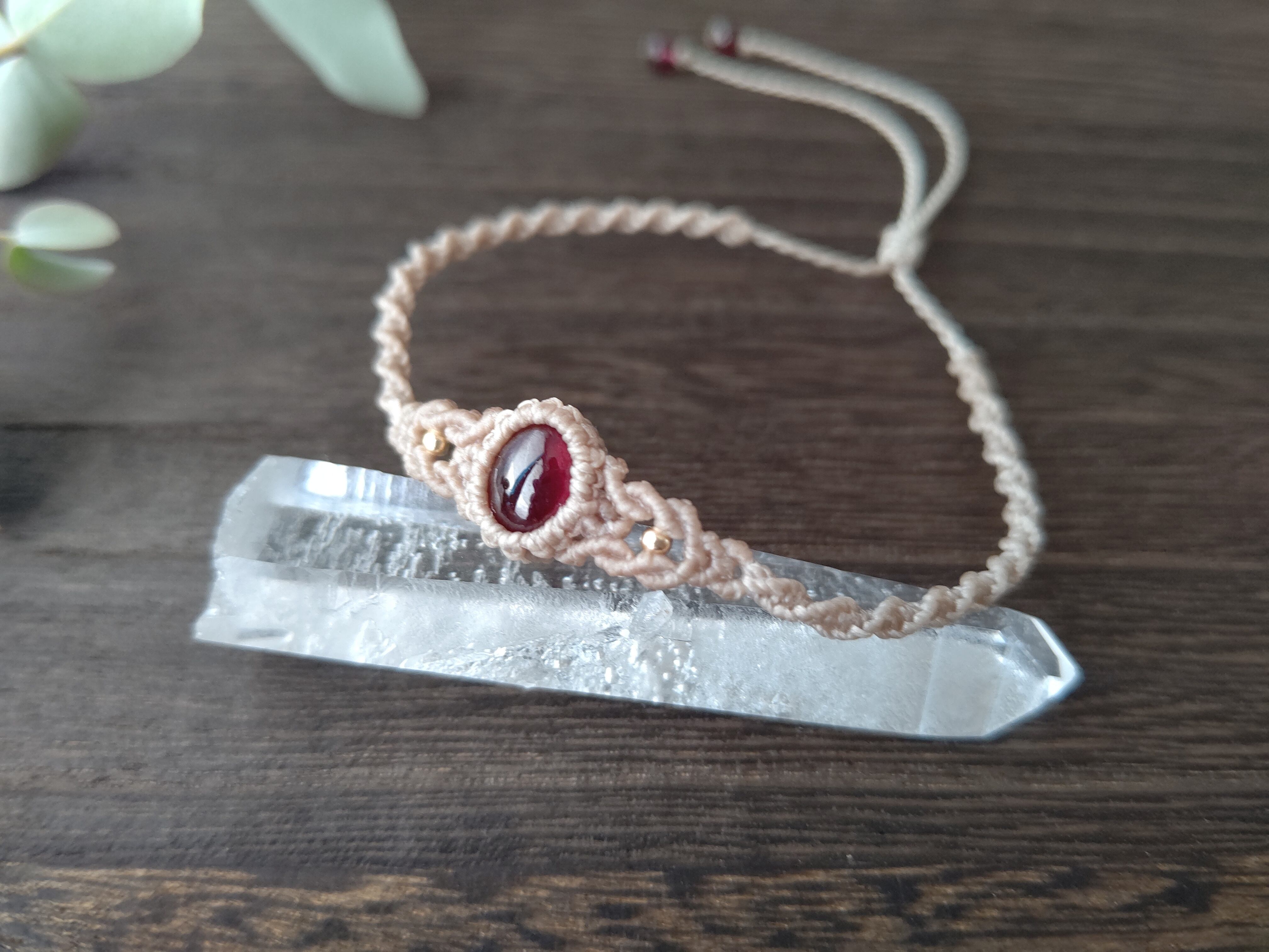 ≪セミオーダー対応/受注製作≫ ヘソナイトガーネットのマクラメブレスレット(糸色;カフェオレ)