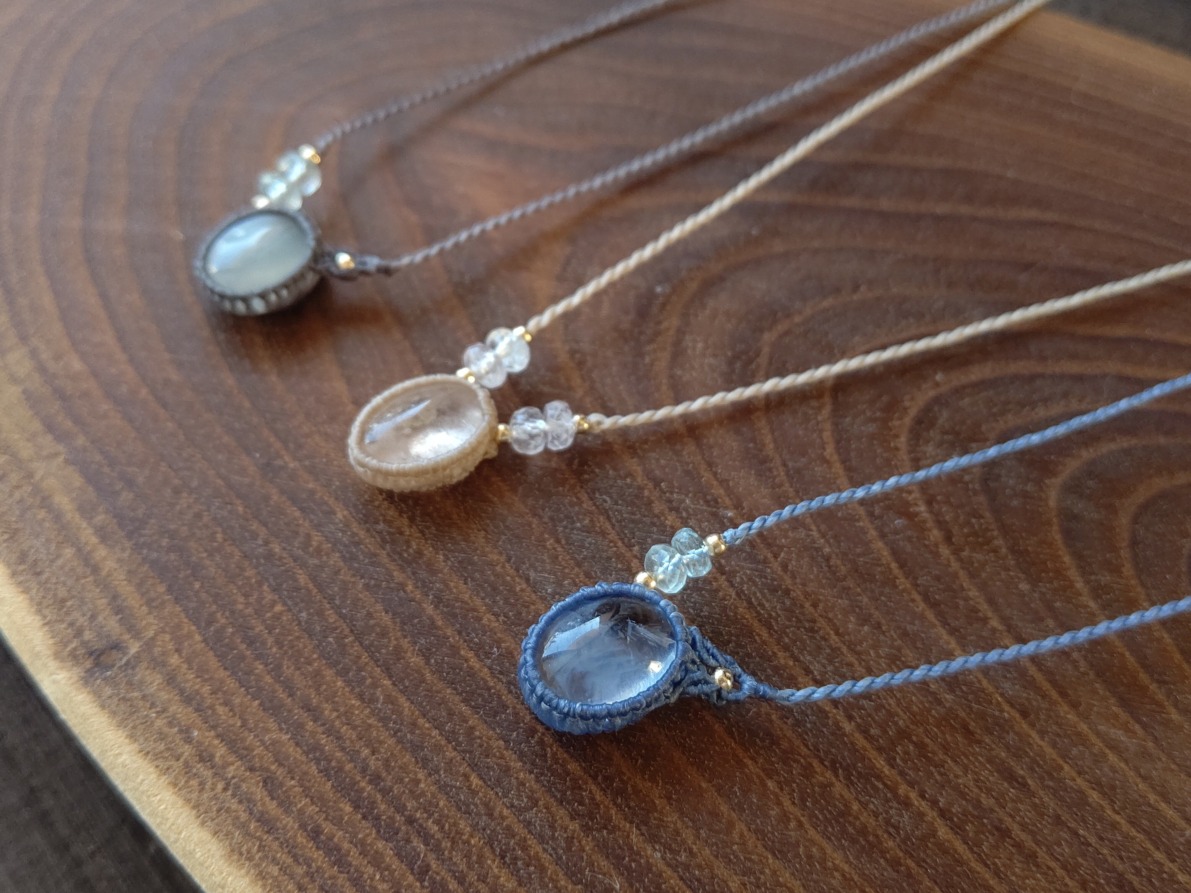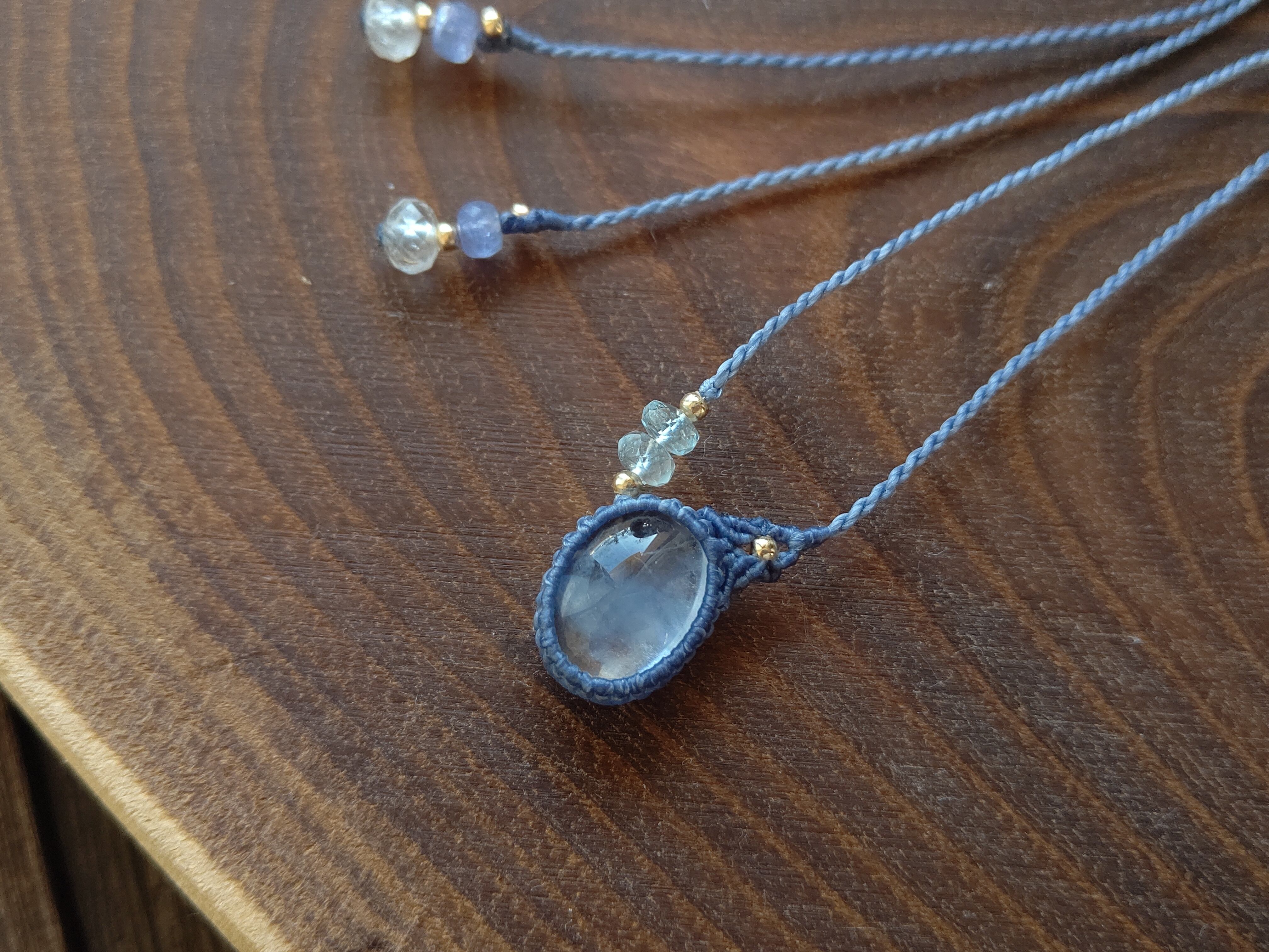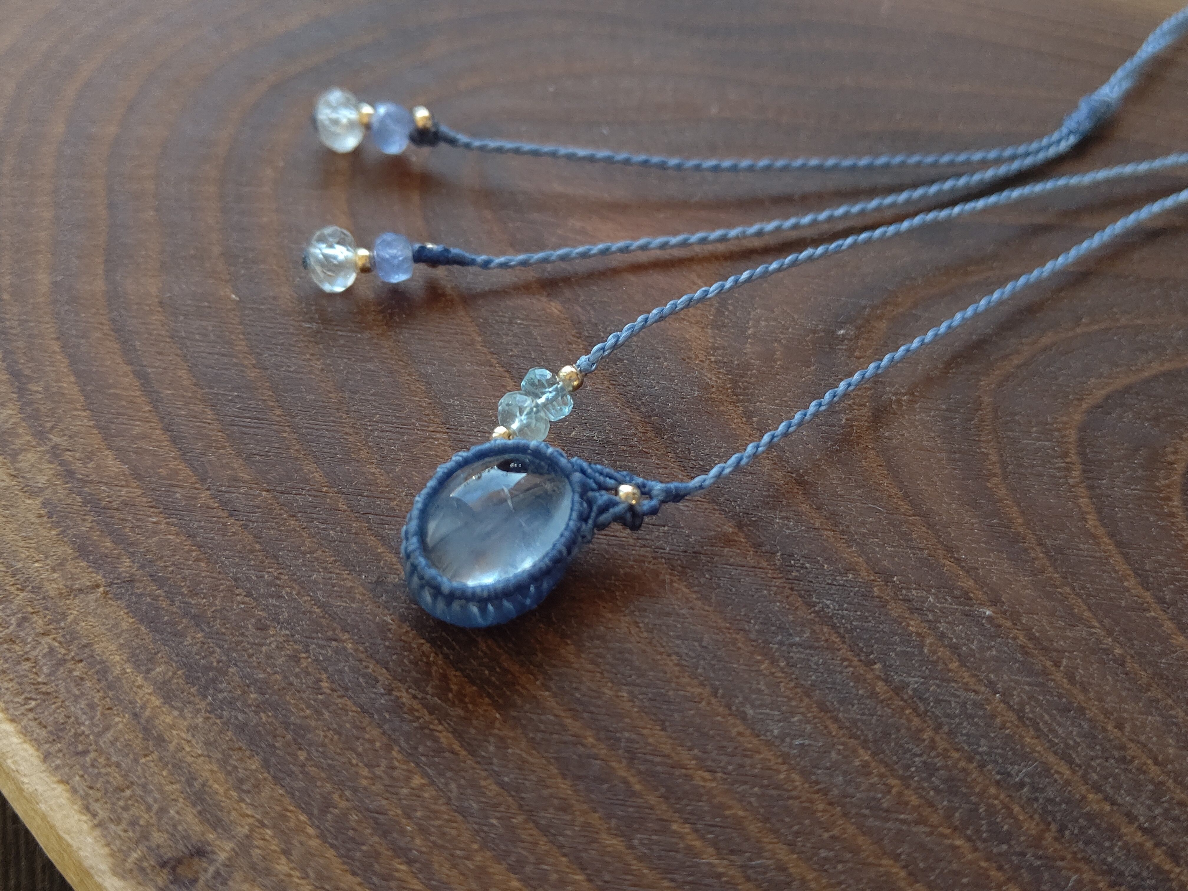 エンジェルフェザークォーツ×宝石質アクアマリンのマクラメネックレス