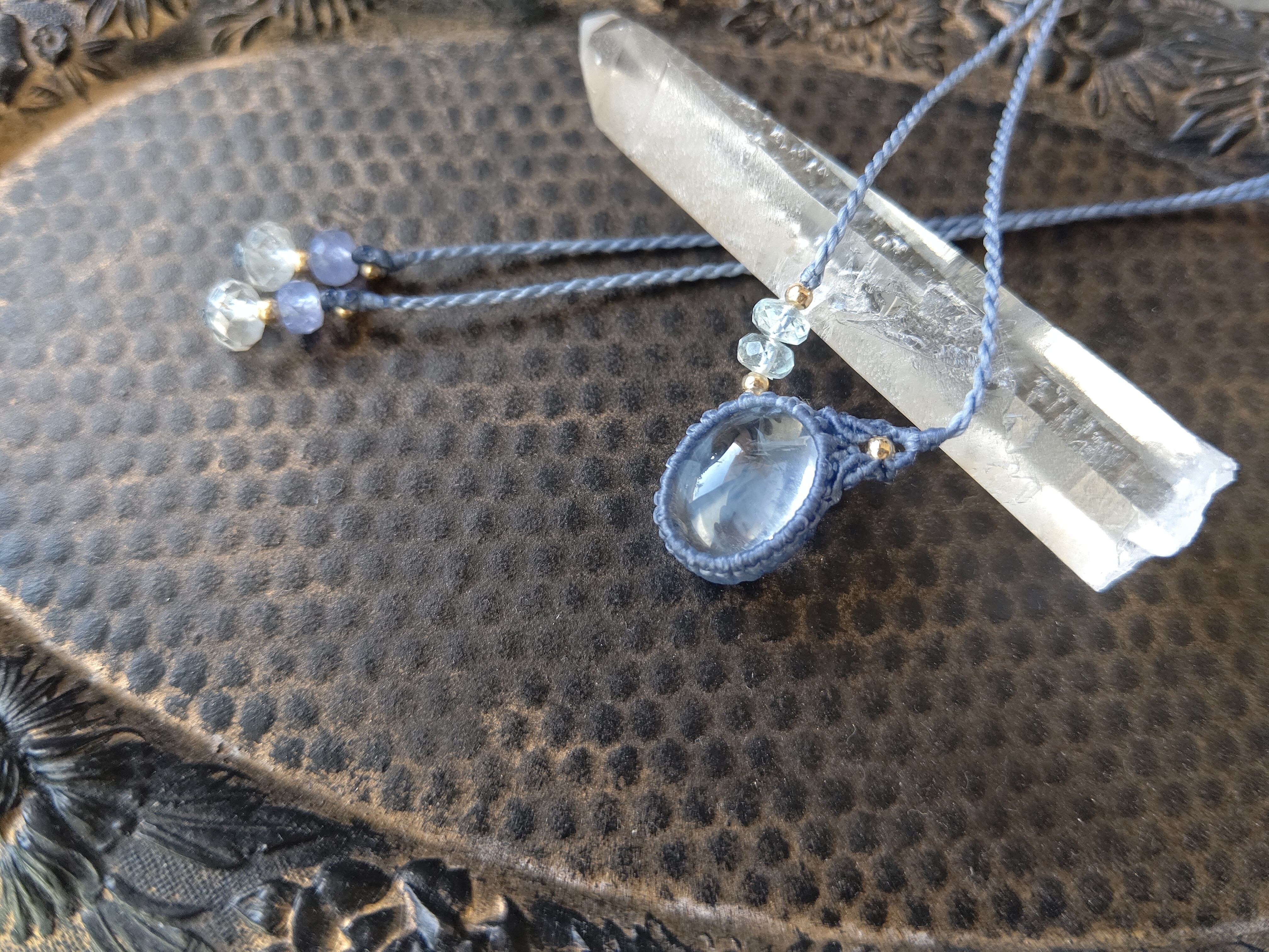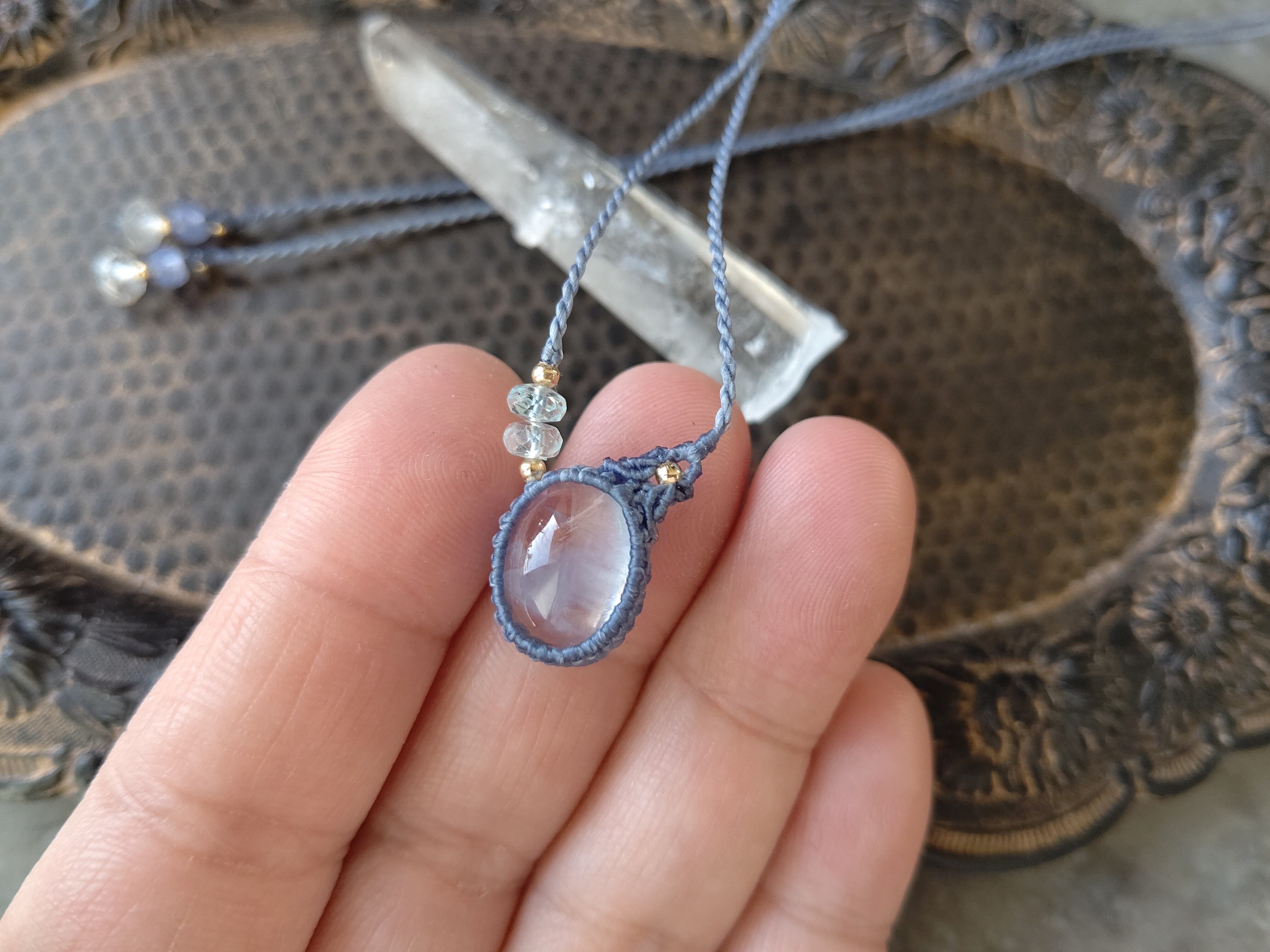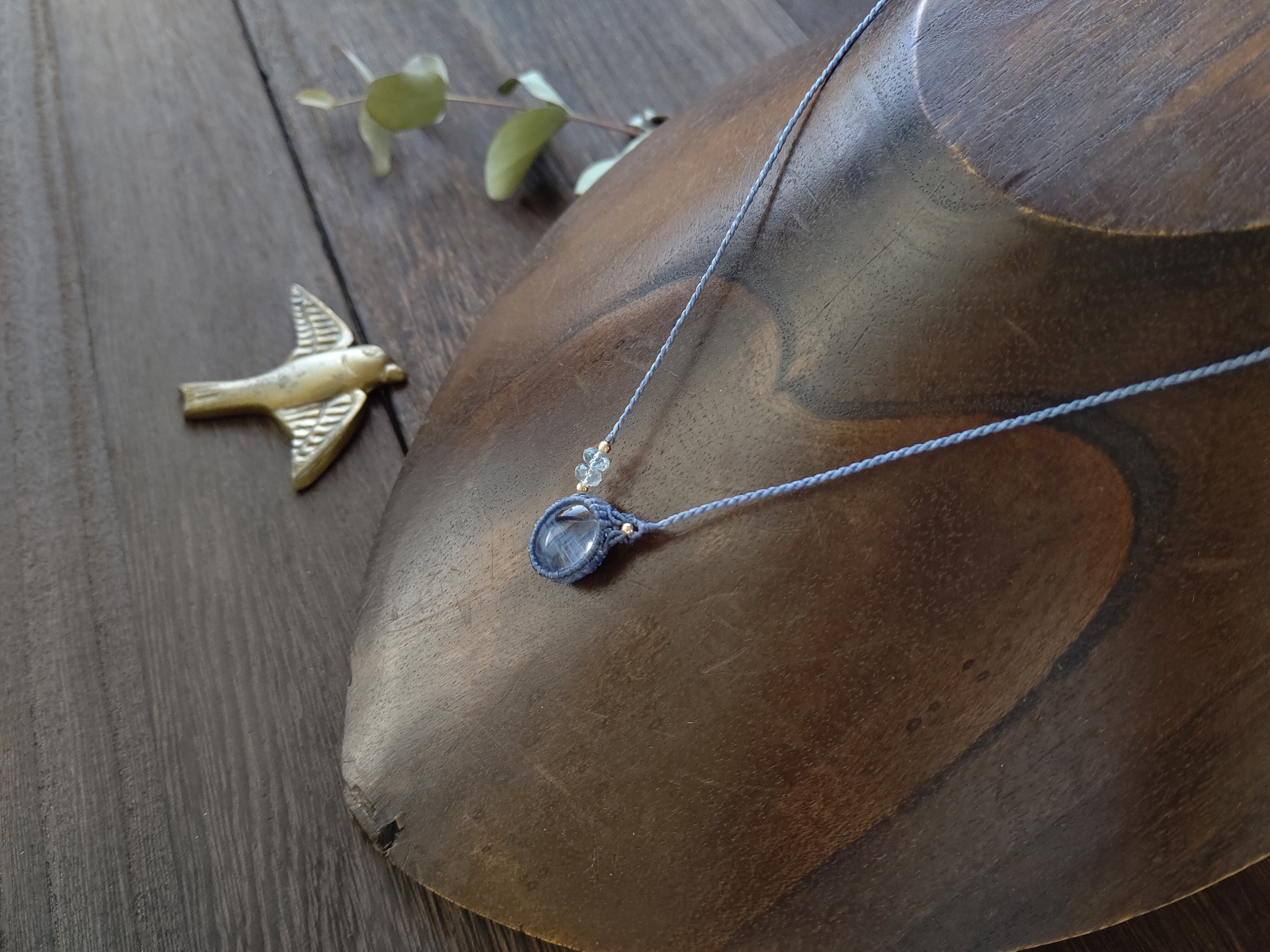 エンジェルフェザークォーツ×宝石質アクアマリンのマクラメネックレス