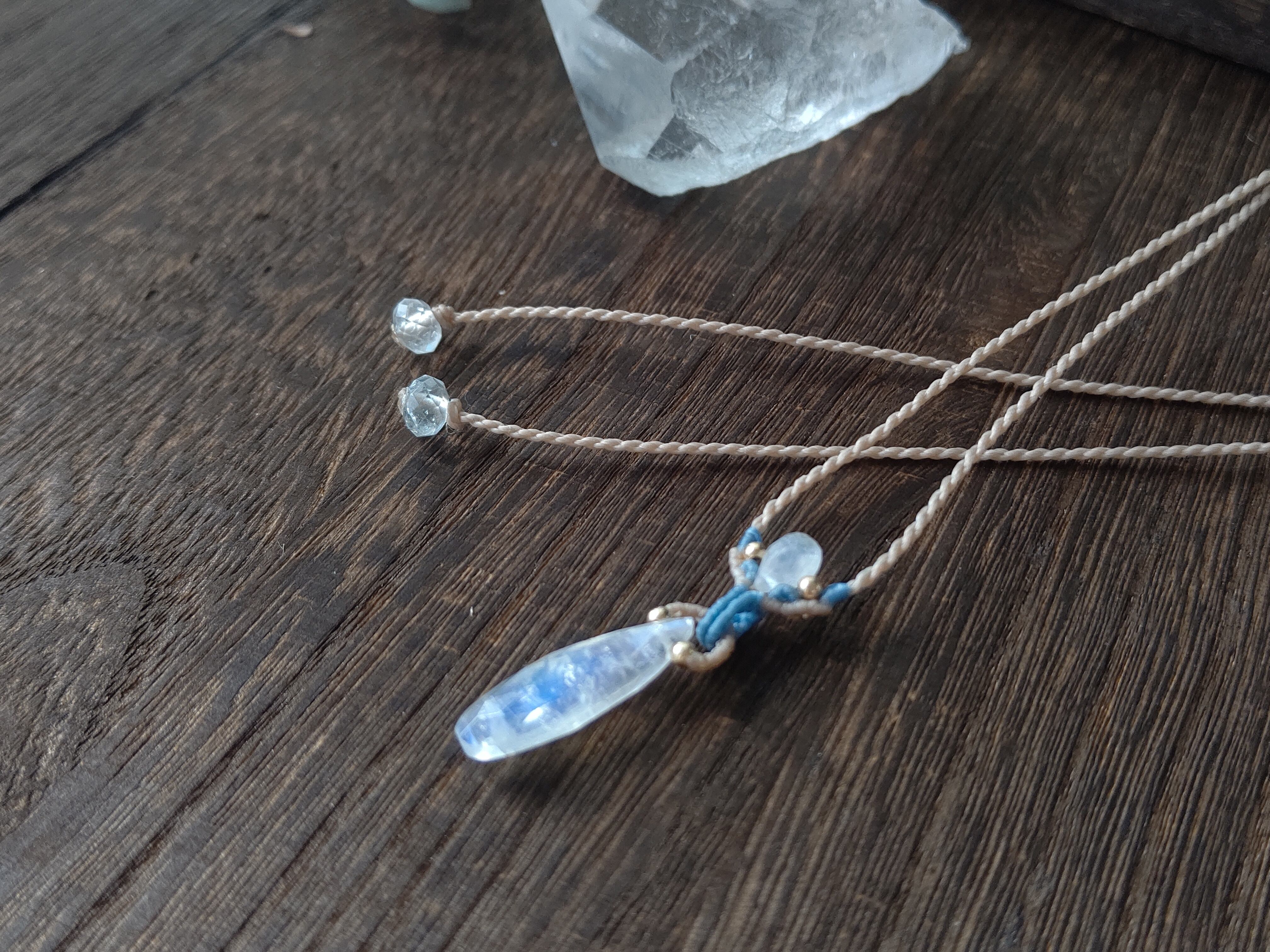揺れる雫:レインボームーンストーンのマクラメペンダント