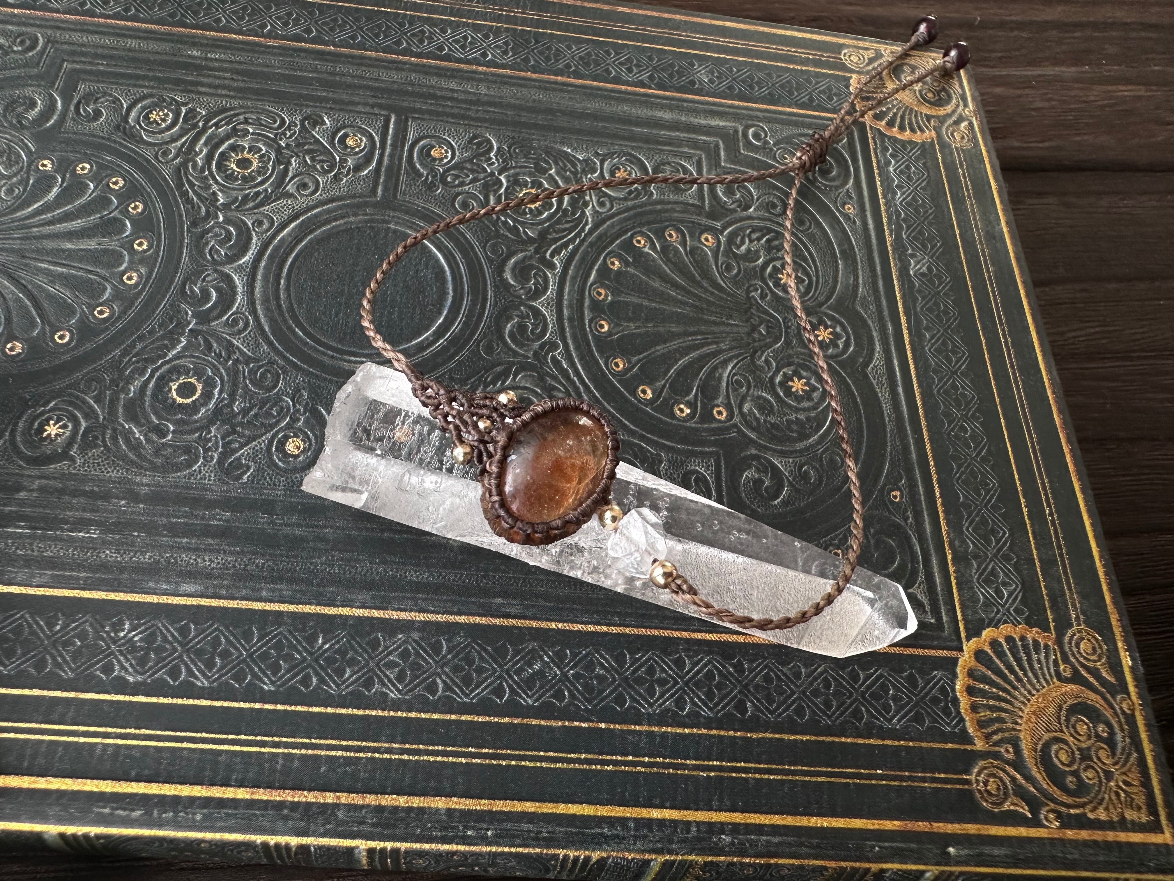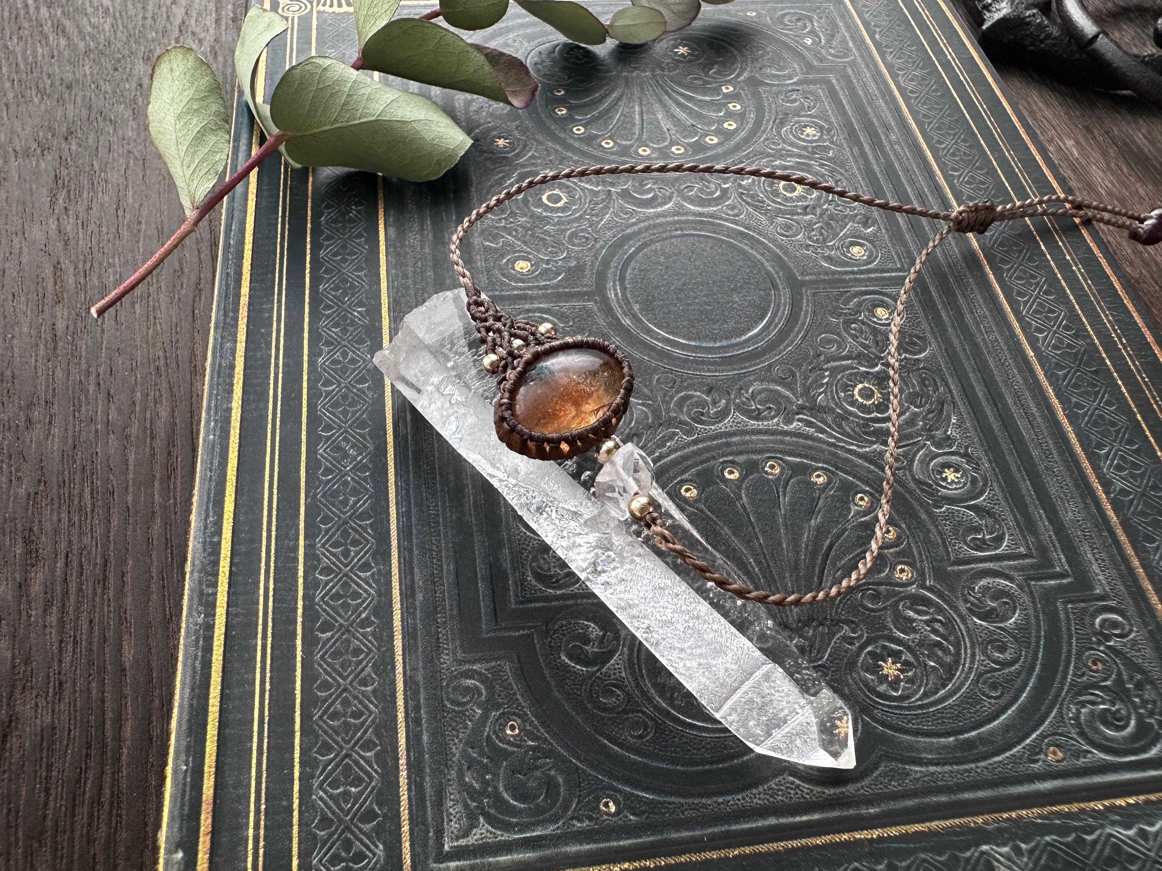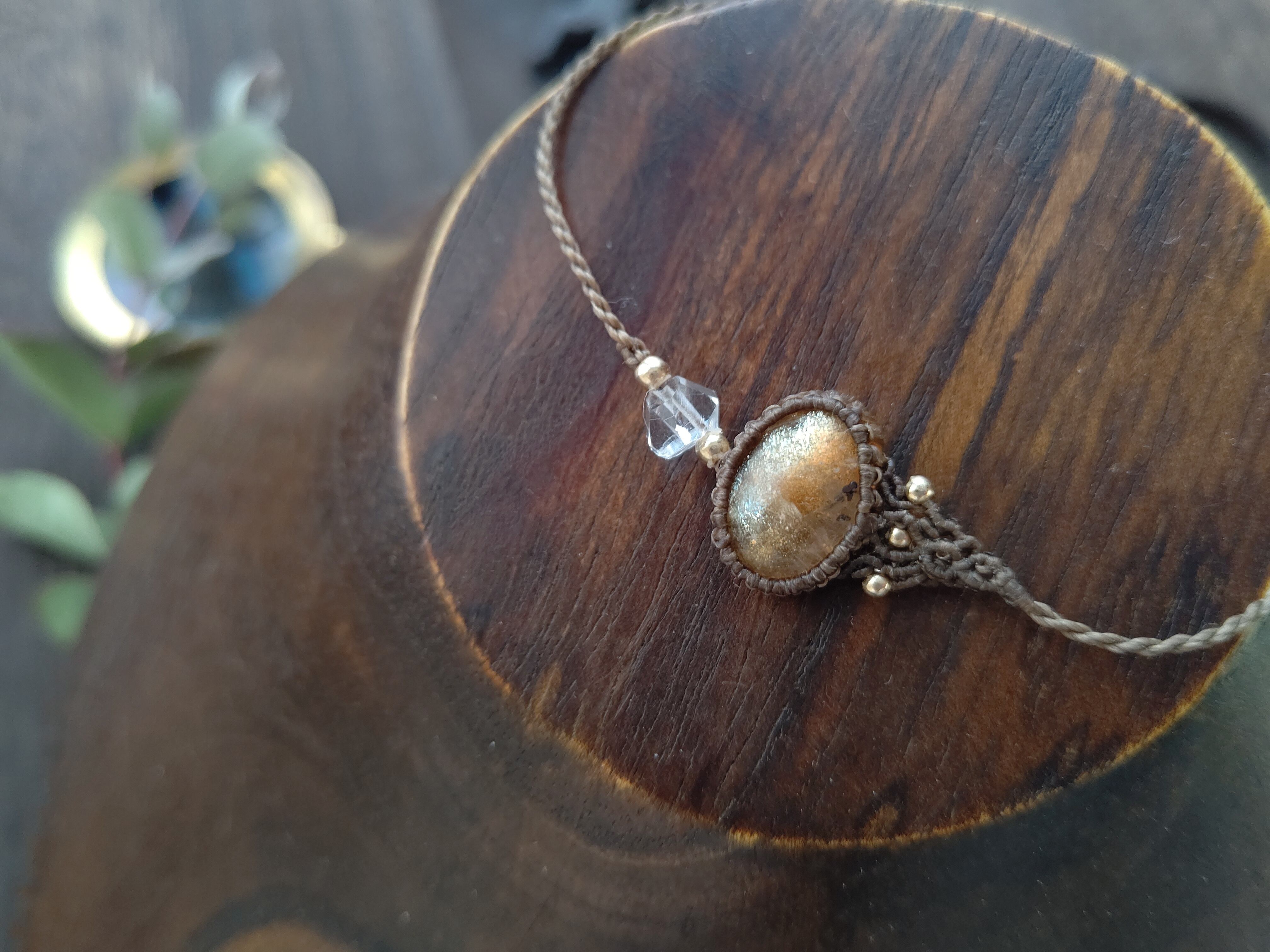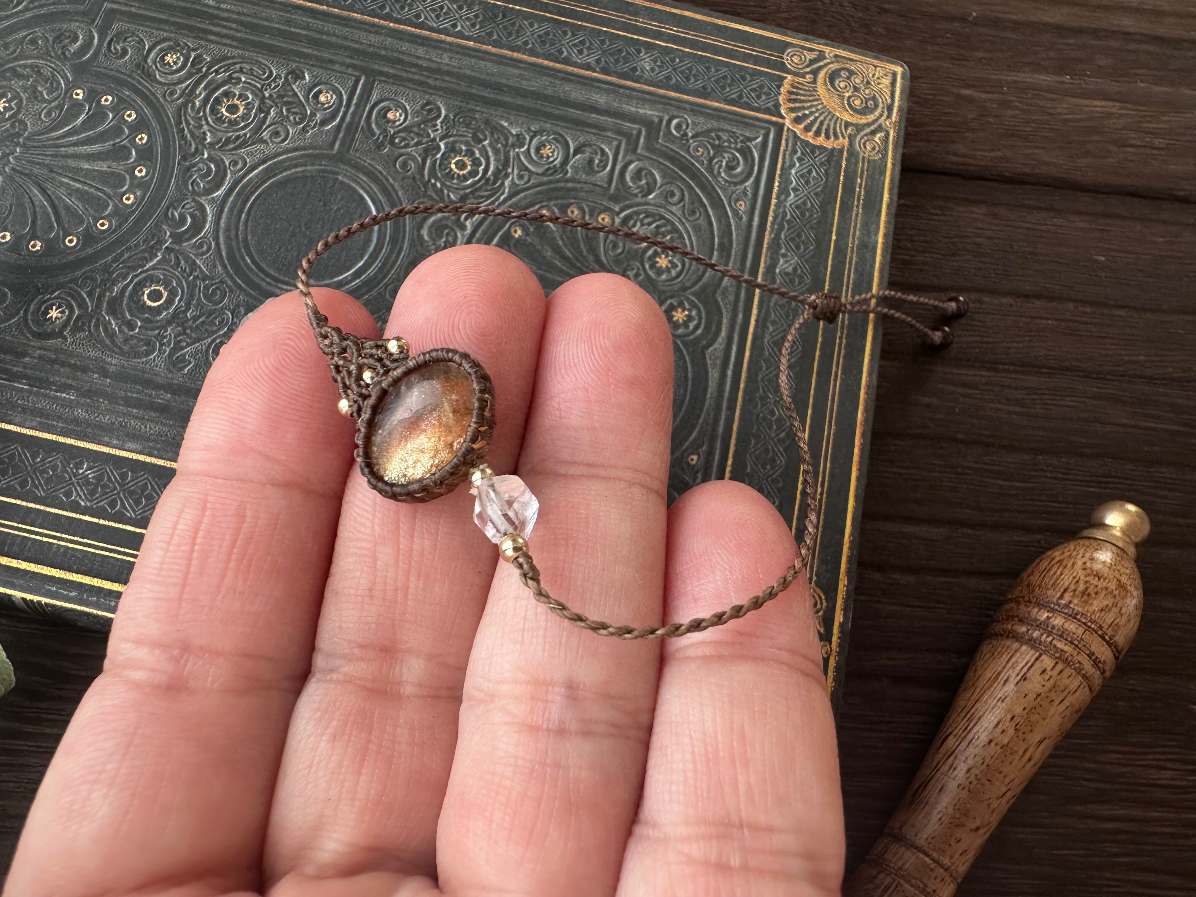 少し大きめサンストーン×ハーキマーダイヤモンドのアシンメトリーブレスレット