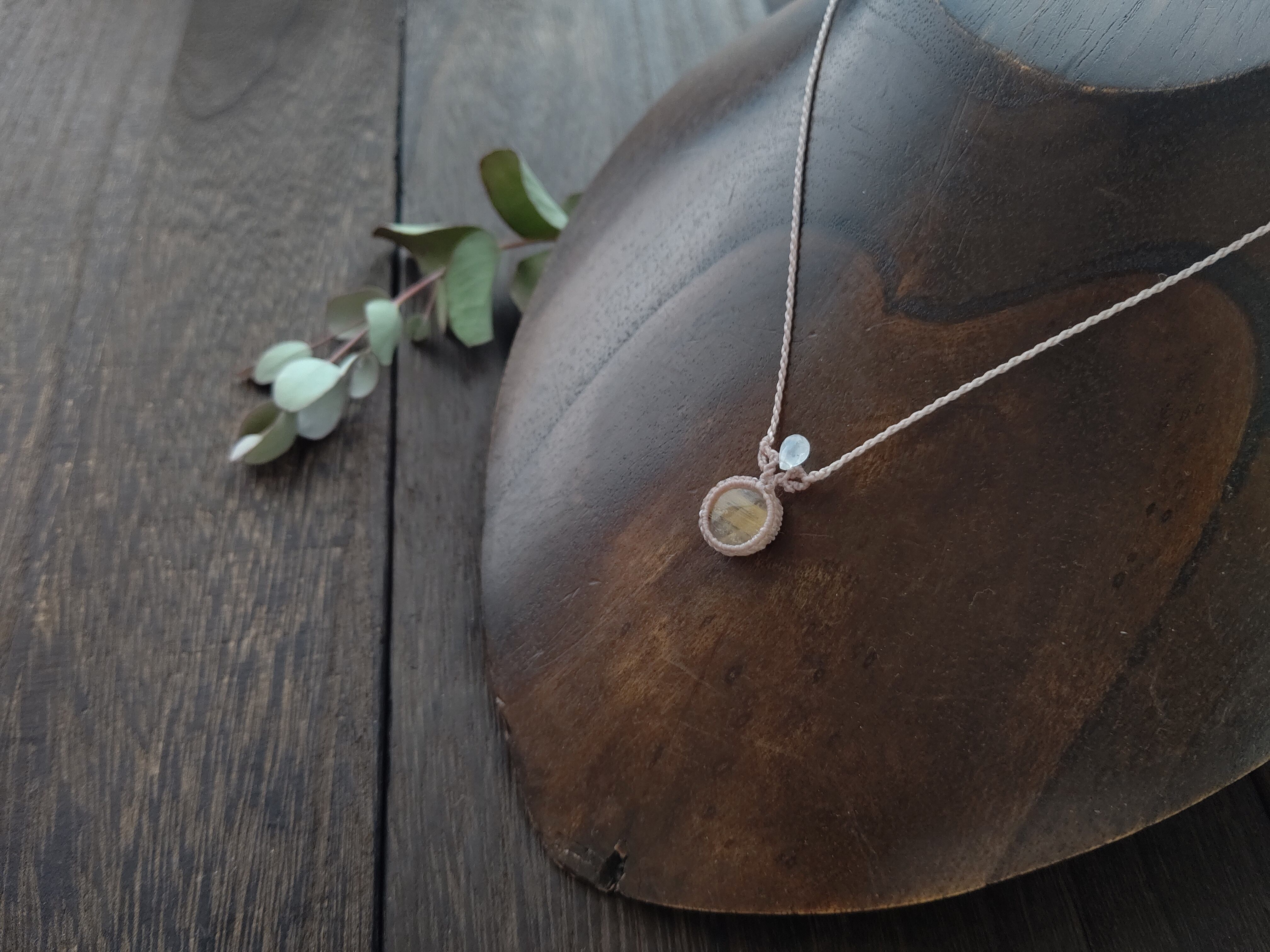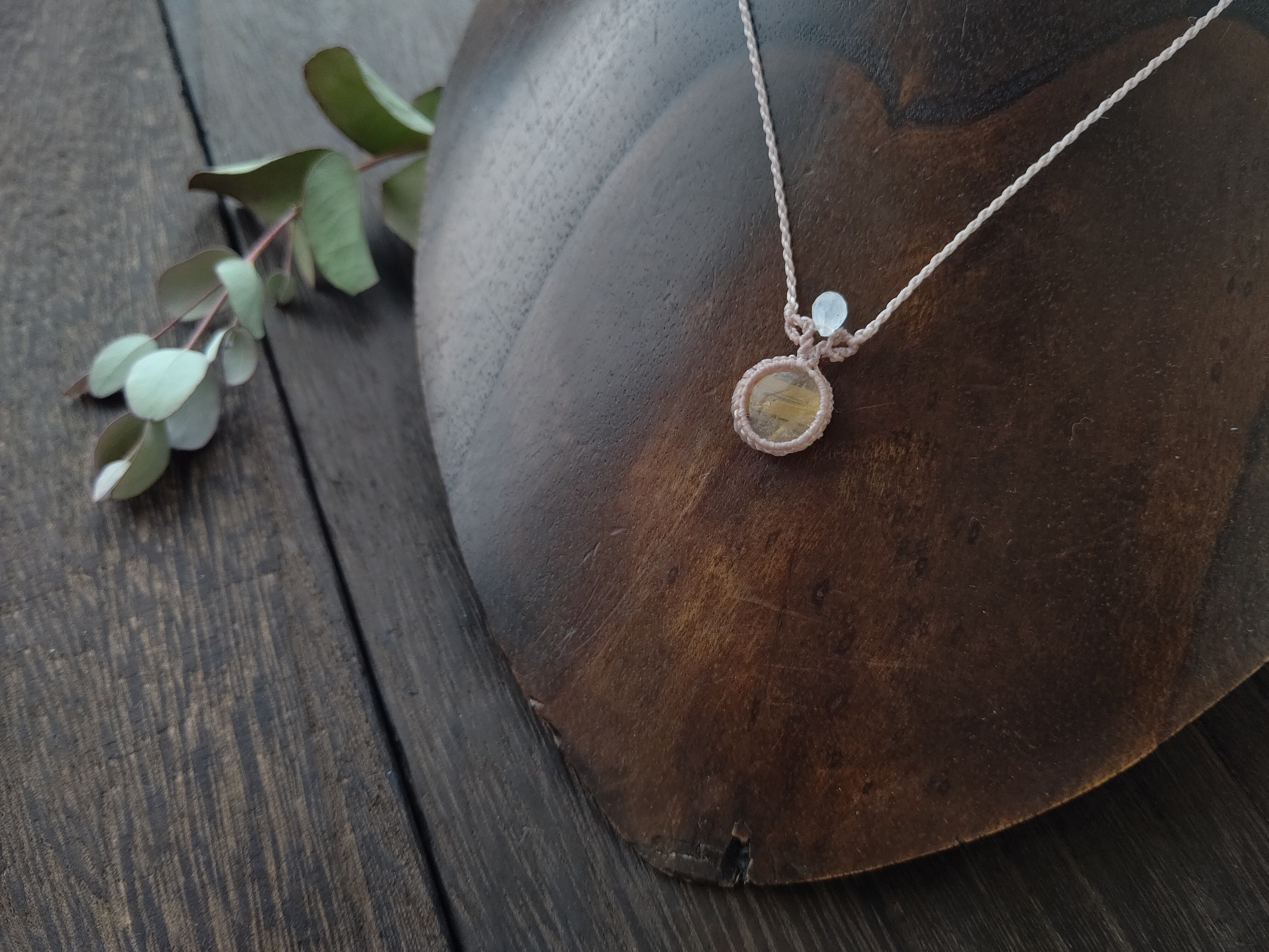 小さなルチルクォールでシンプルなマクラメペンダントを製作しました。
