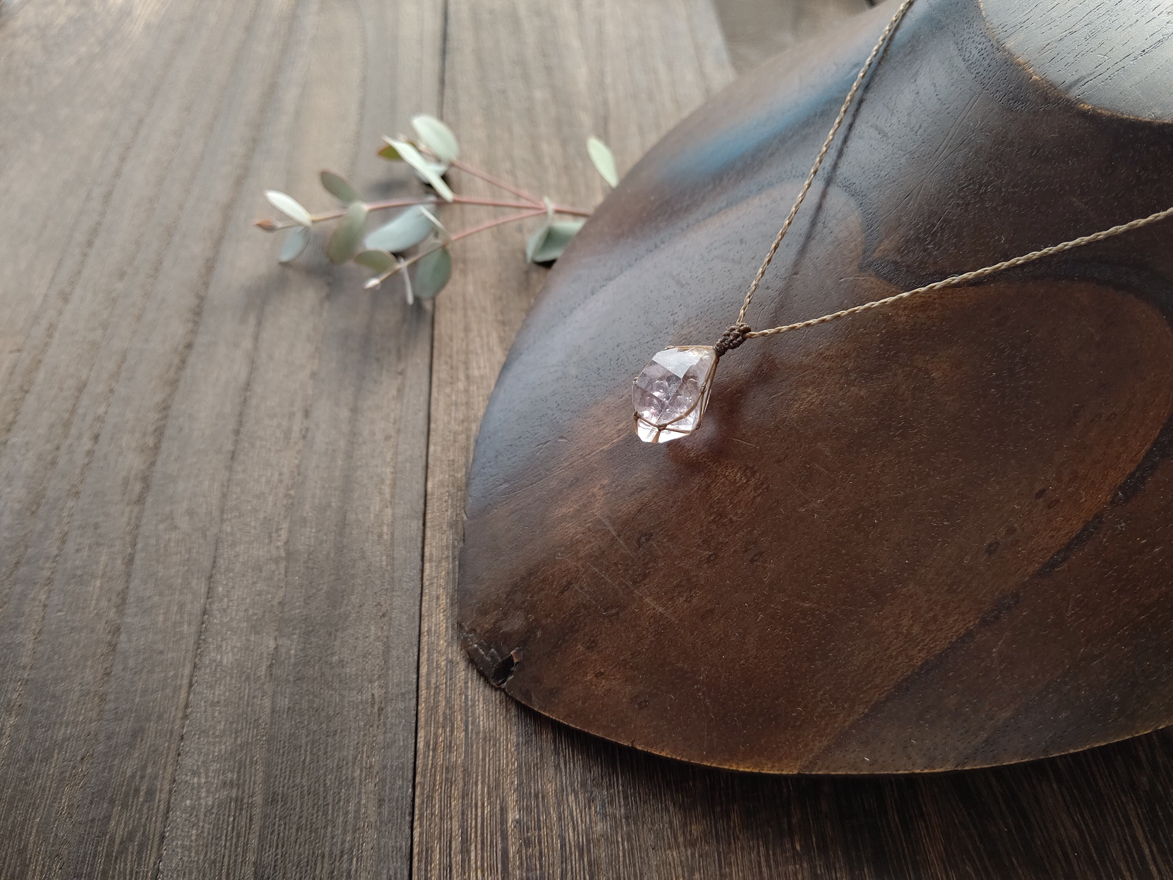 ナイジェリア産の淡いラベンダーカラーのアメジストの原石をシンプルなペンダントに仕立てました。