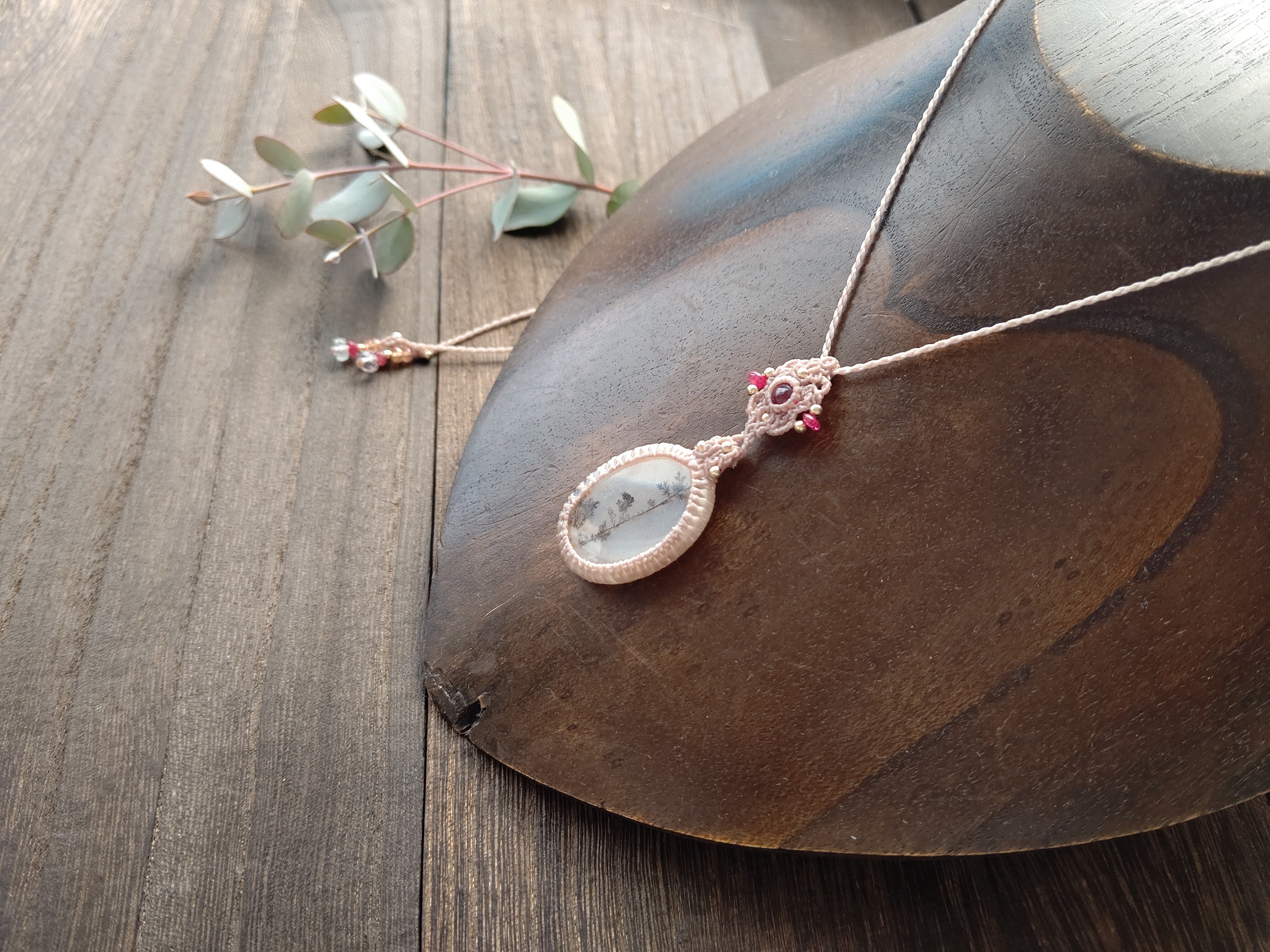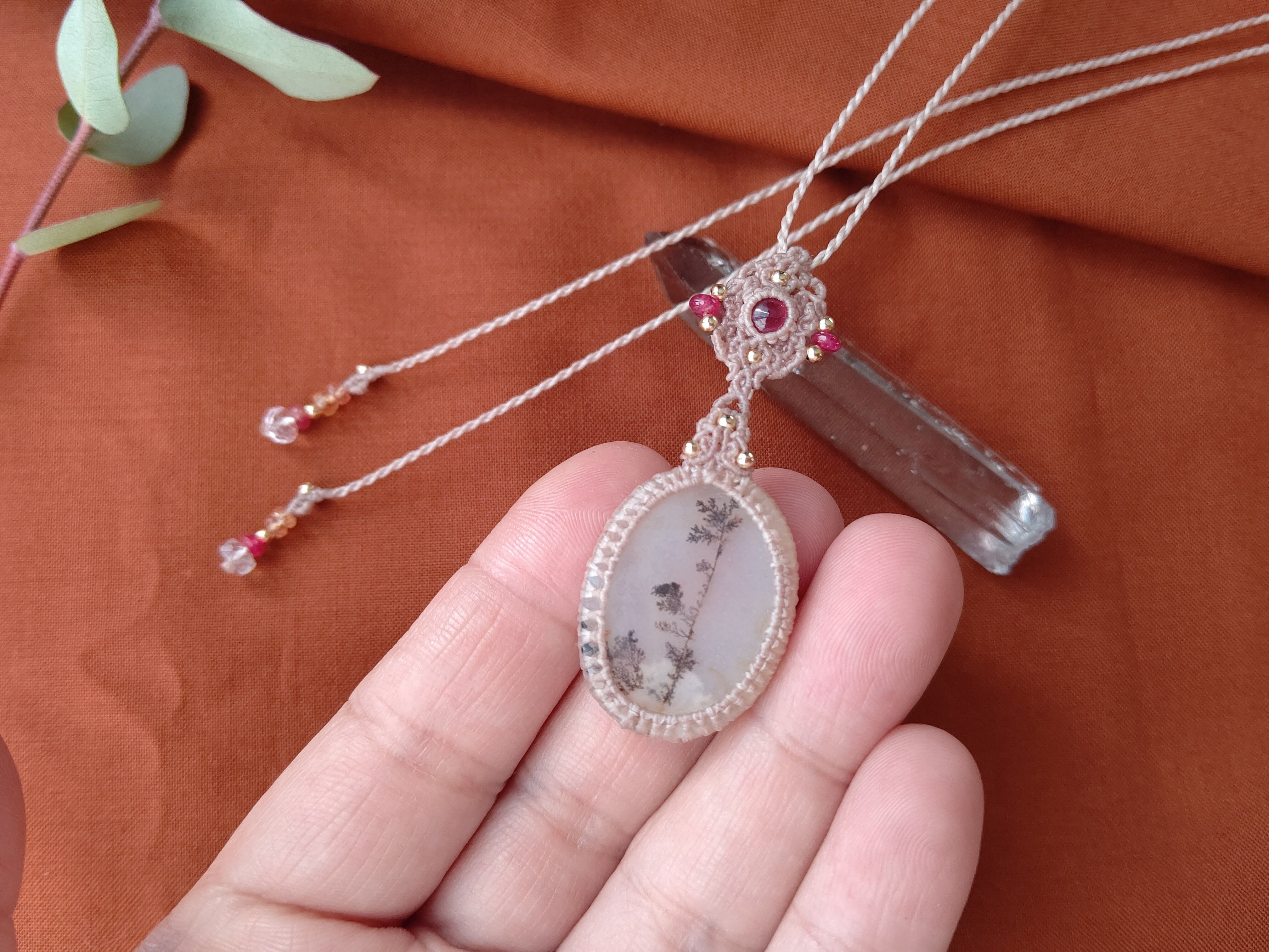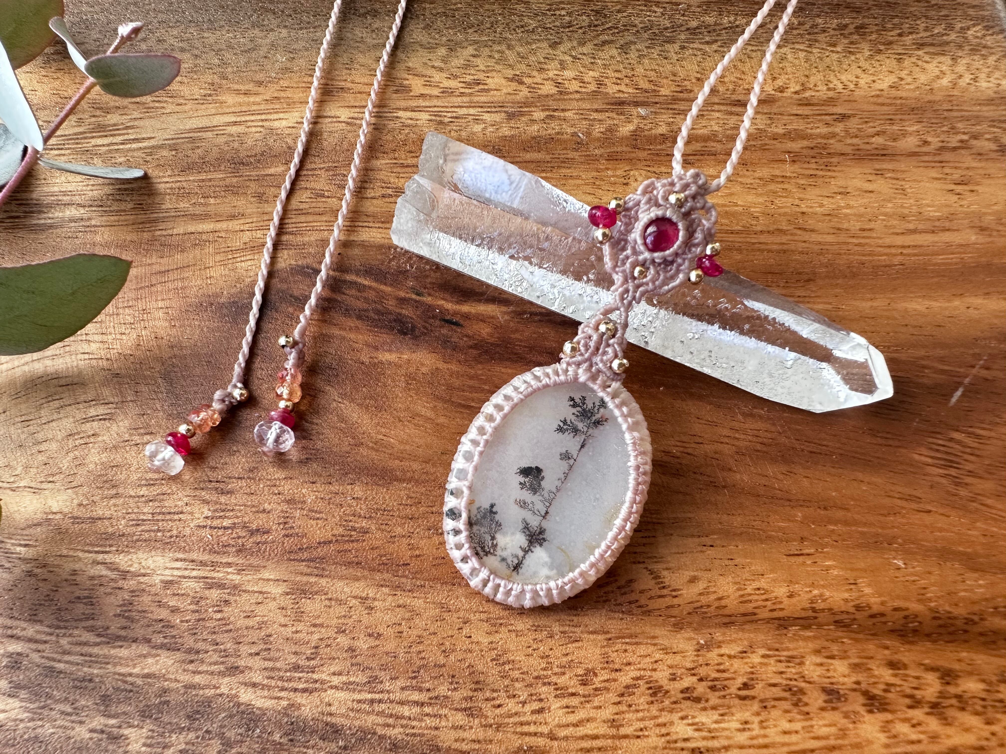 大粒デンドライトクォーツ×ルビーのマクラメペンダント