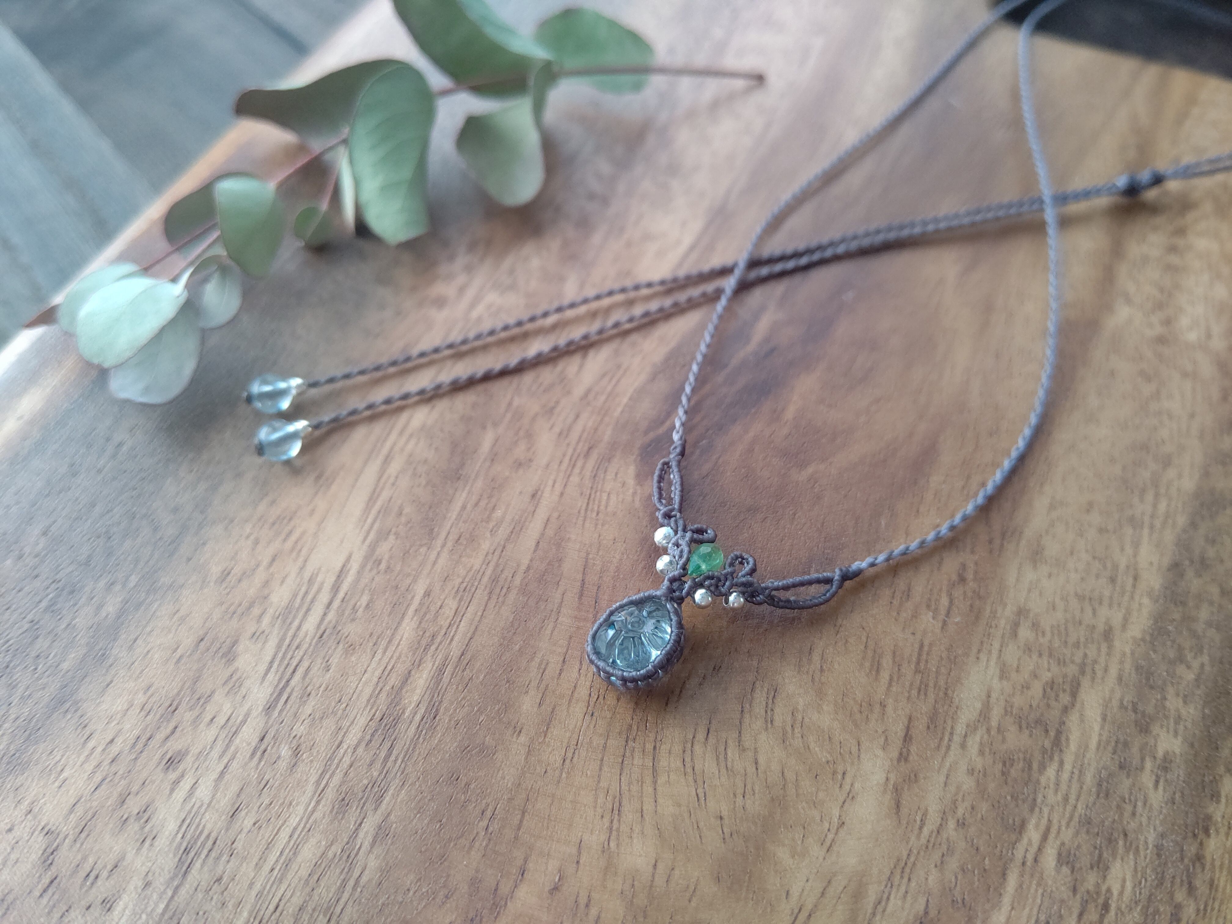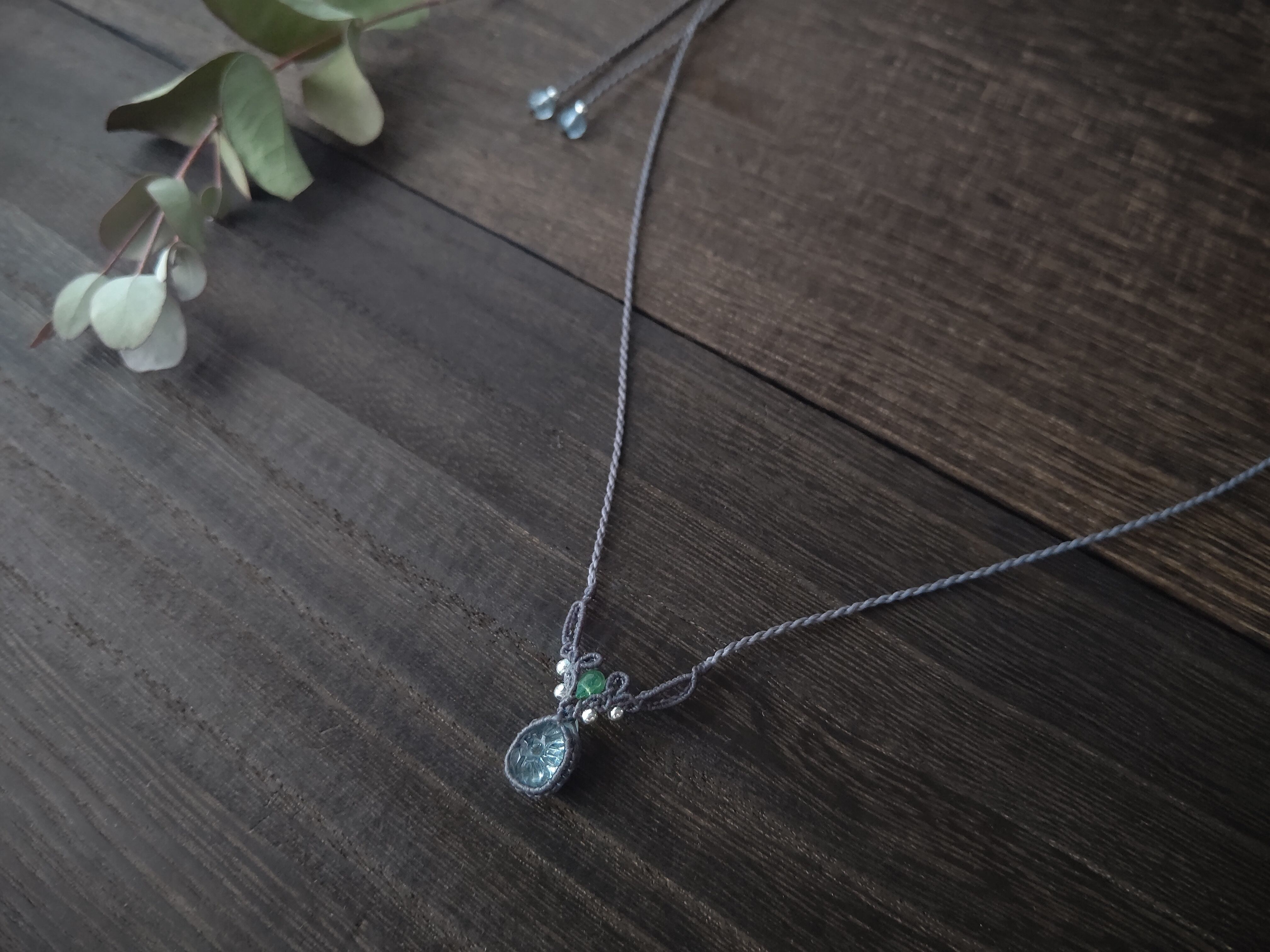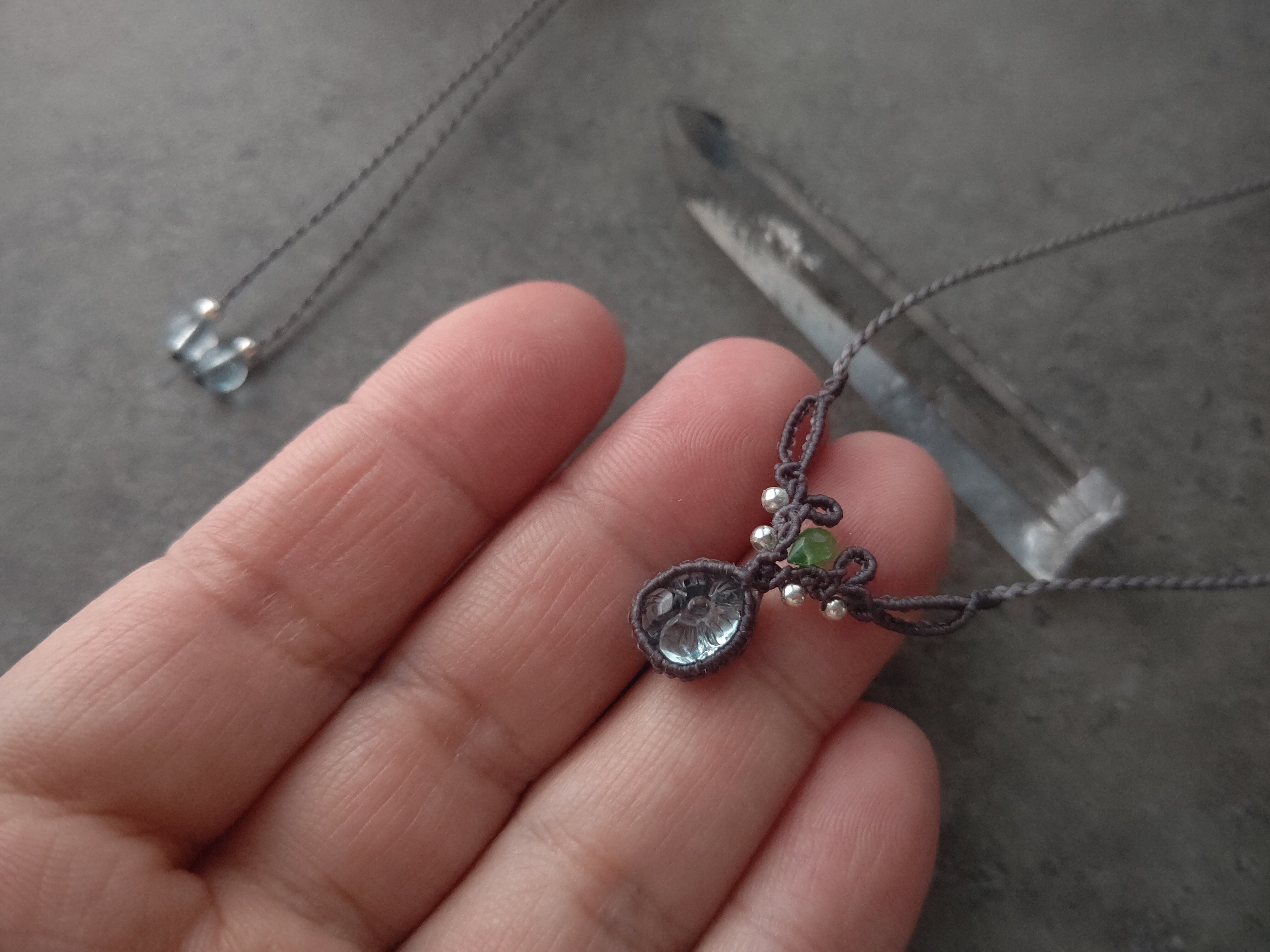 0.25mmの糸で細やかにマクラメらしい編み込みを施し、シックで上品なデザインで仕立てました。
