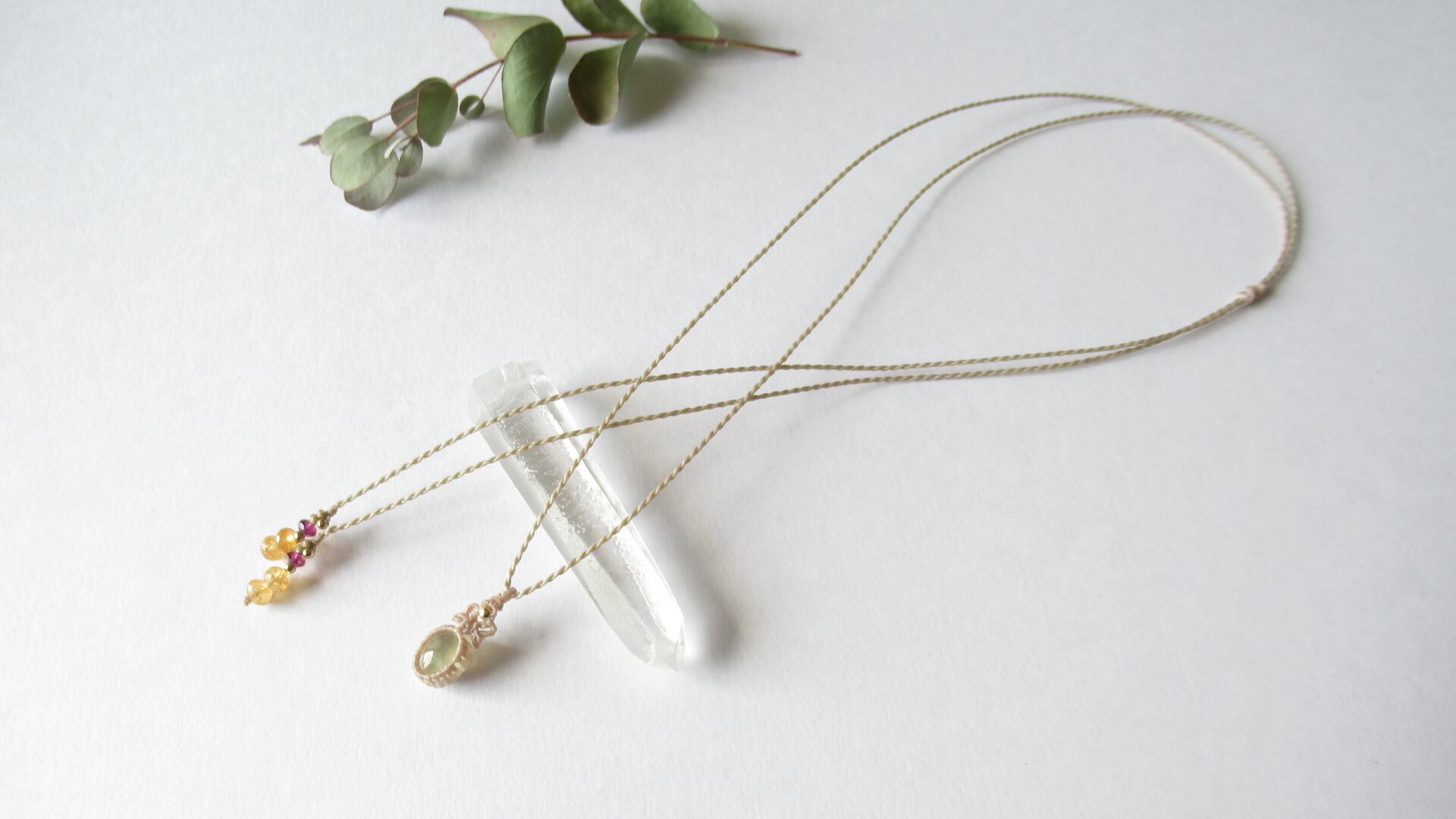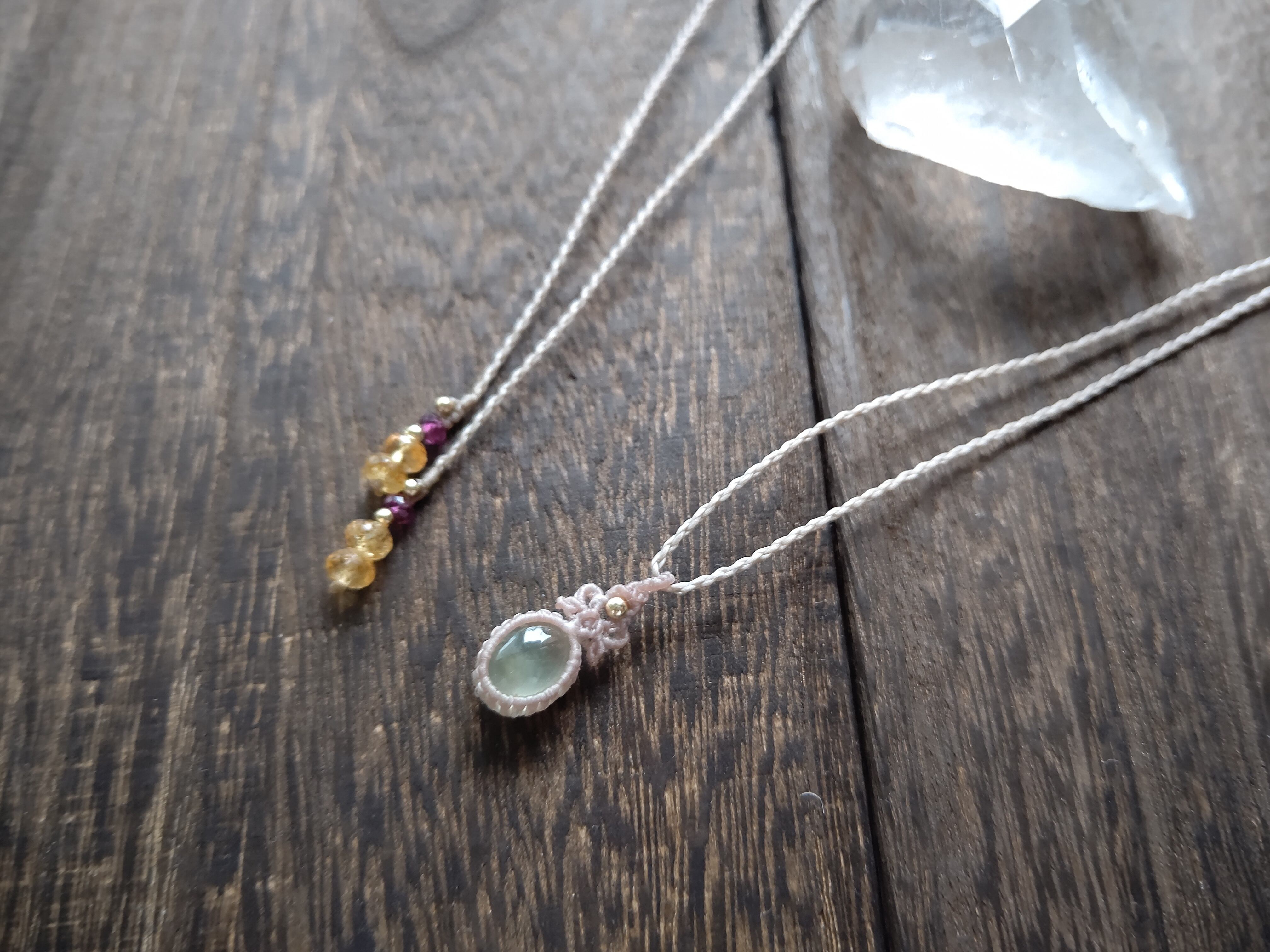 0.25mmの糸で細やかにマクラメらしい編み込みを施し、シンプルでカジュアルなデザインに仕立てました。