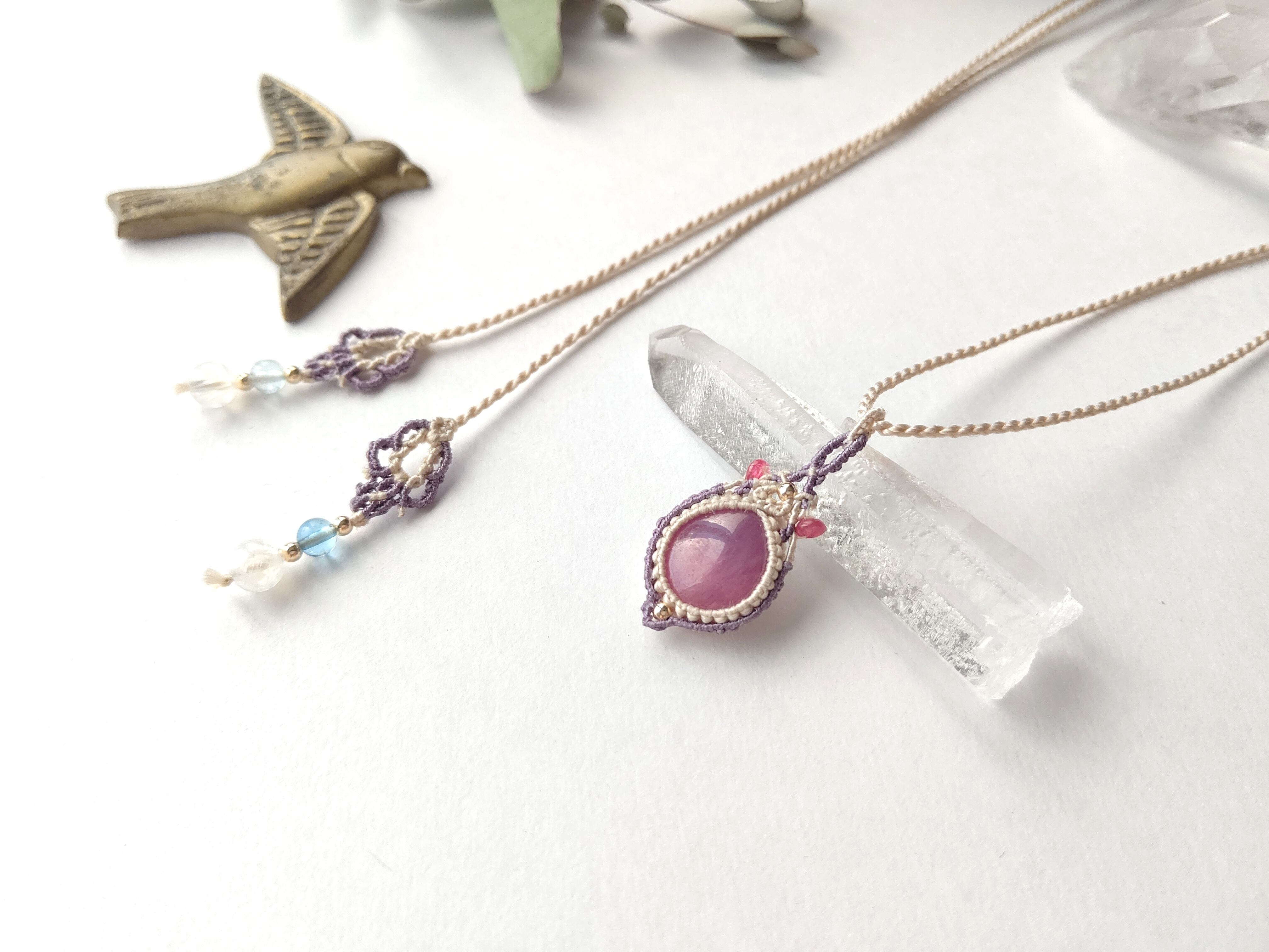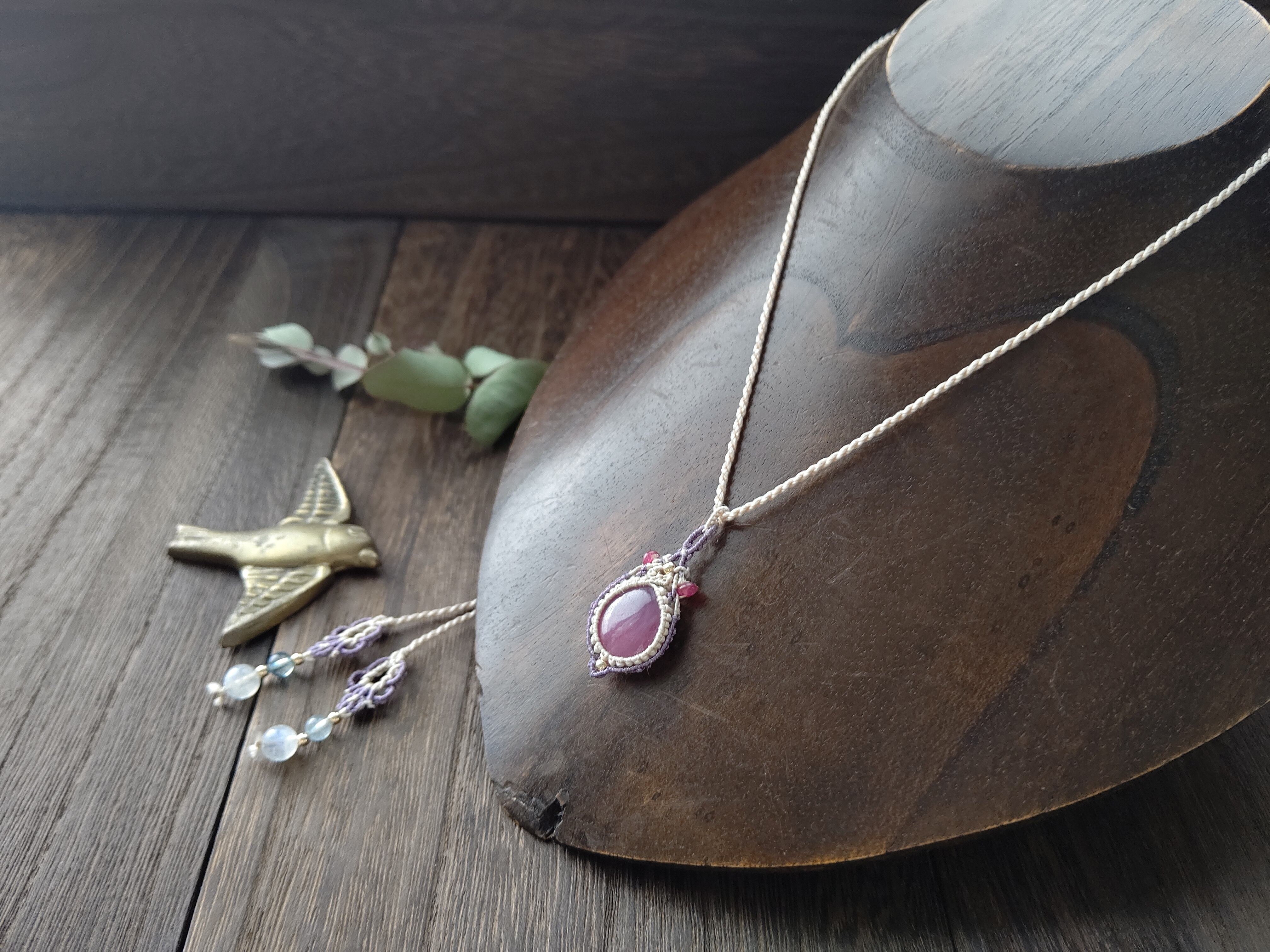≪silk≫ 非加熱ピンクサファイアレッドスピネルのシルクペンダント ≪macrame pendant≫