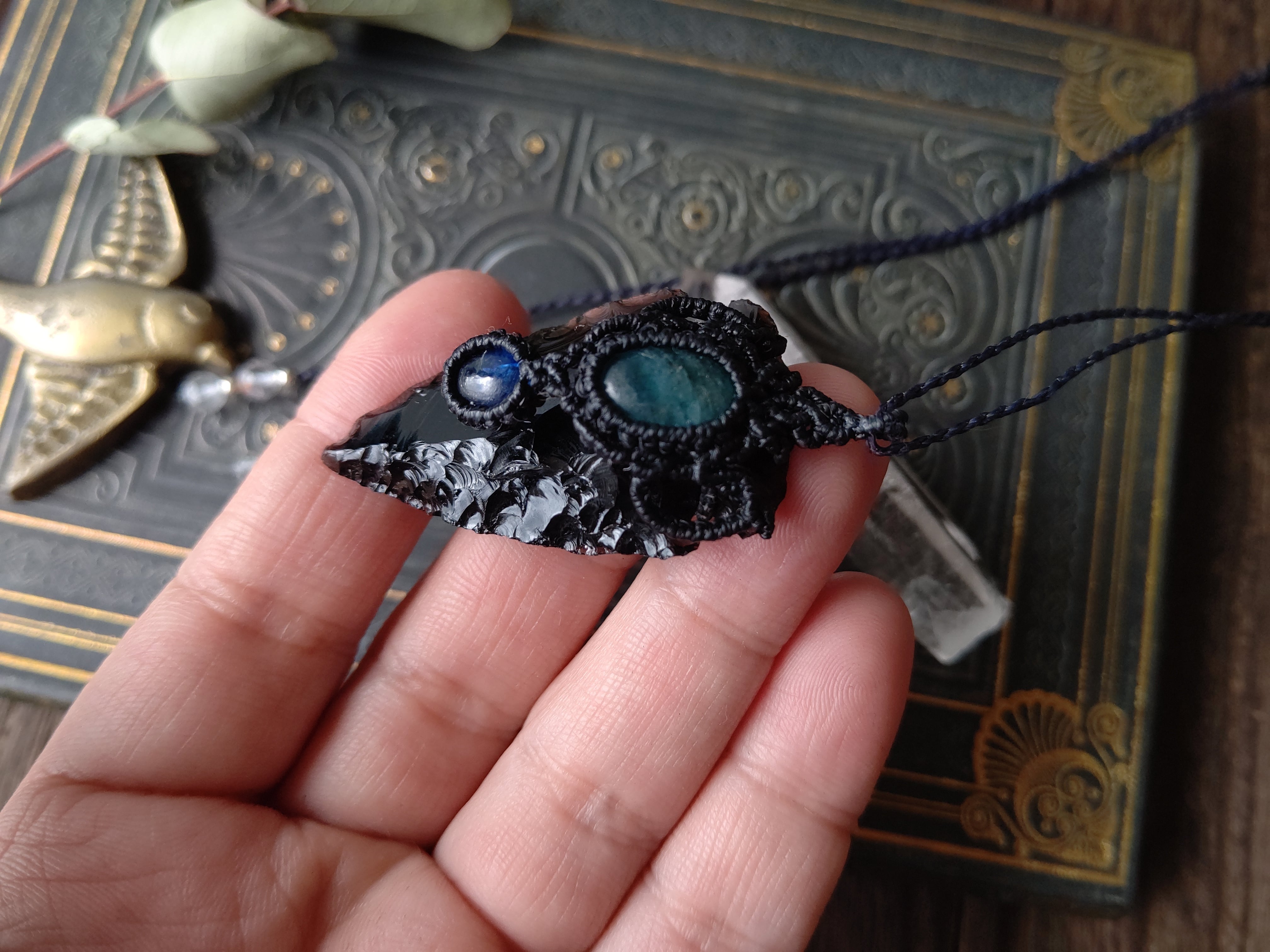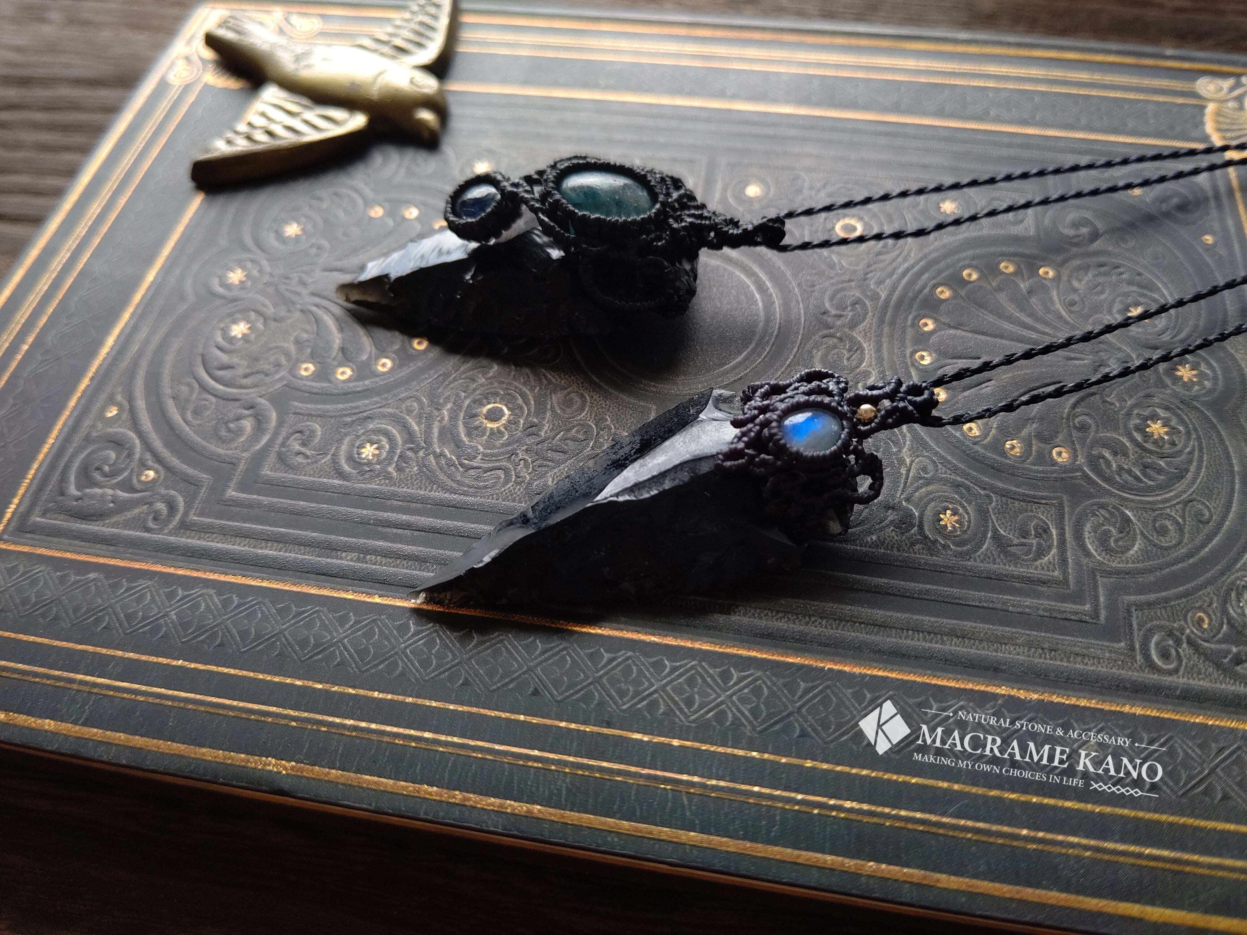 メキシコ産黒曜石(オブシディアン)とネパール産カイヤナイト×ブルーアパタイトの原石ペンダント