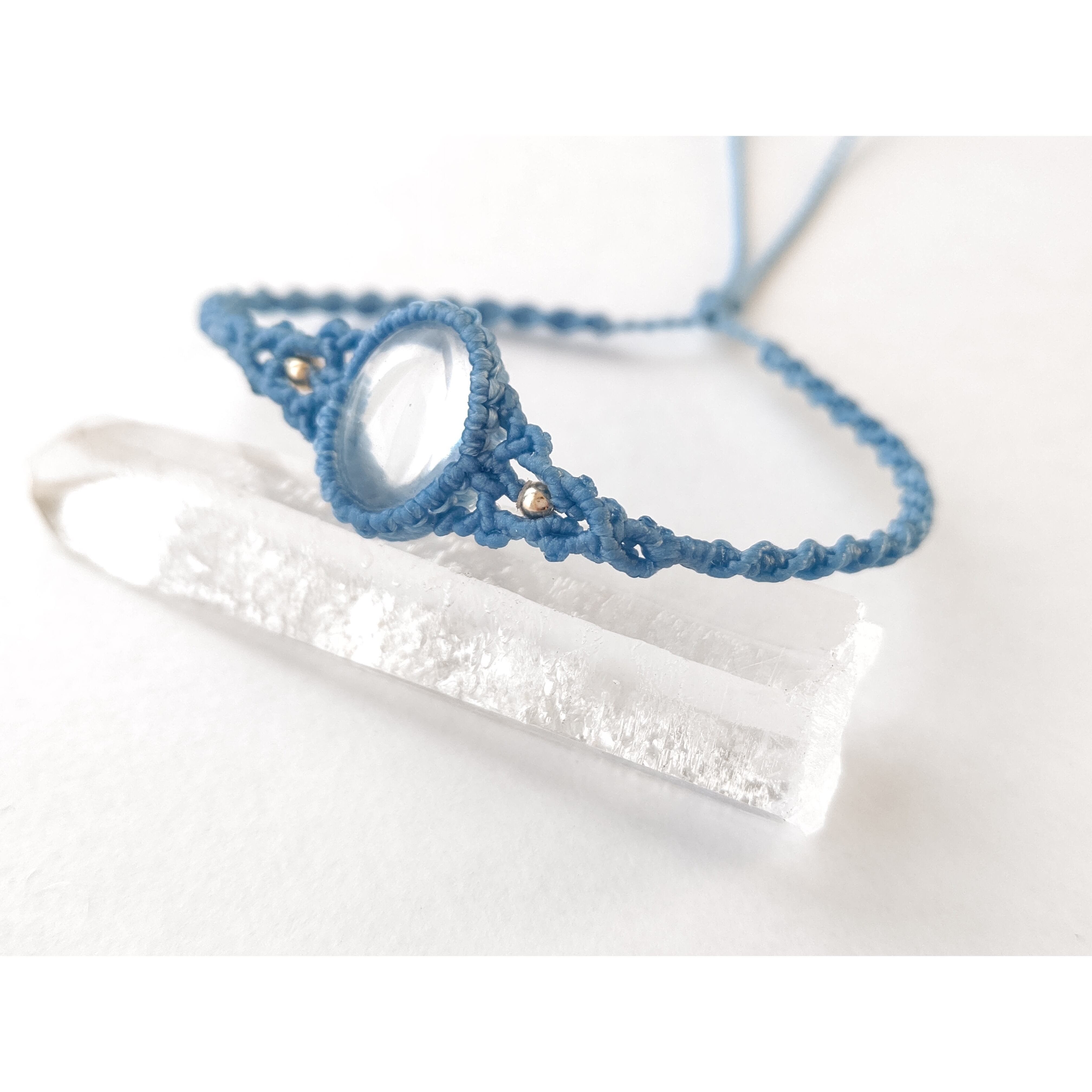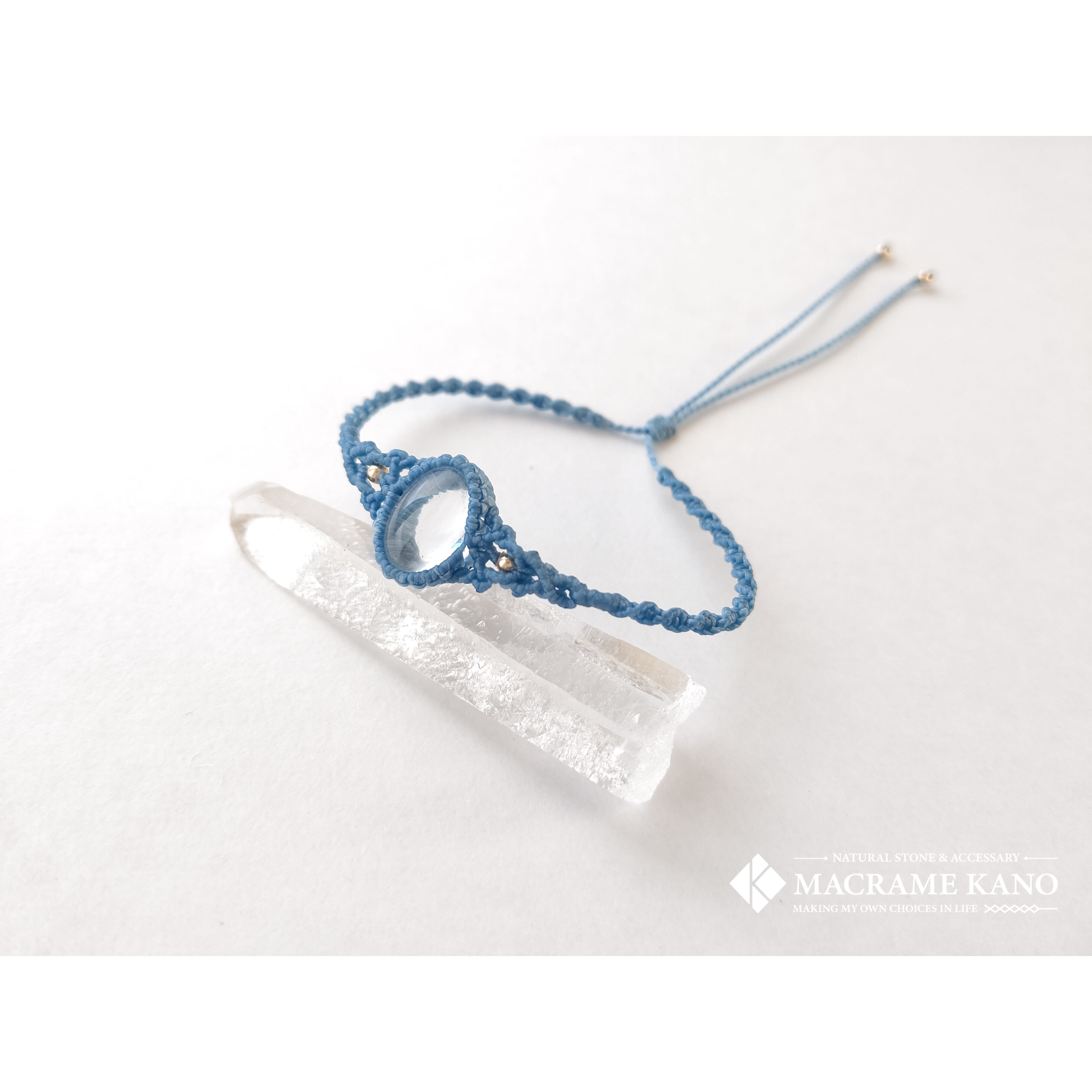 ヒマラヤはマニカラン産の水滴のような水晶をマクラメらしいデザインのブレスレットに仕上げました。