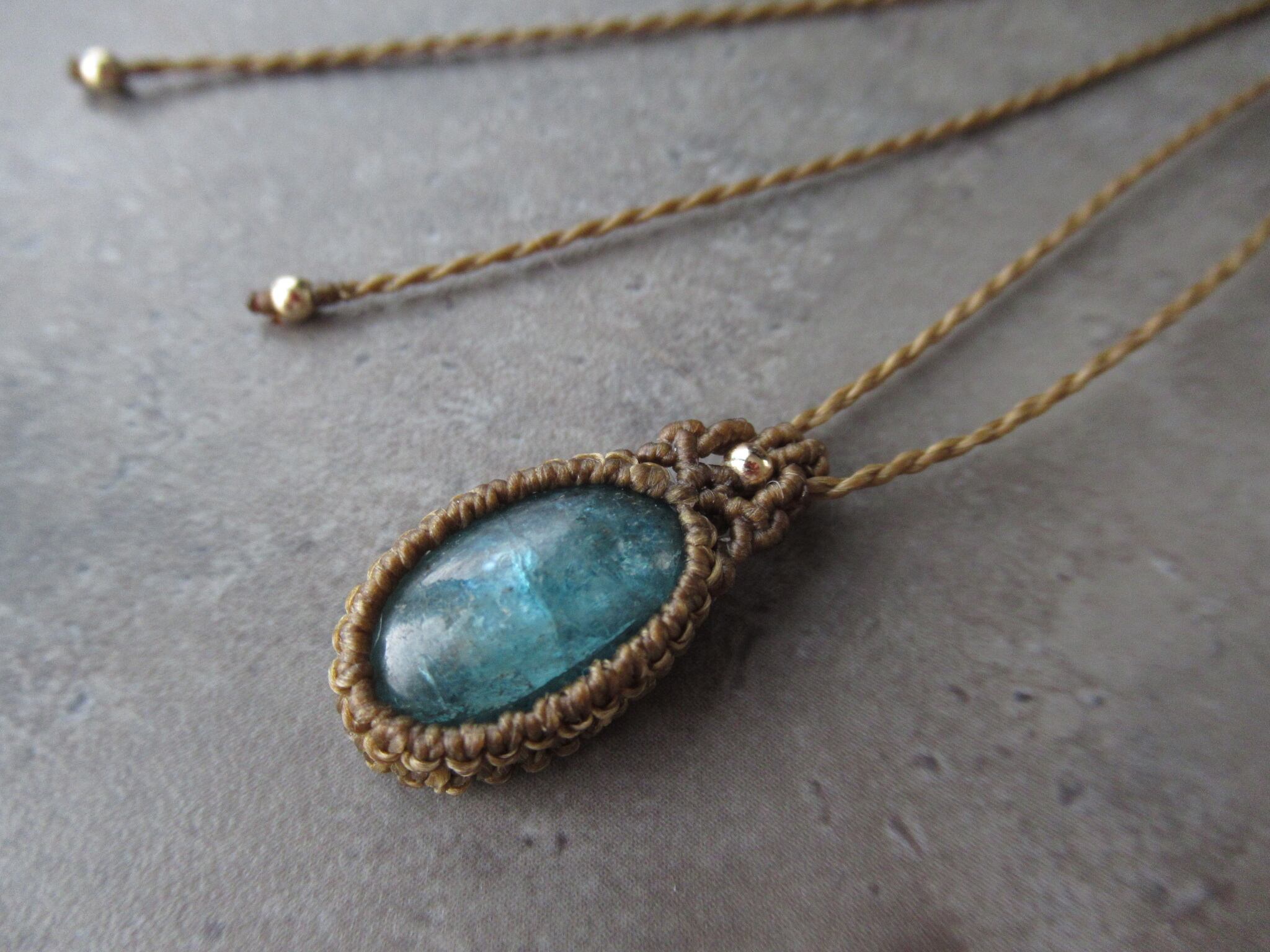 糸色はブラウンでカジュアルですっきりとしたペンダントです。糸は0.5mm仕上げです。