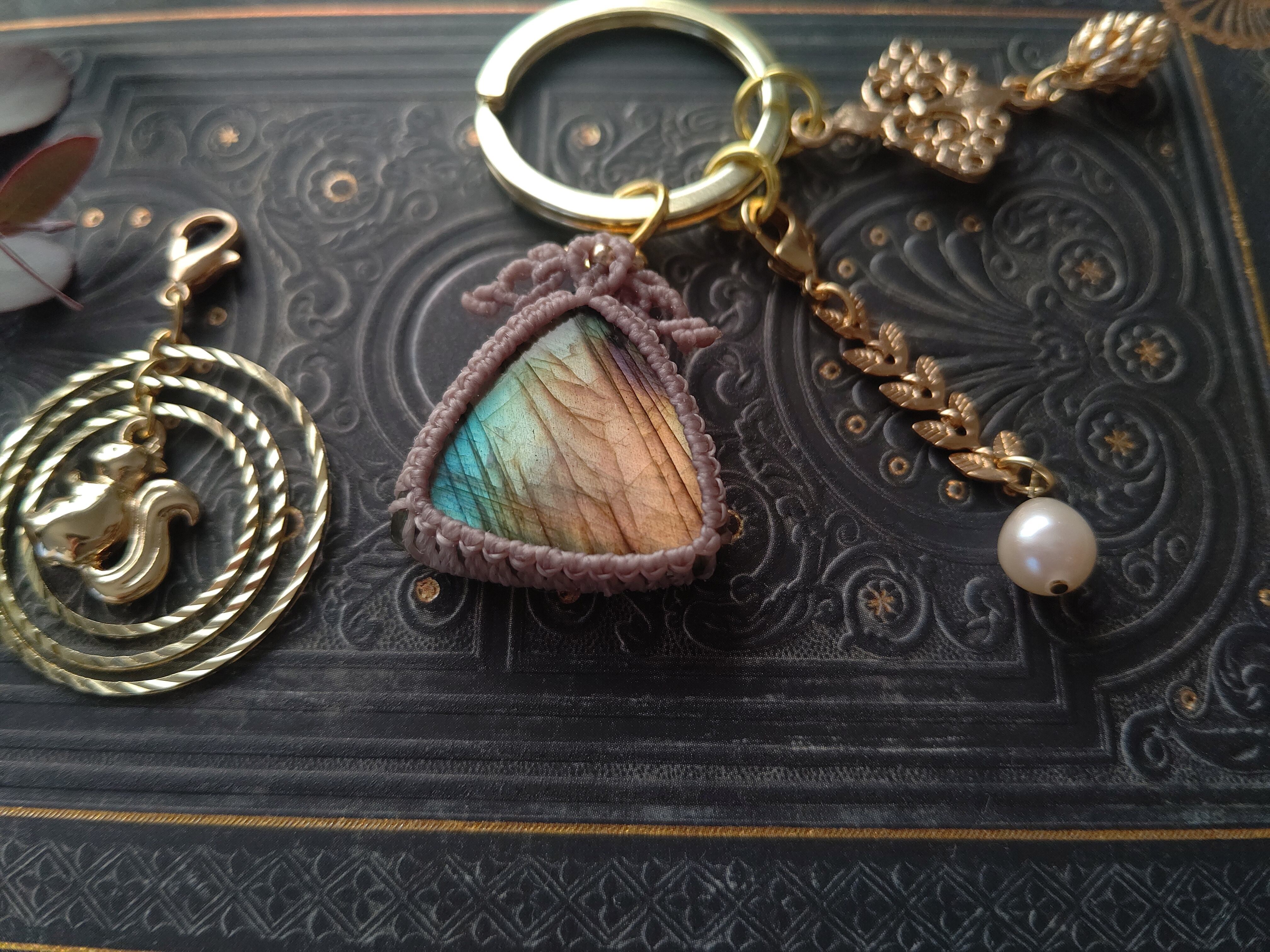 大粒さんかくマルチカラーラブラドライトと春の玉乗りリスさんのお散歩のキーチャーム