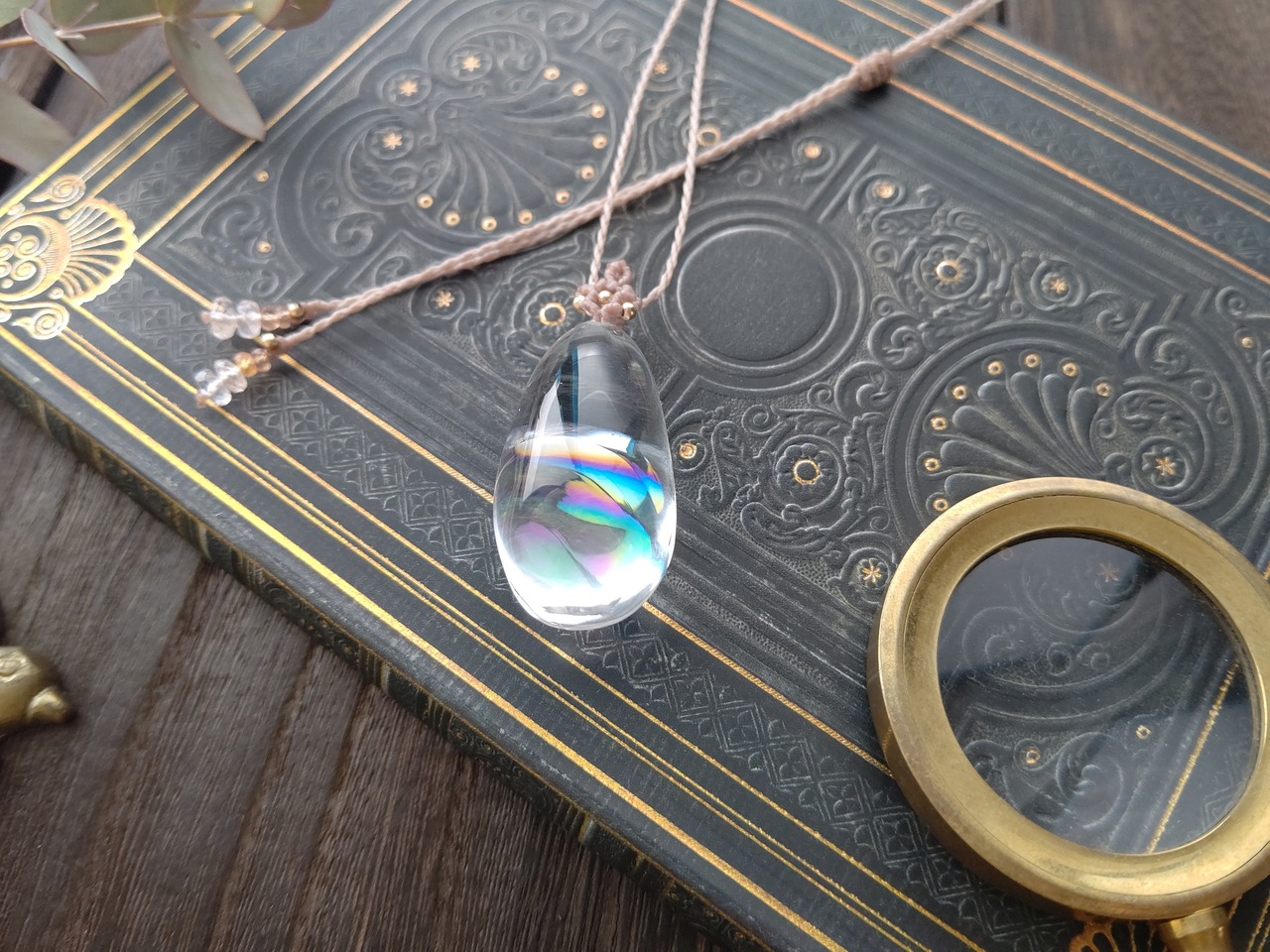 虹の輝きがとても美しいアイリスクォーツでシンプルなペンダントを製作しました。