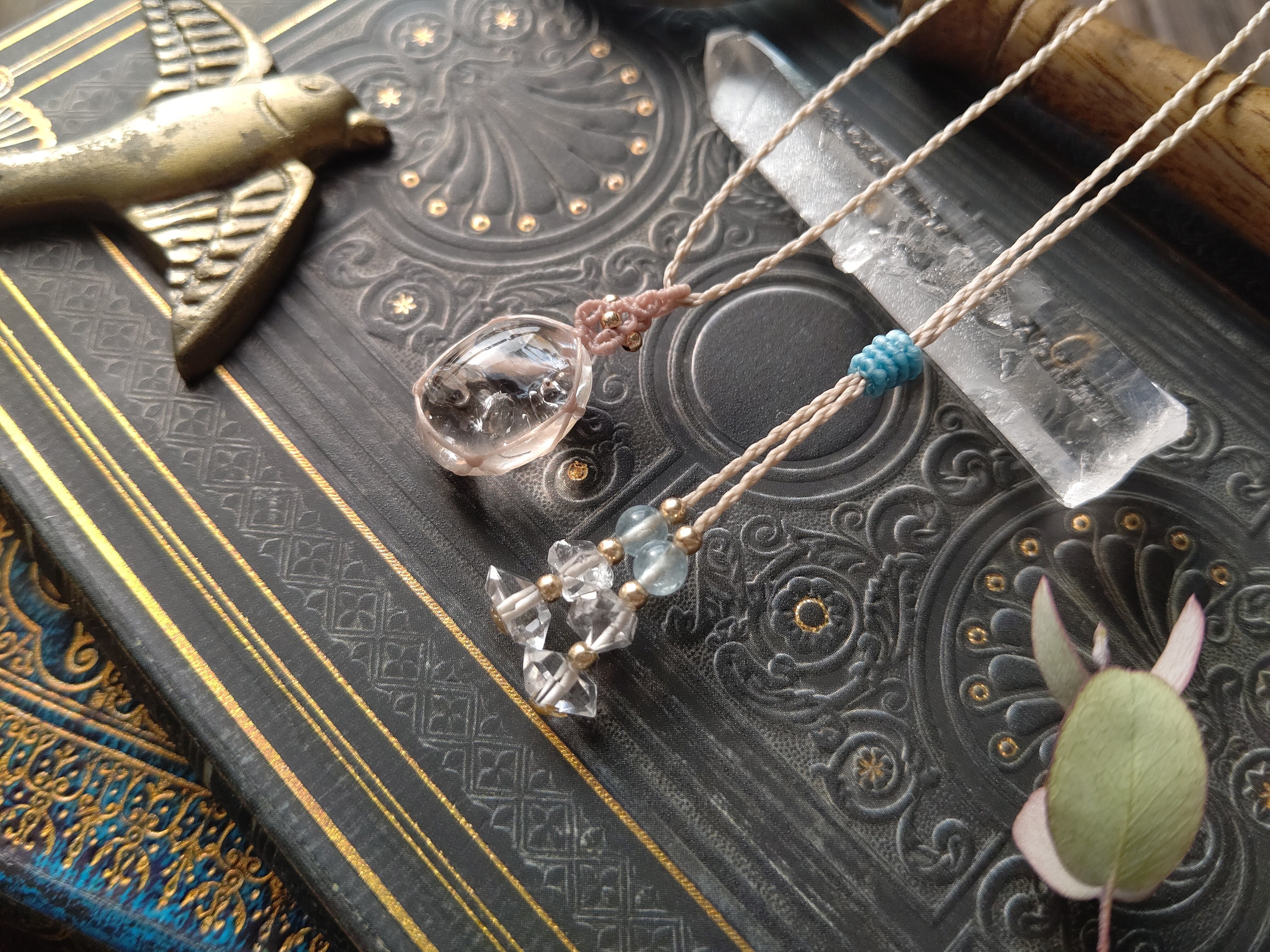 太古の記憶/ 水入り水晶のマクラメペンダント /0.25mm仕上げ