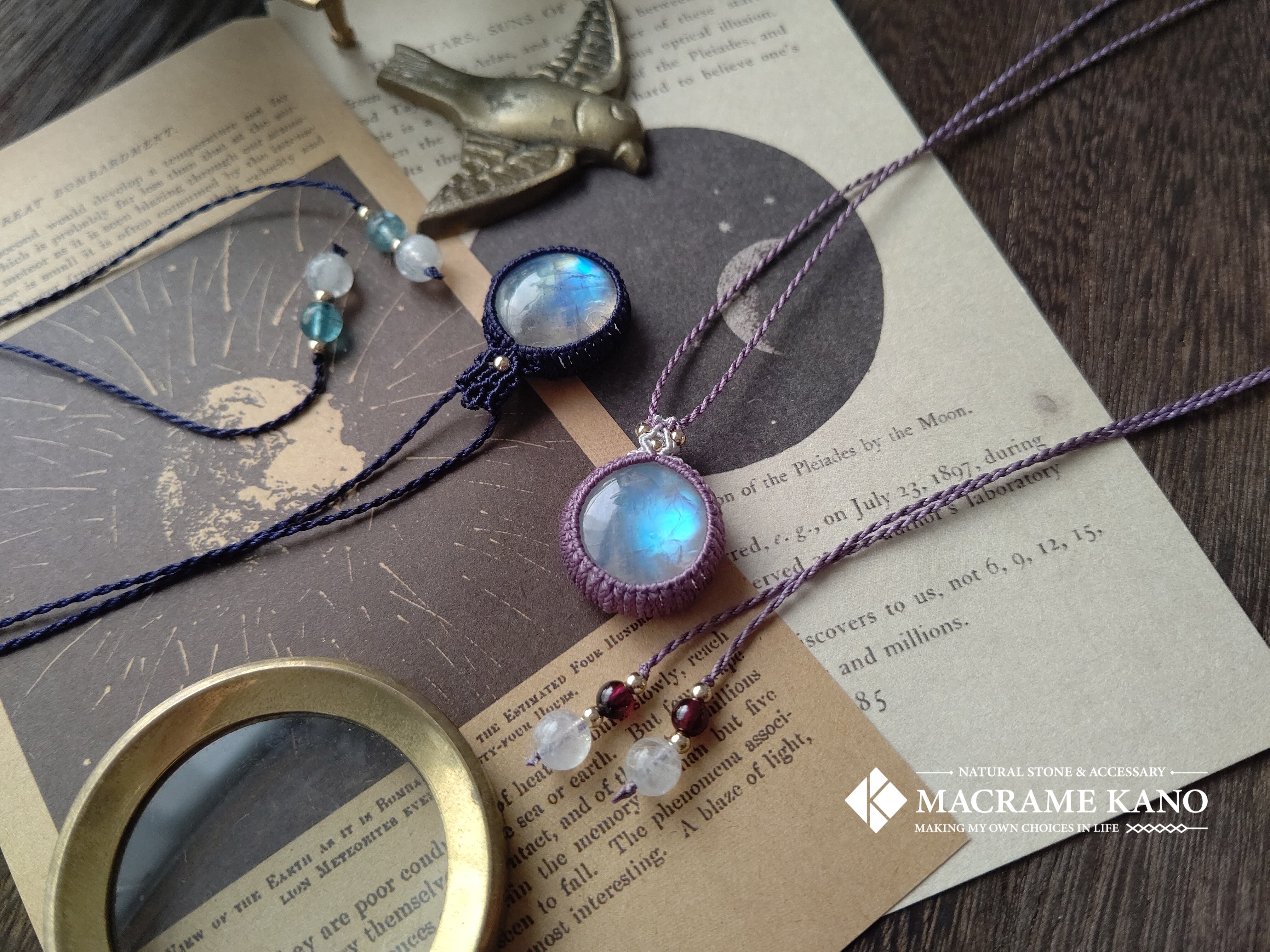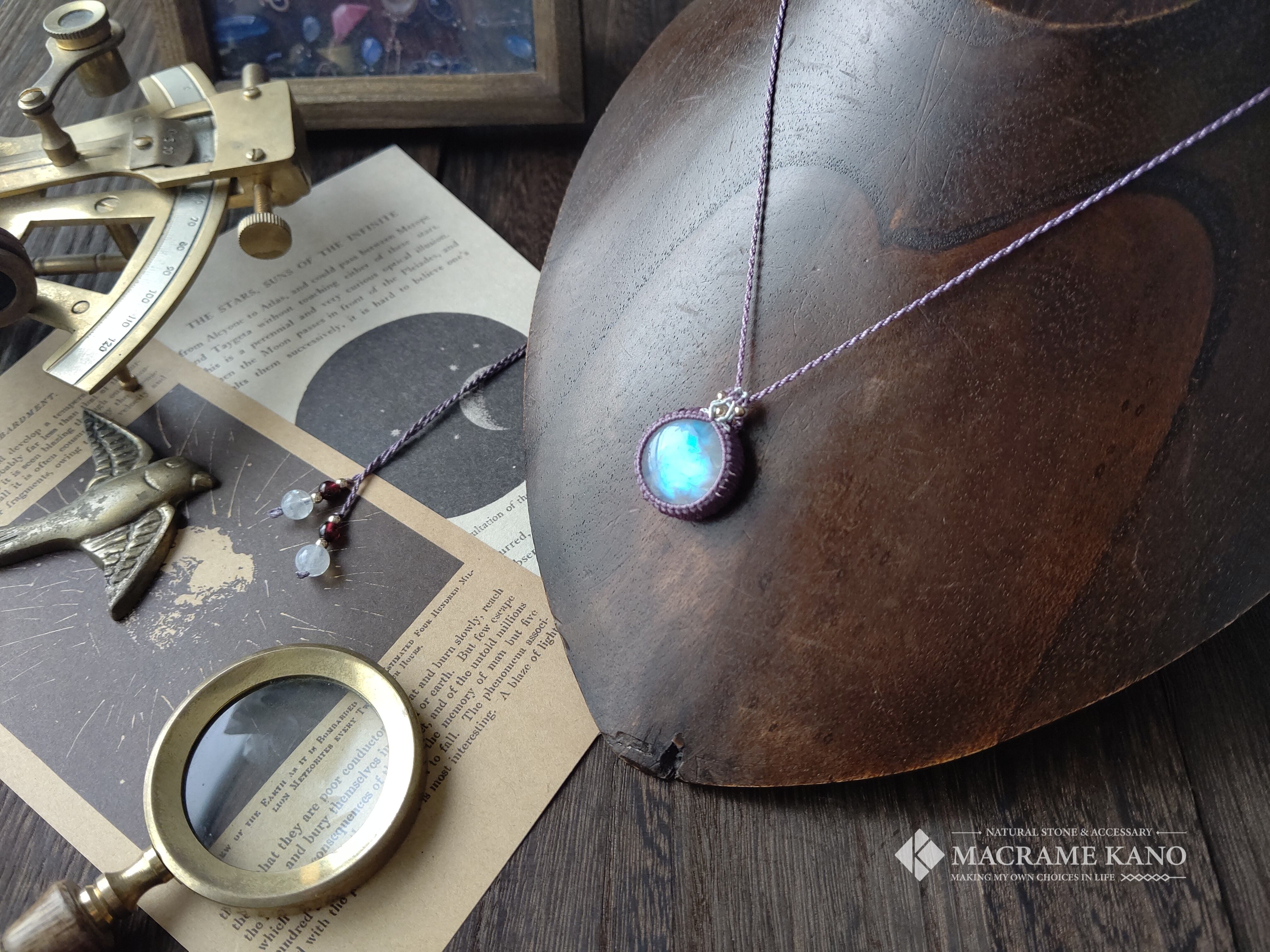 ≪silk≫ fullmoon レインボームーンストーン シルクペンダント ≪macrame pendant≫