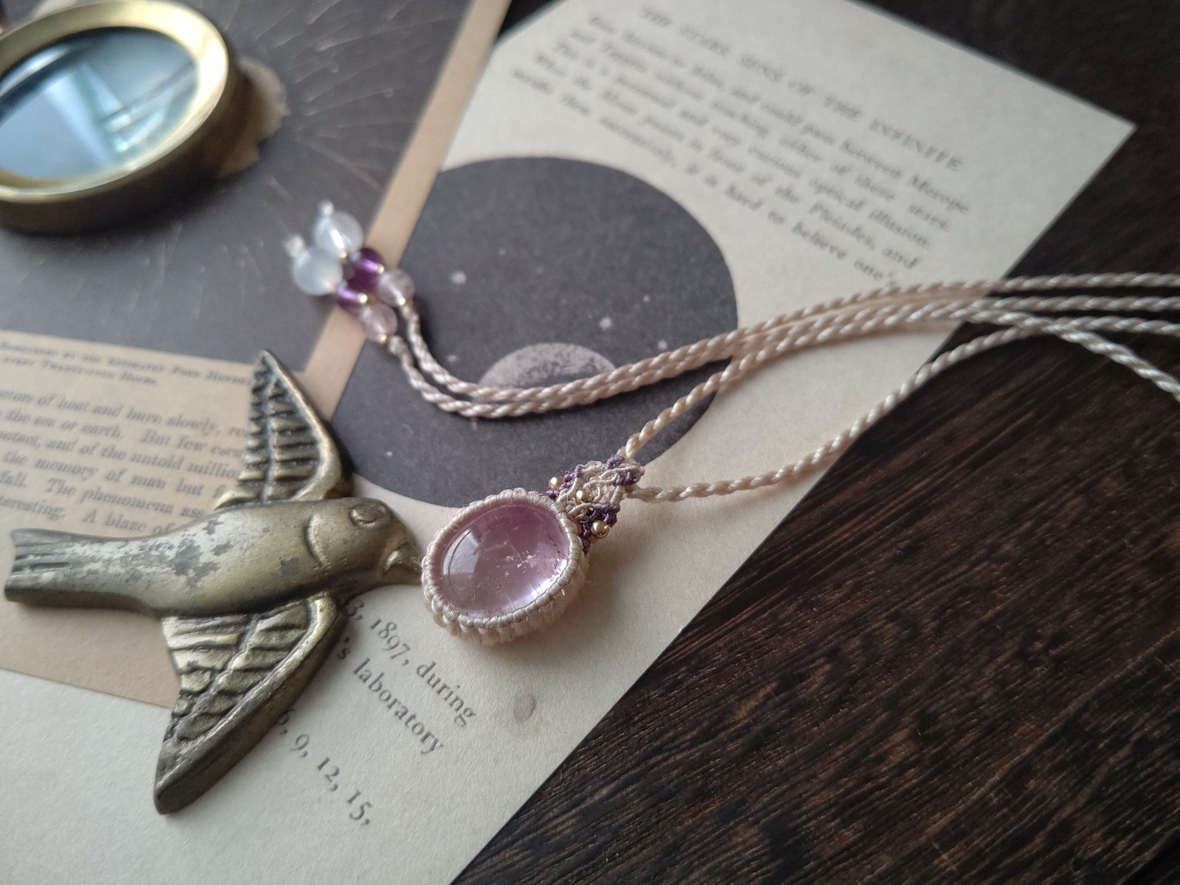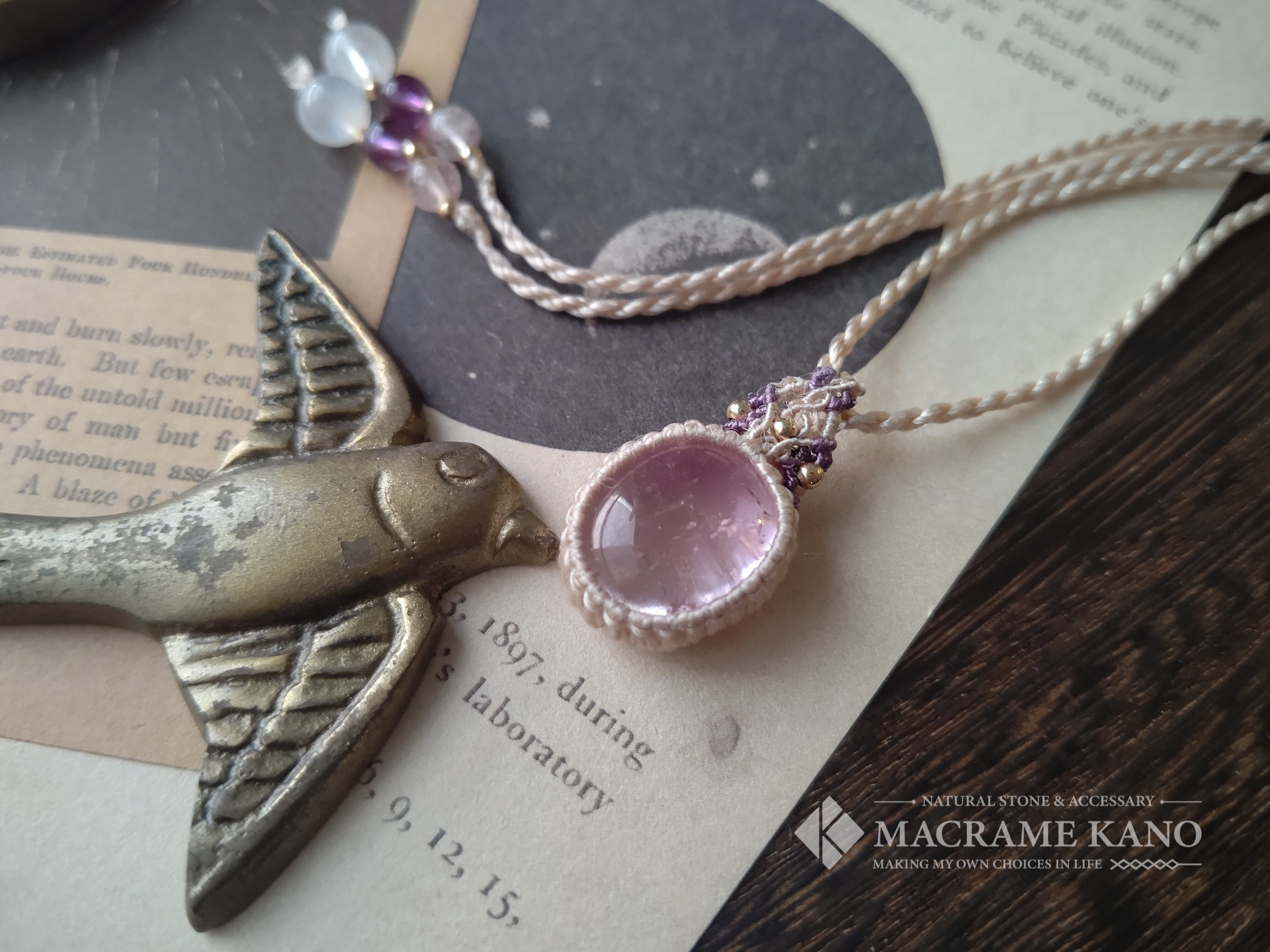 ≪silk≫ 宝石質クンツァイト シルクペンダント ≪macrame pendant≫