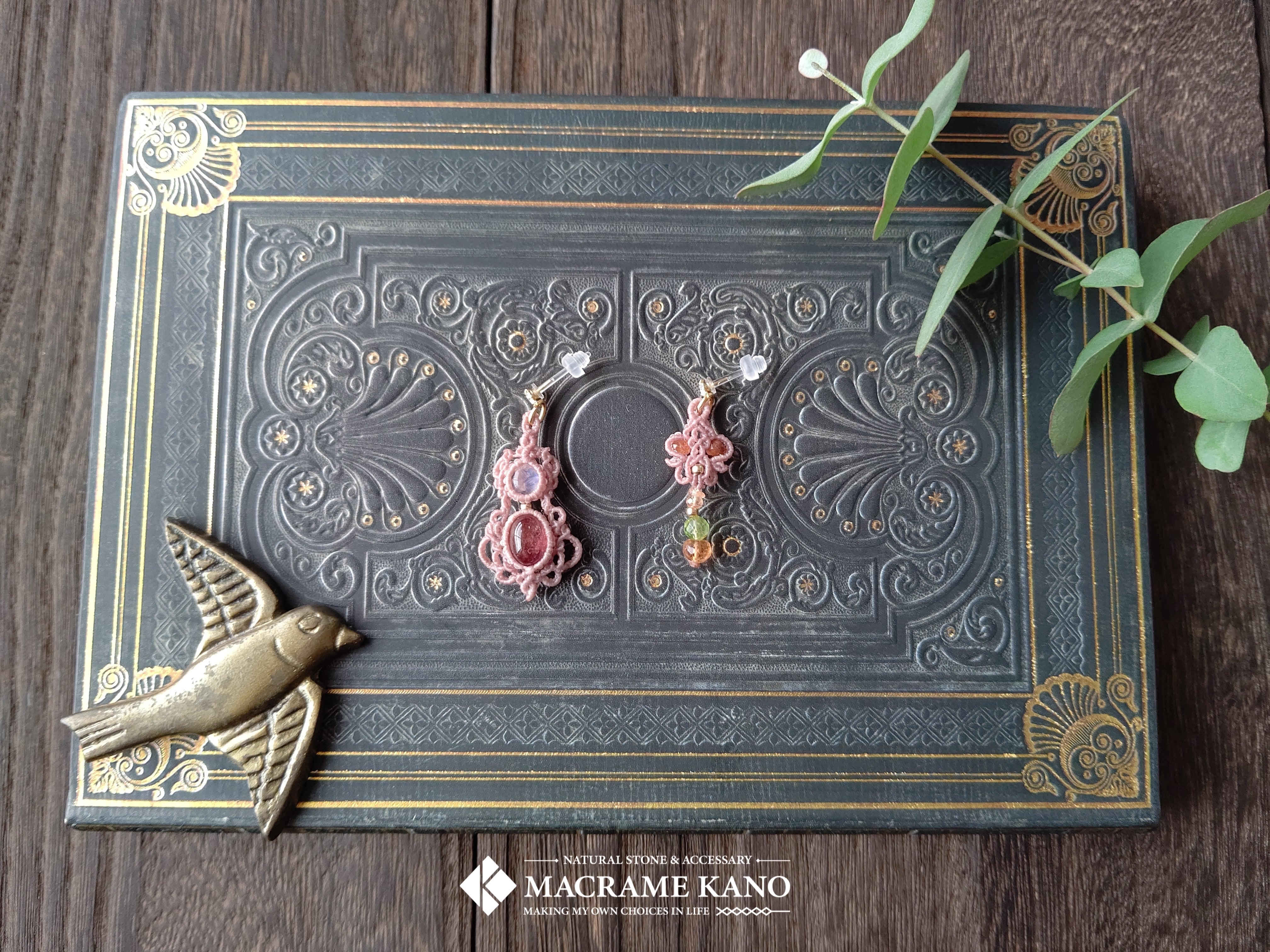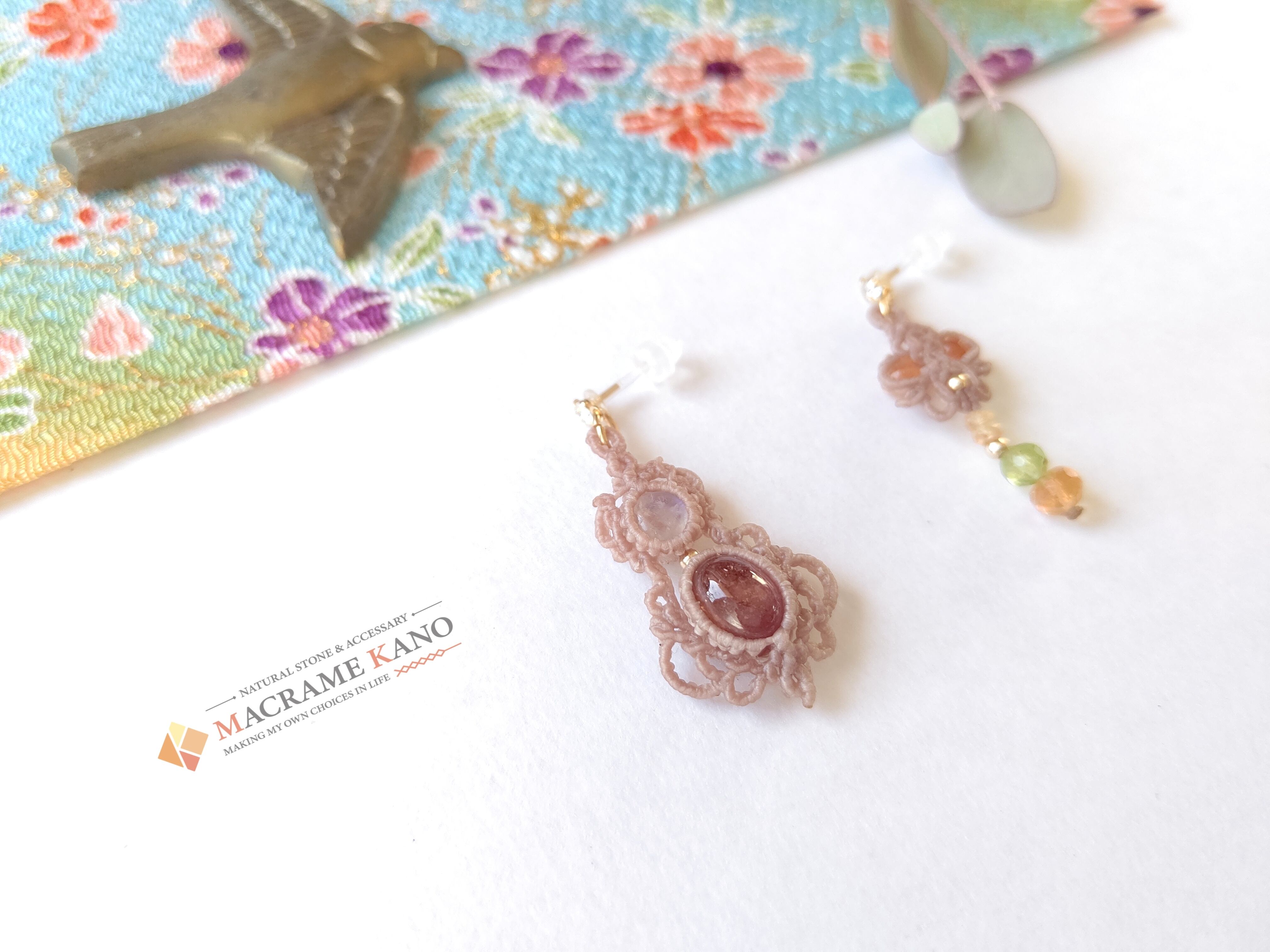 ピンクトルマリン×ブルームーンストーンと春の宝石ののアシンメトリー耳飾り/ピアスorイヤリング