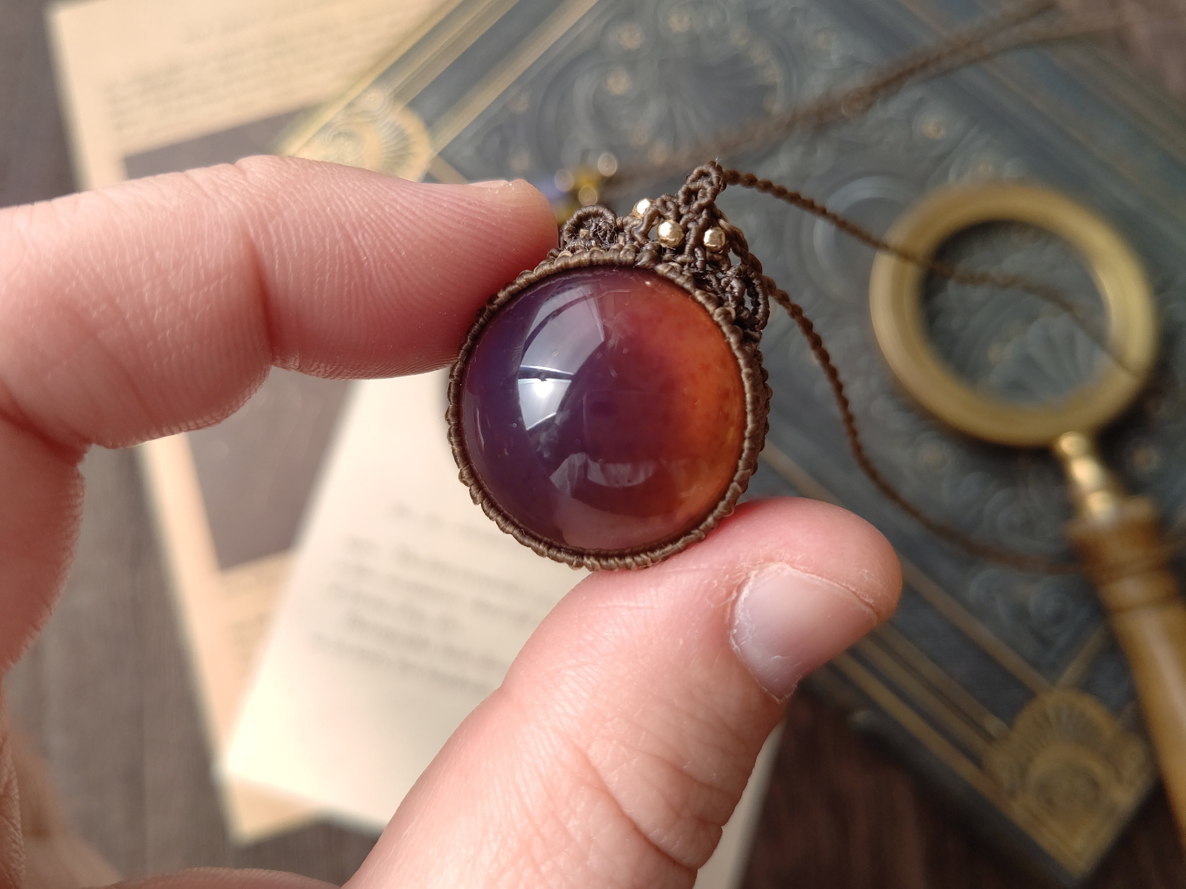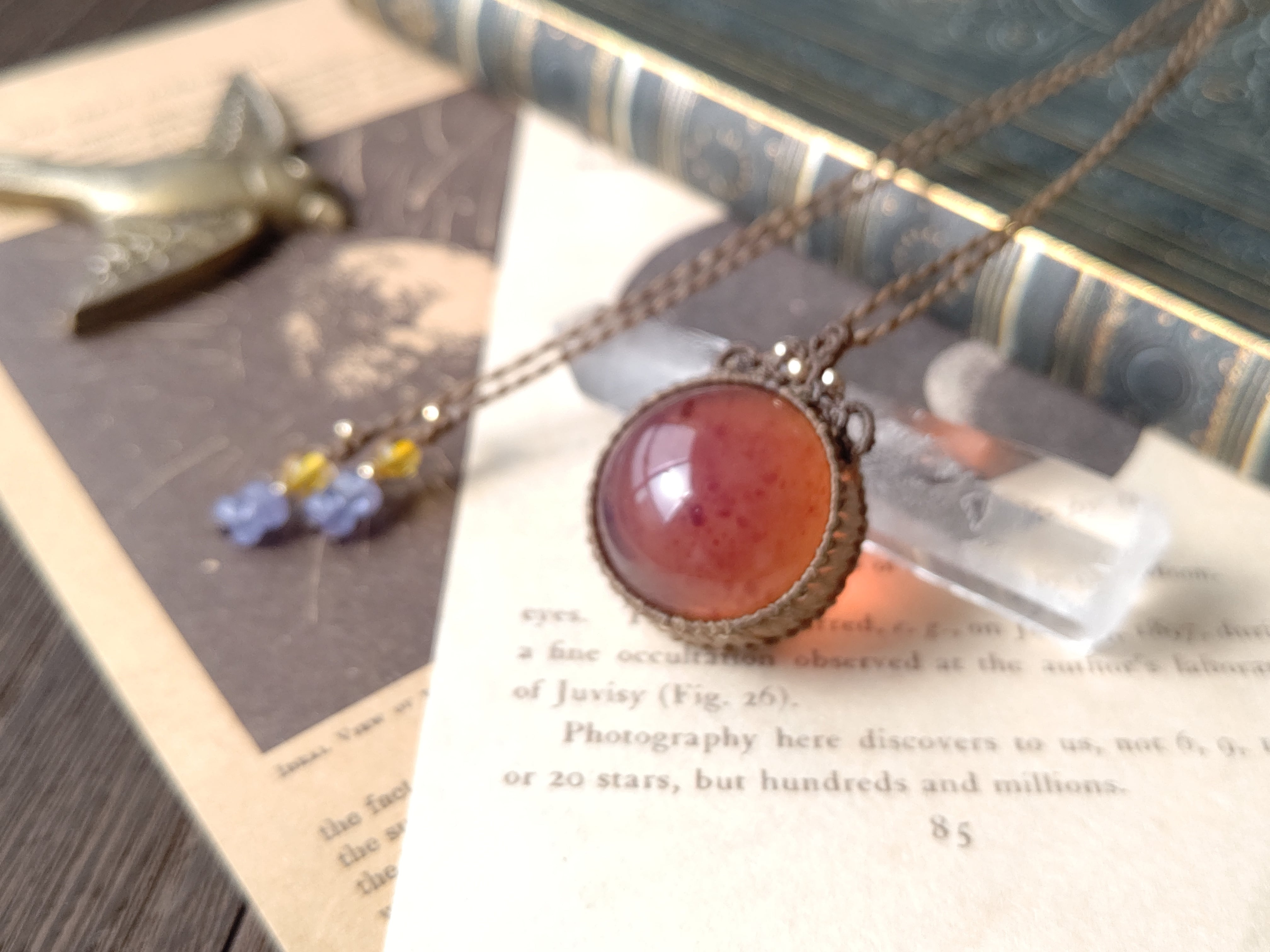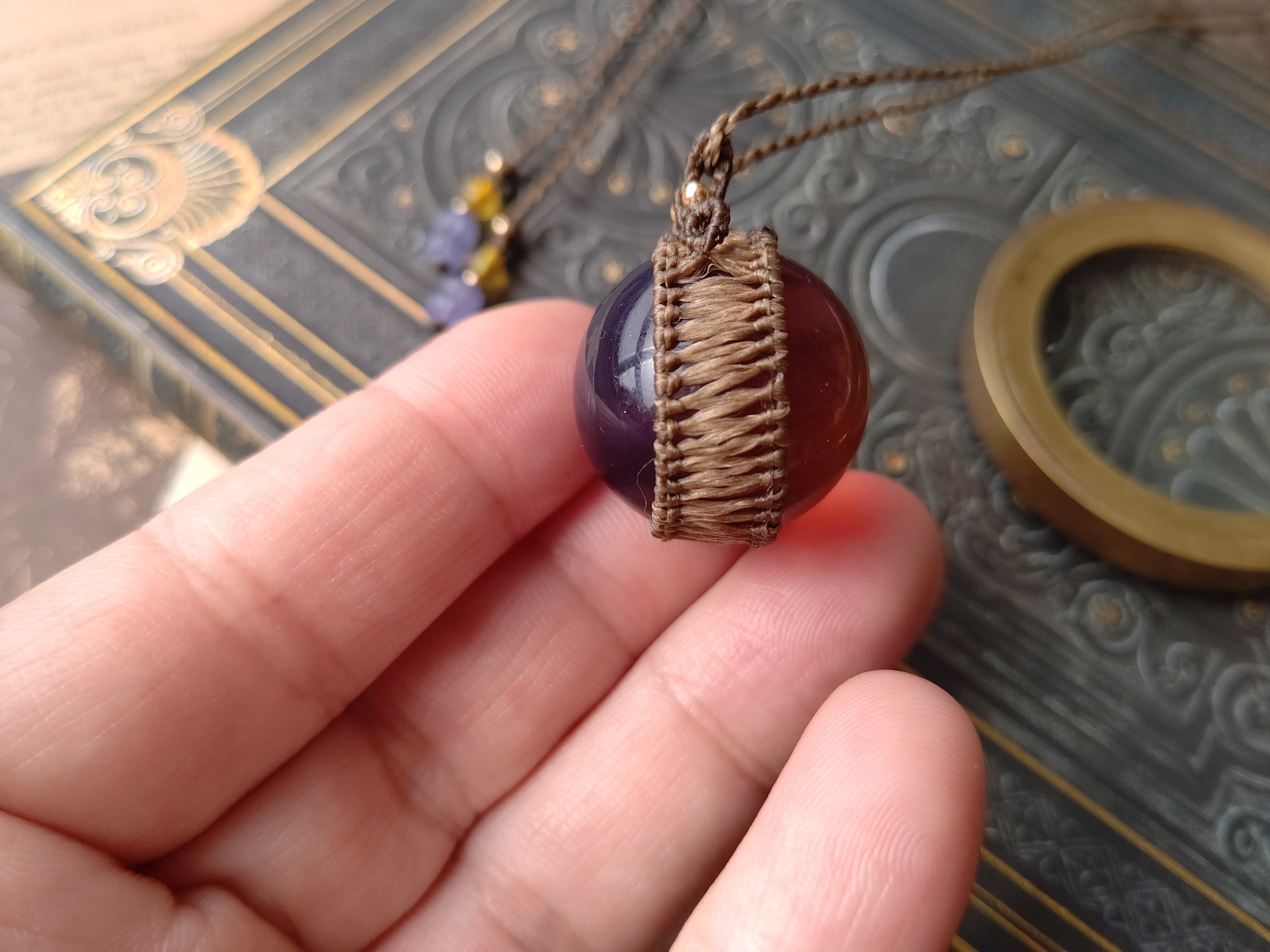 スマトラ産ブルーアンバースフィアのマクラメペンダント/0.25mm仕上げ