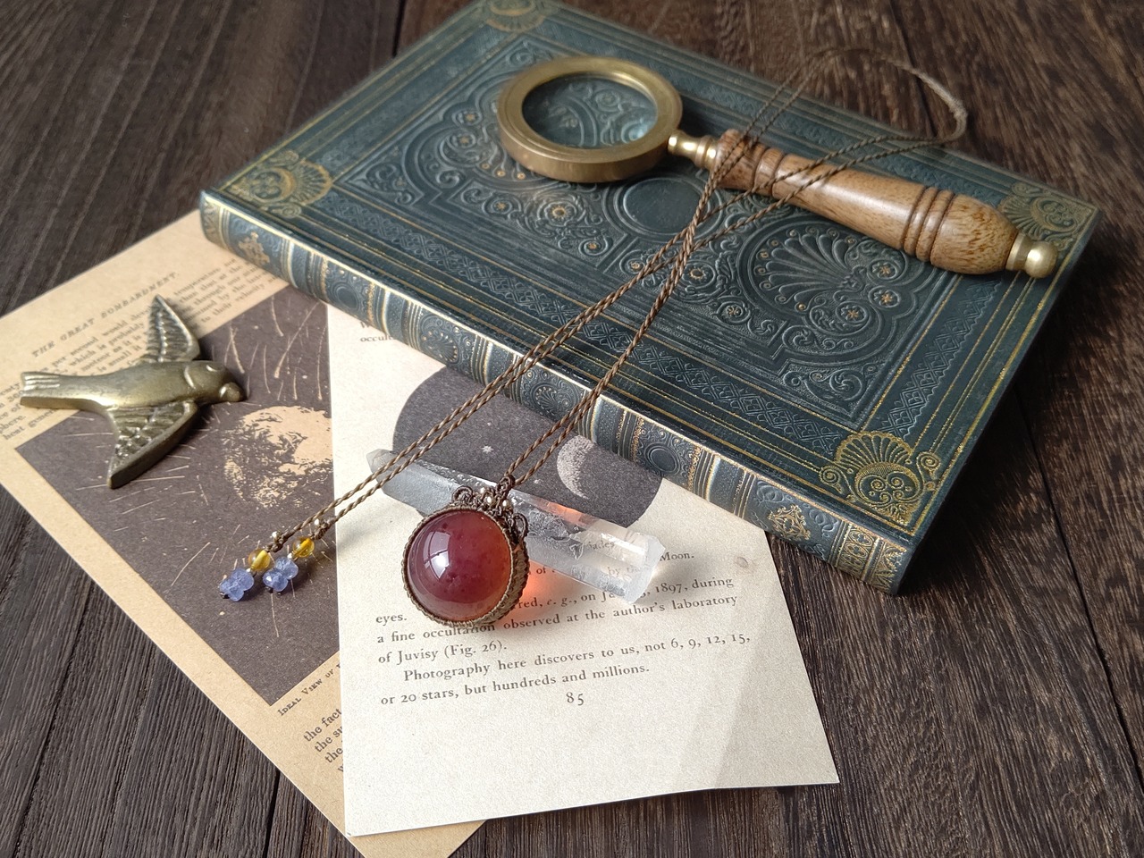 大ぶりのペンダントは少し苦手、という方でもアンバーであるため、とても軽くて身に着けやすいとお声をいただいています。