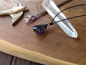 ジュエリーカットが施されたぷっくりとした宝石質のアイオライトのルースでシンプルな編み込みのカジュアルなペンダントを製作しました。