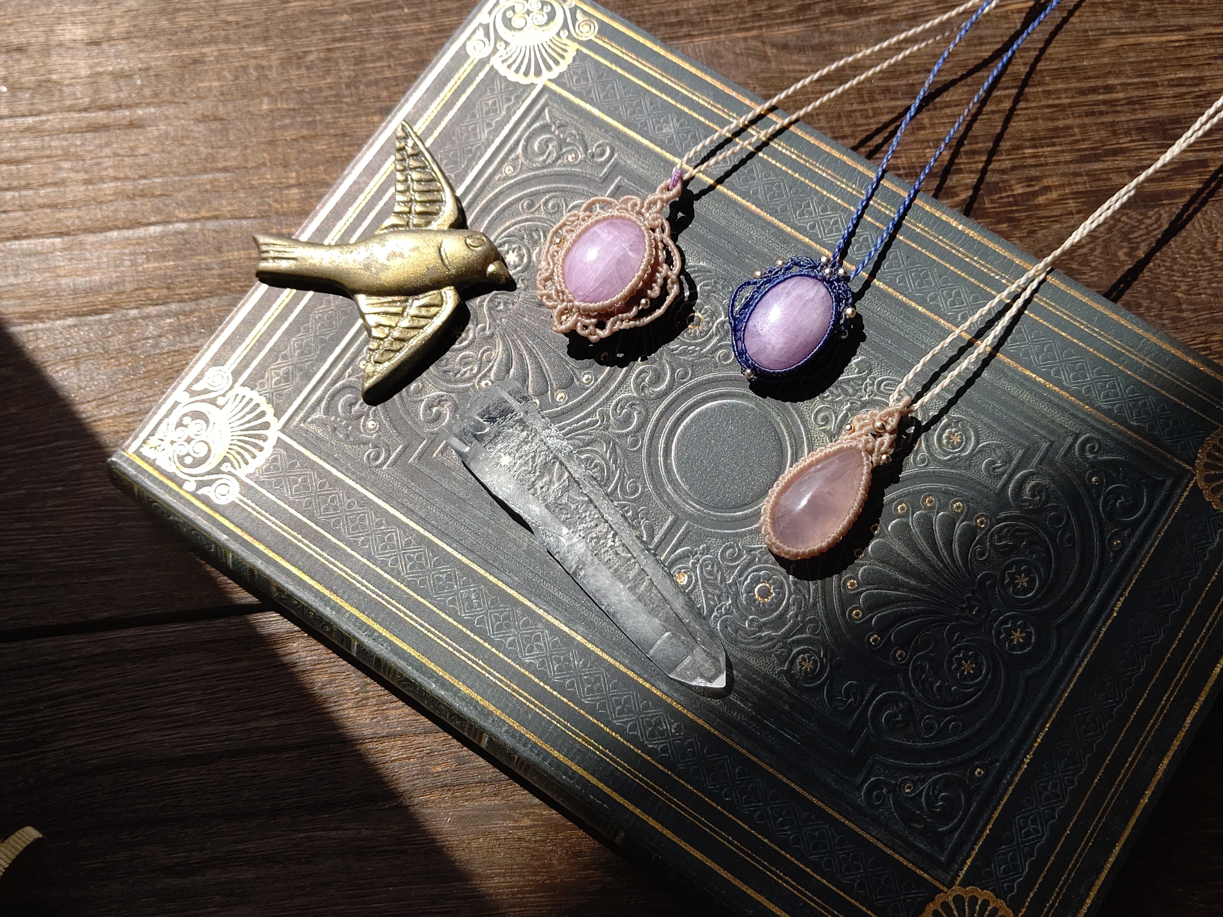 マダガスカル産のローズクォーツでシンプルな編み込みのカジュアルなペンダントを製作しました。