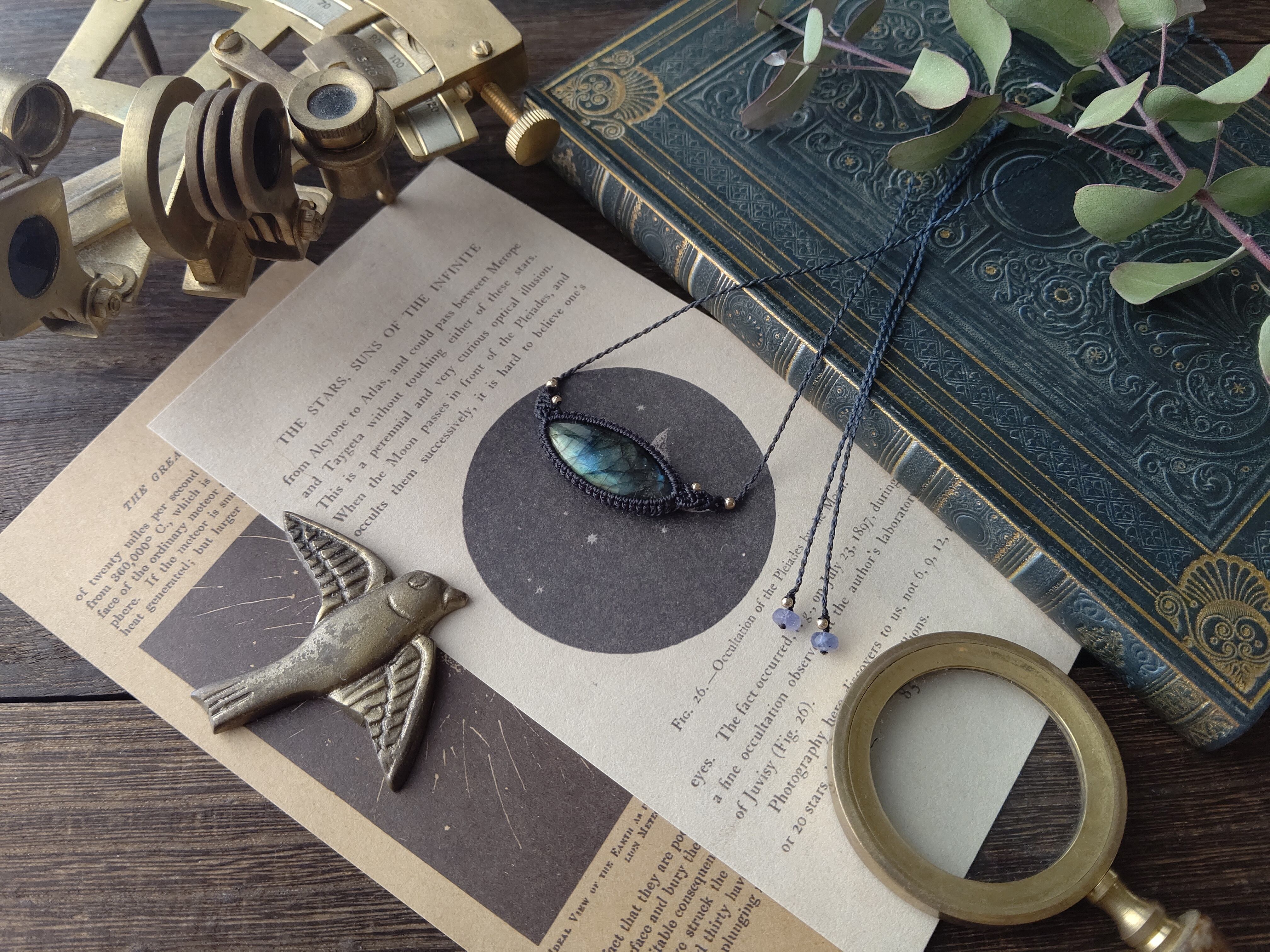 ラブラドライトのマクラメフロントネックレス/0.35mm仕上げ