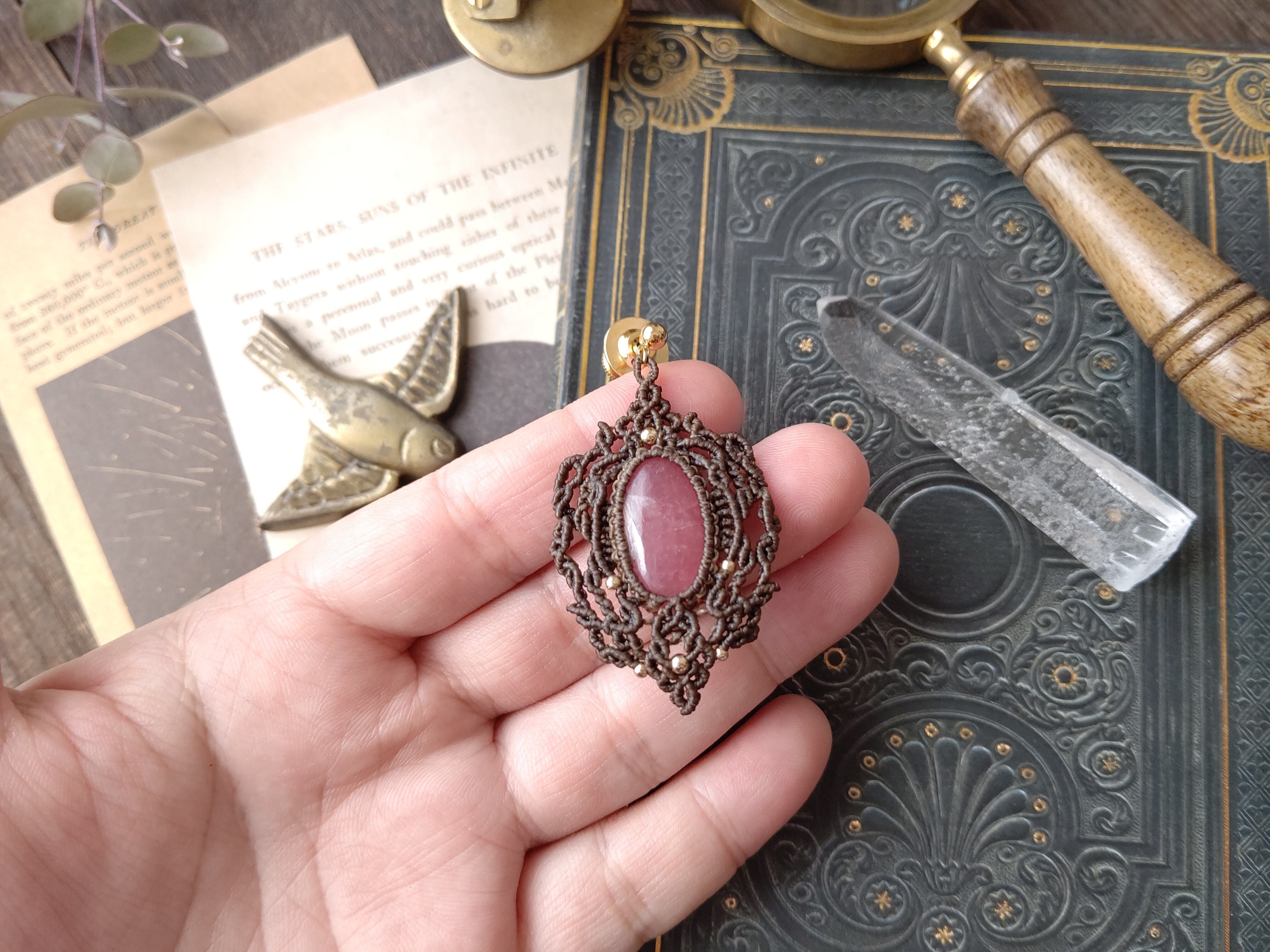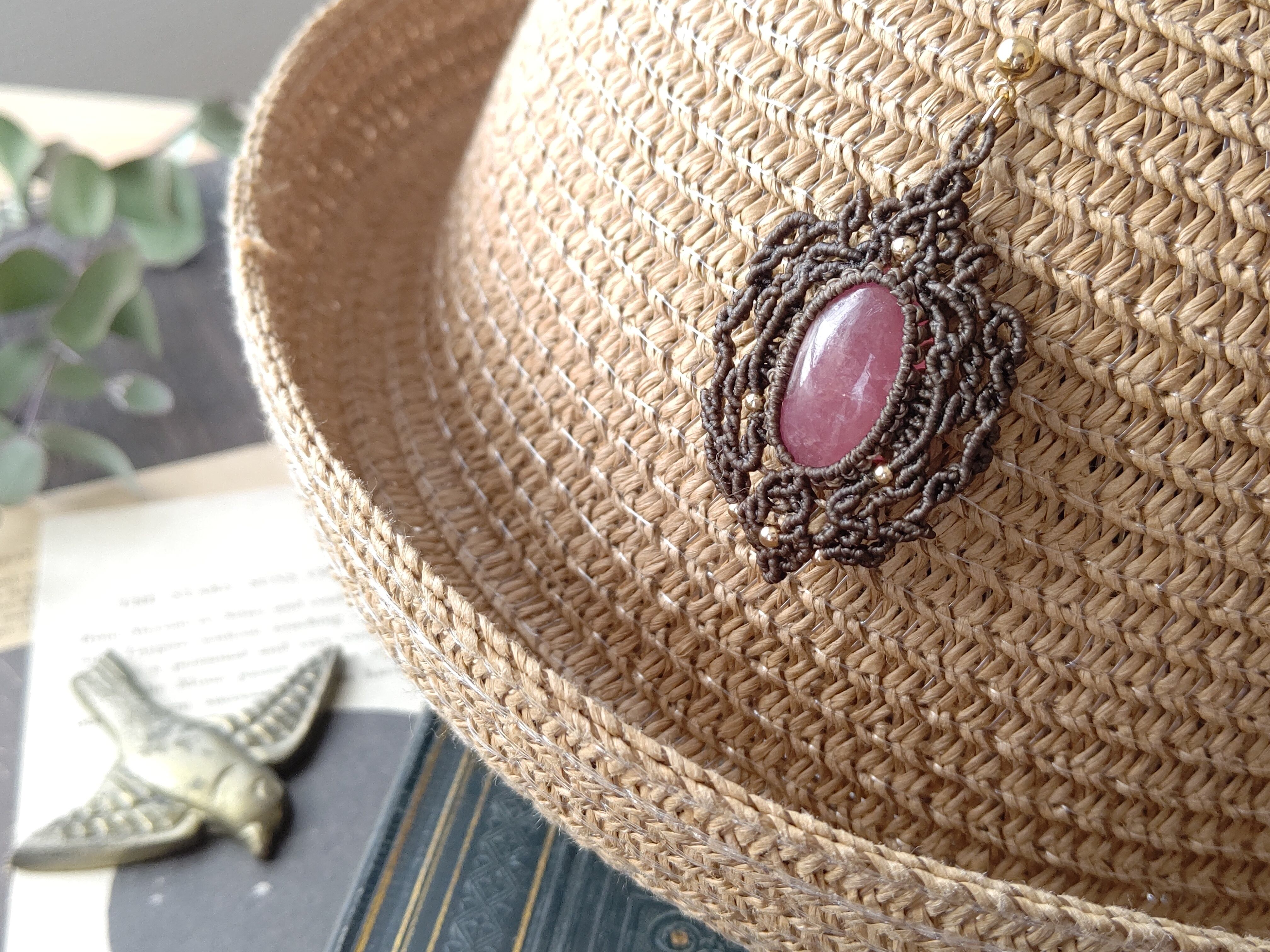 インカローズ(ロードクロサイト)のマクラメブローチ
