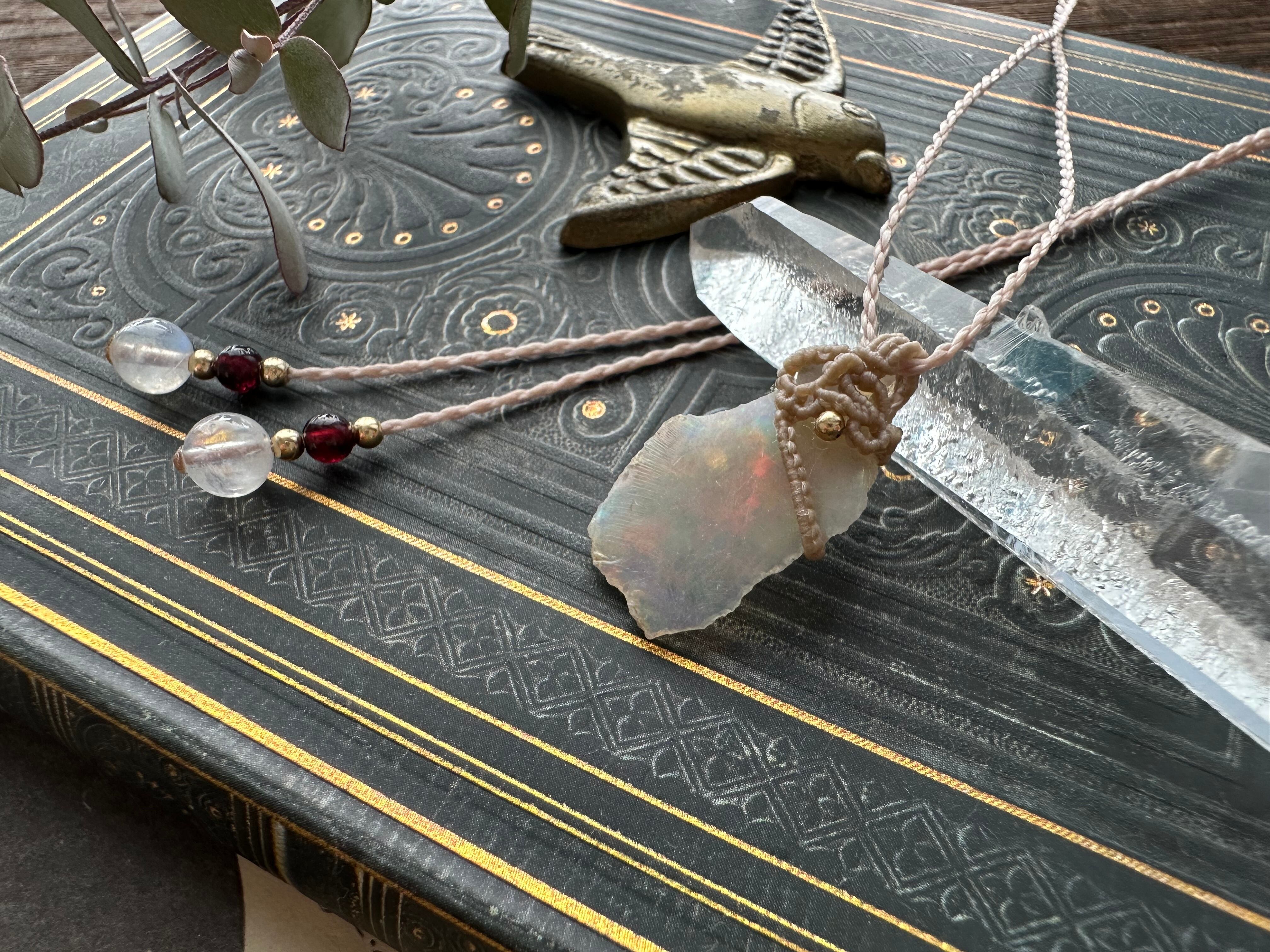 妖精の羽根 / 薄葉オパールのマクラメペンダント/0.25mm仕上げ