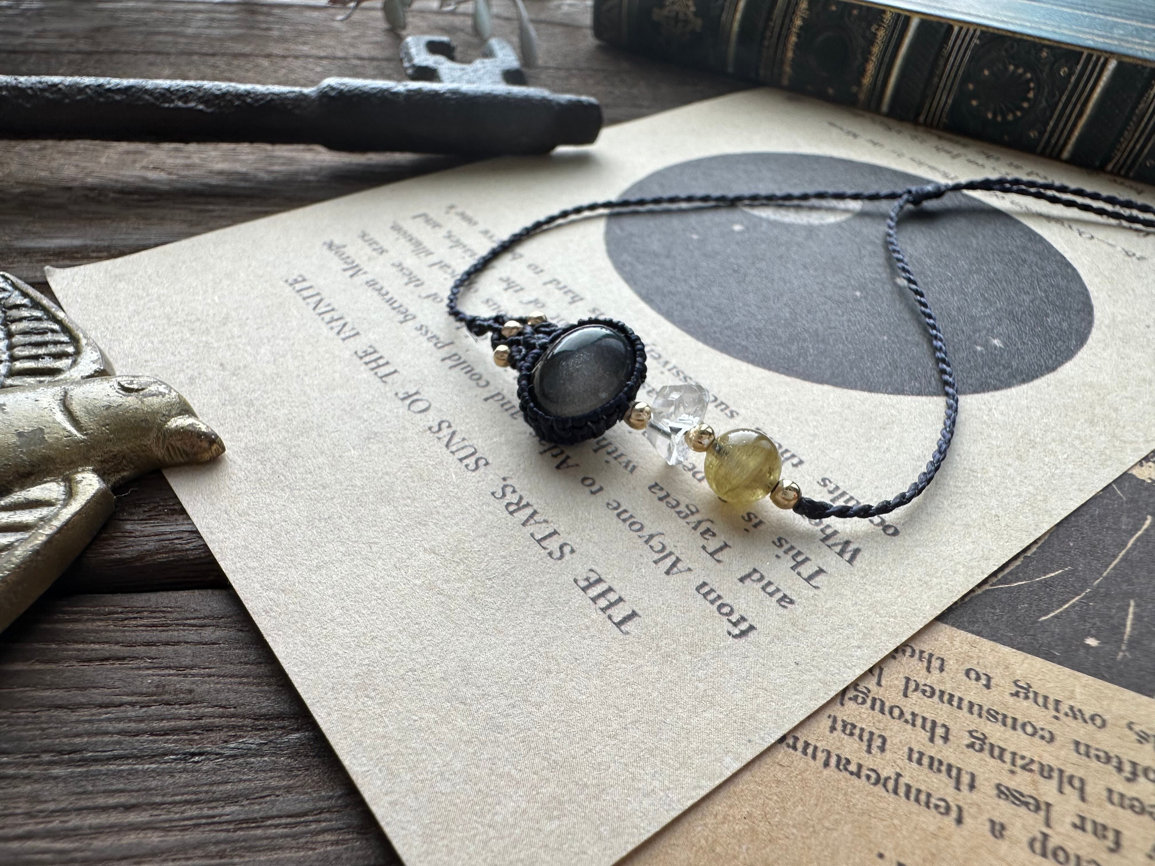 グレームーンストーン×ハーキマーダイヤモンド×ルチルクォーツのアシンメトリーブレスレット