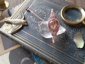 ふんわりとしたベージュの色合いの内包物が見られるガーデンクォーツのルースを、0.5mmの糸で丁寧に編み込み、中央にボリュームを持たせたワンポイントデザインで製作いたしました。ルースは内包クラックが見られます。光が差し込むと内包物に影ができます。