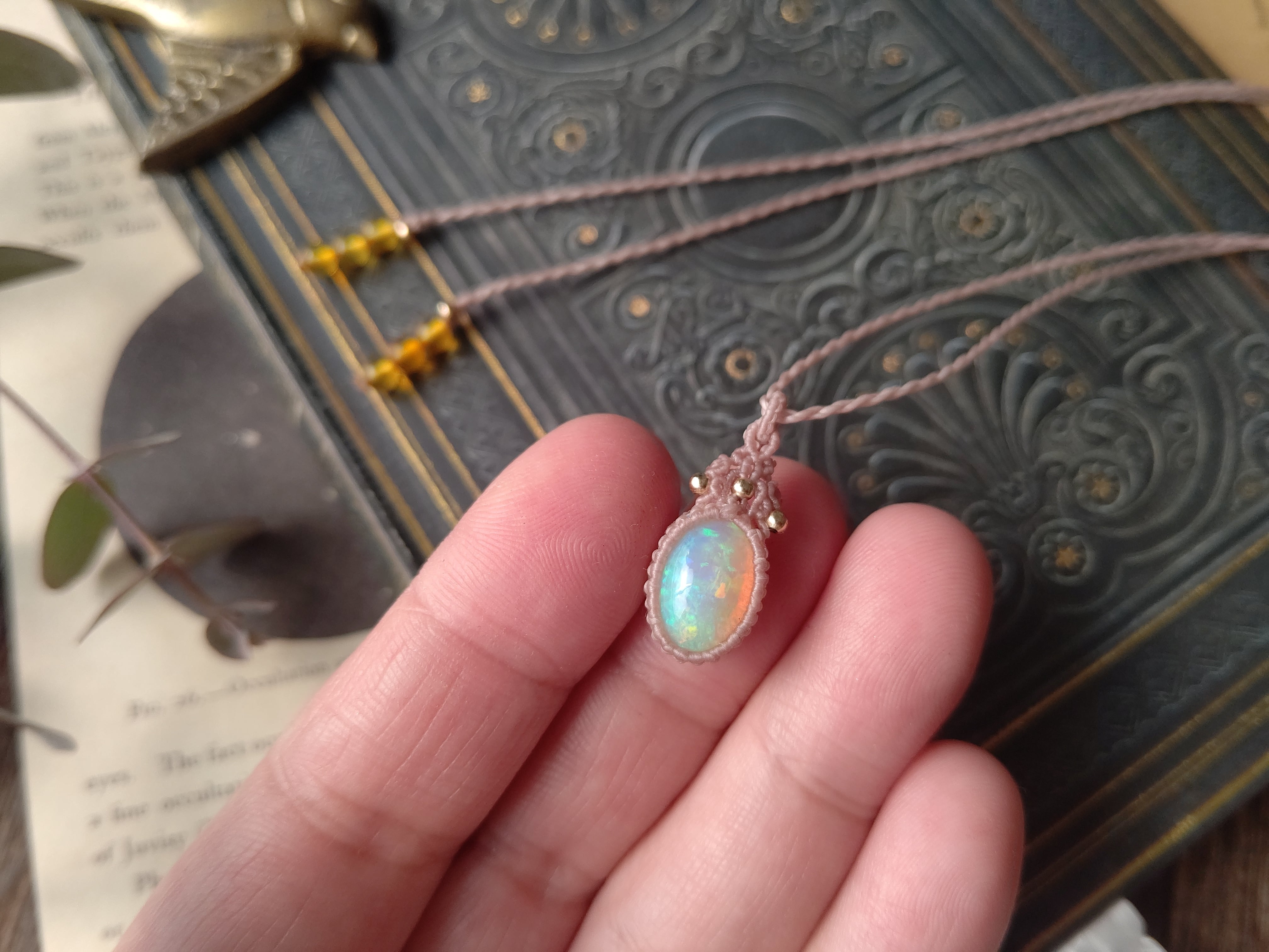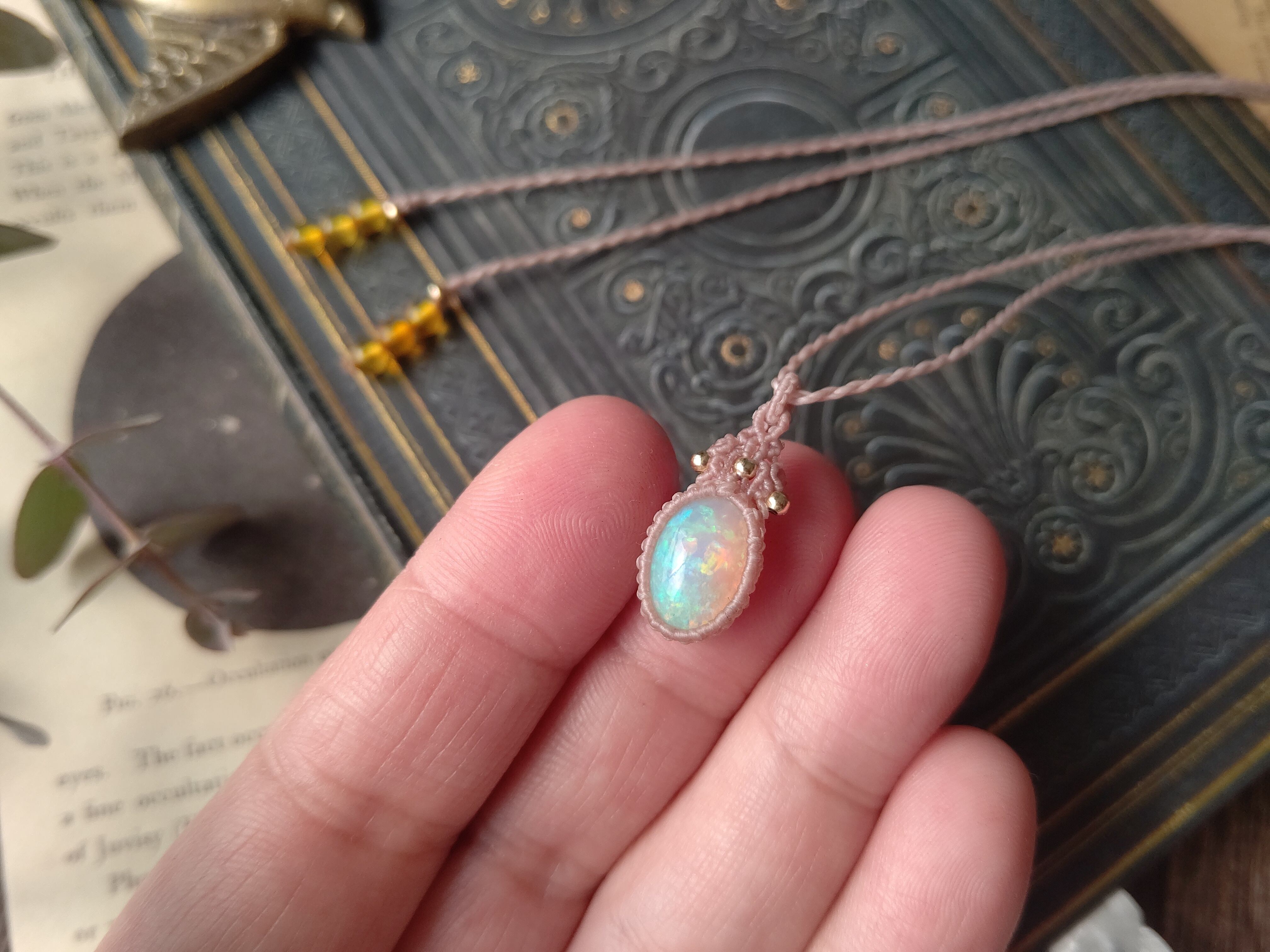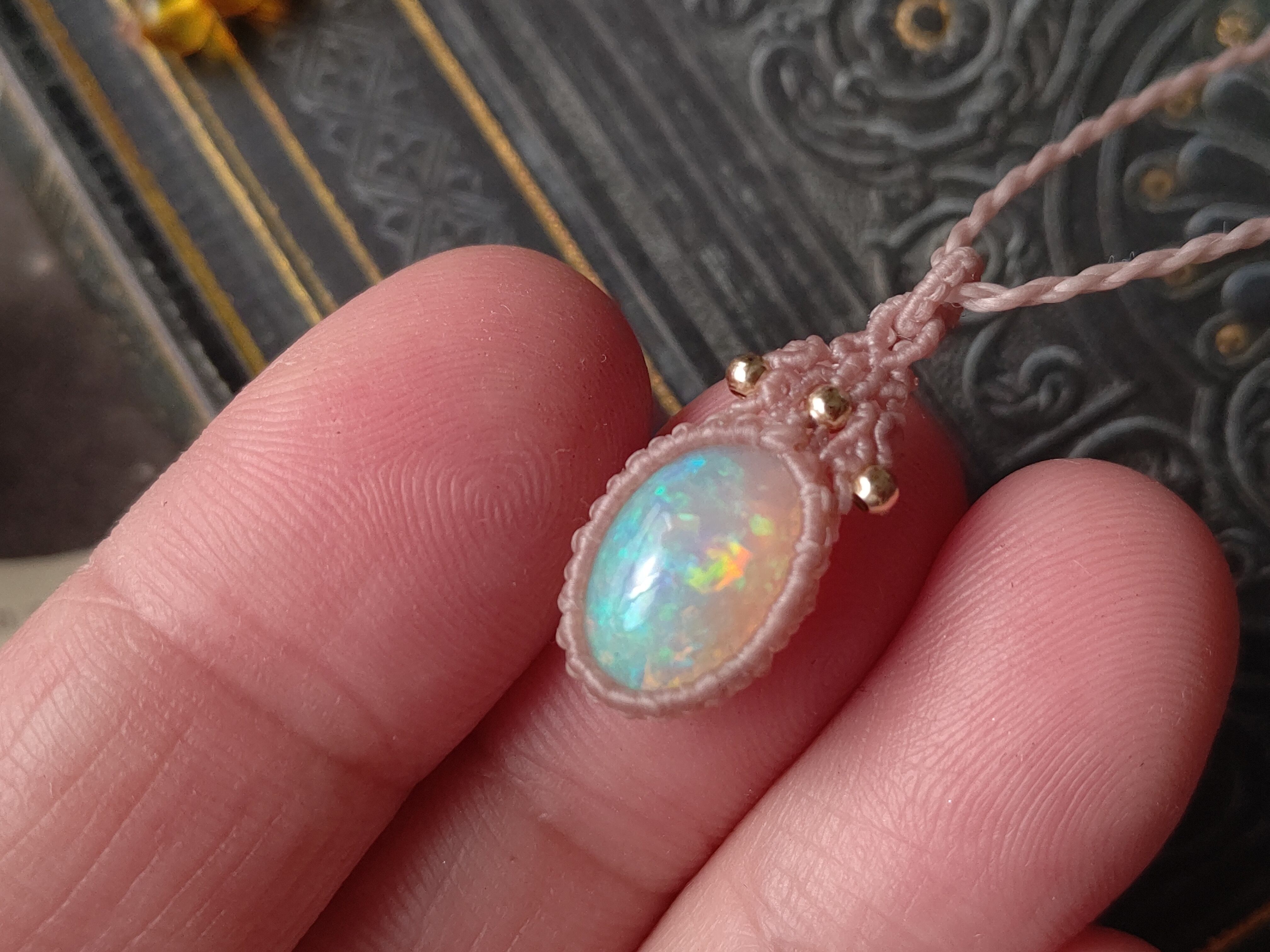 虹色オパールのマクラメペンダント/0.25mm仕上げ