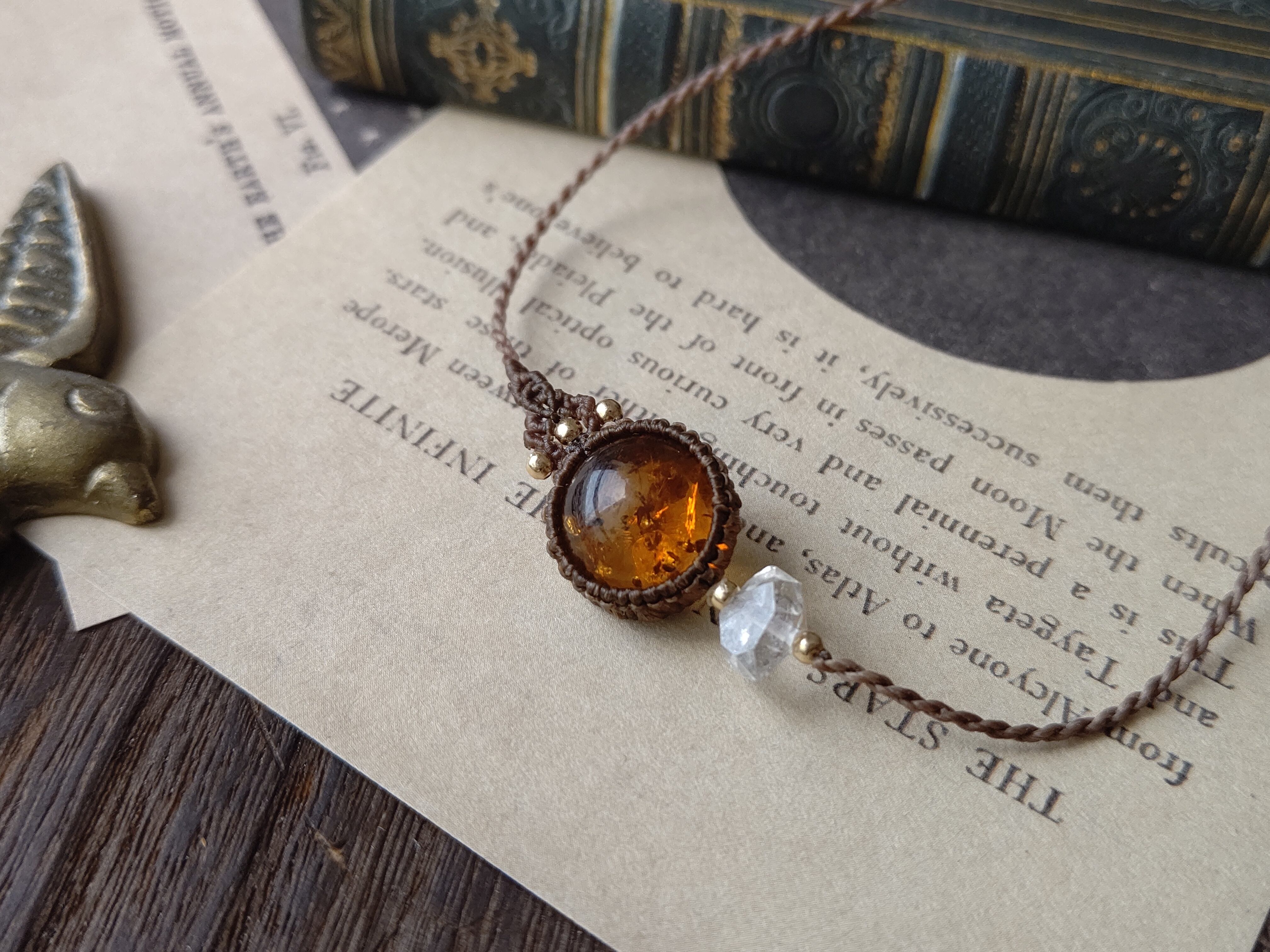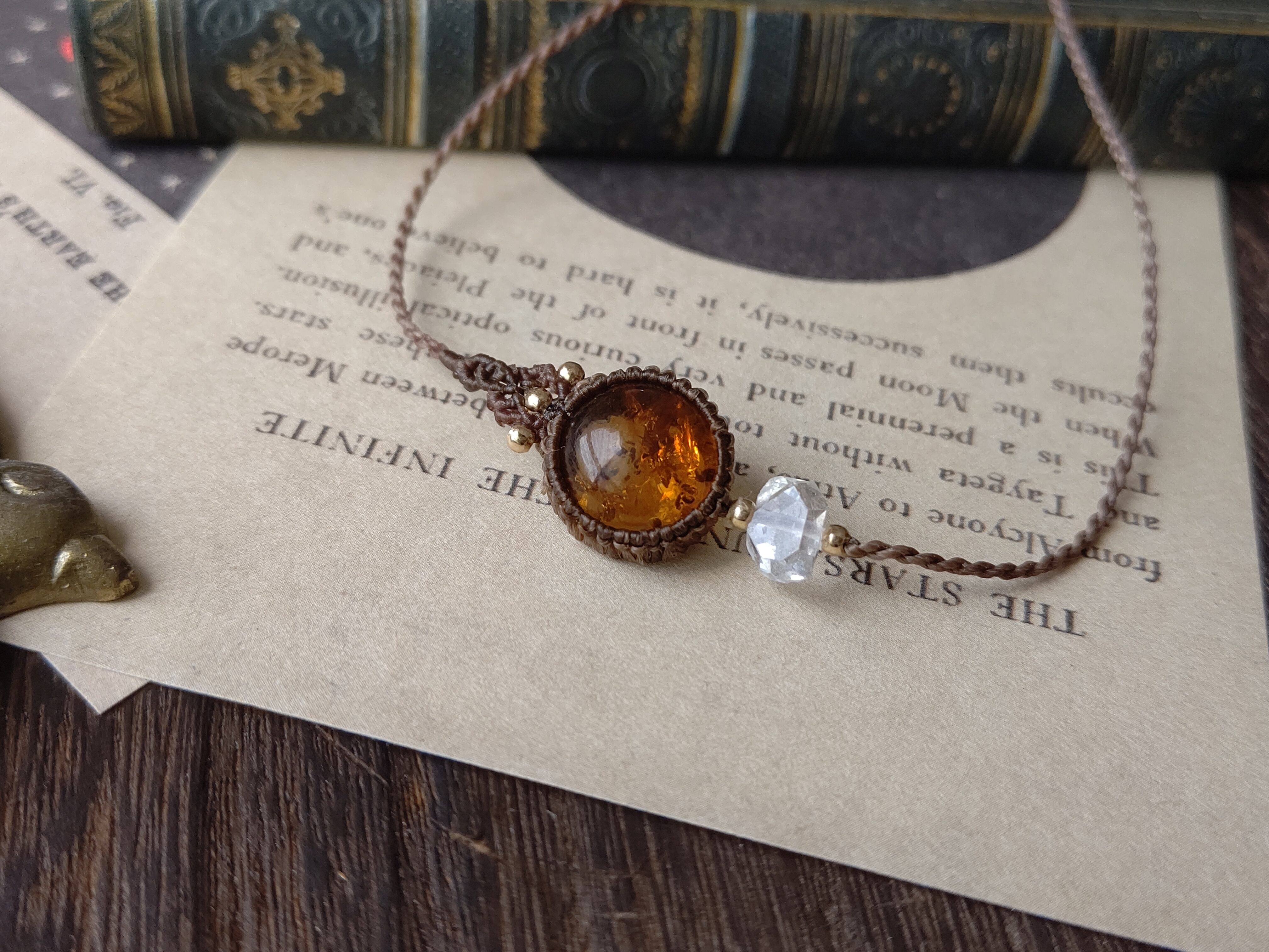 バルティックアンバー×ハーキマーダイヤモンドのアシンメトリーブレスレット