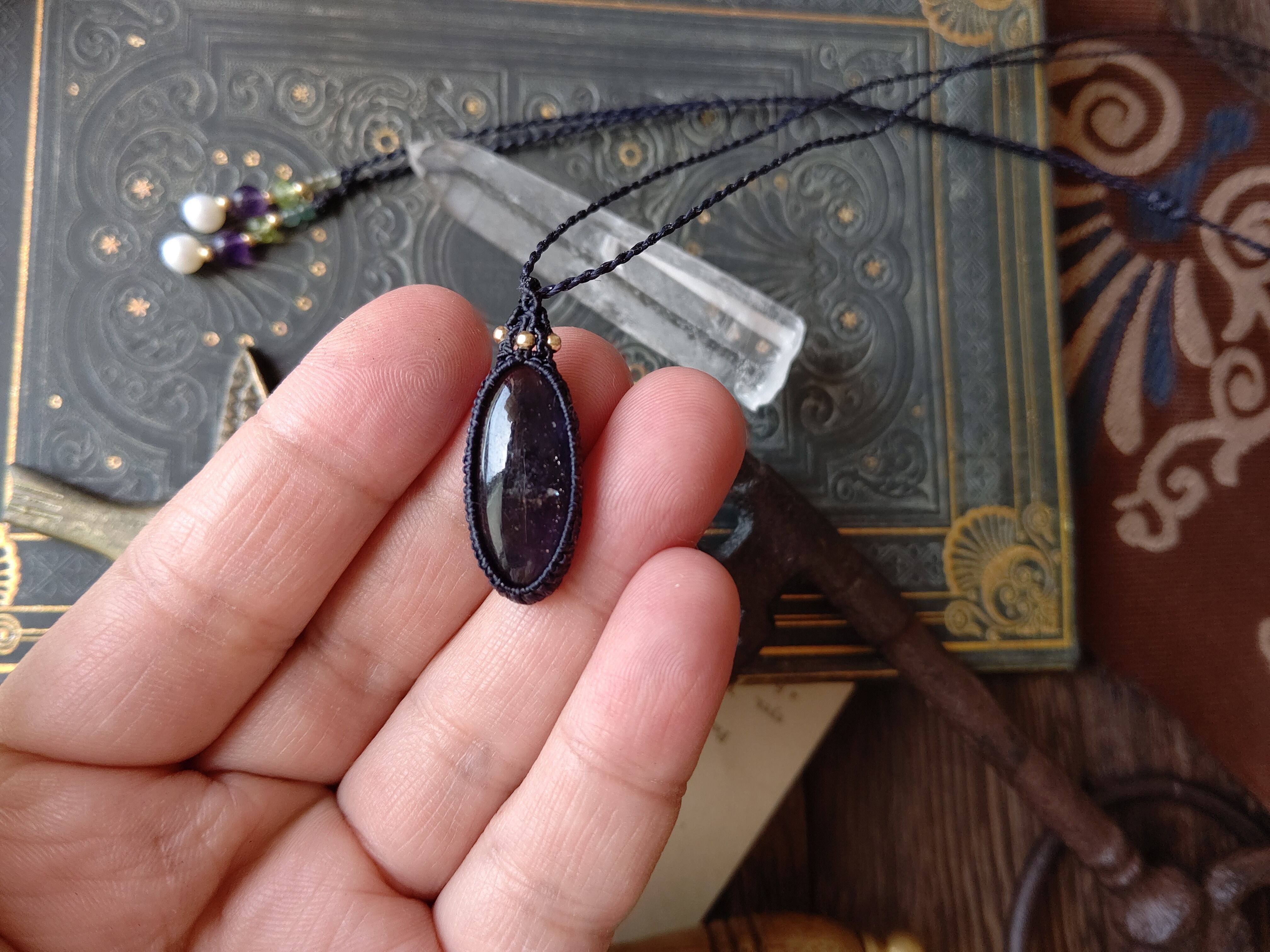 天の川銀河 / アイオライトサンストーンのマクラメネックレス/0.25mm仕上げ