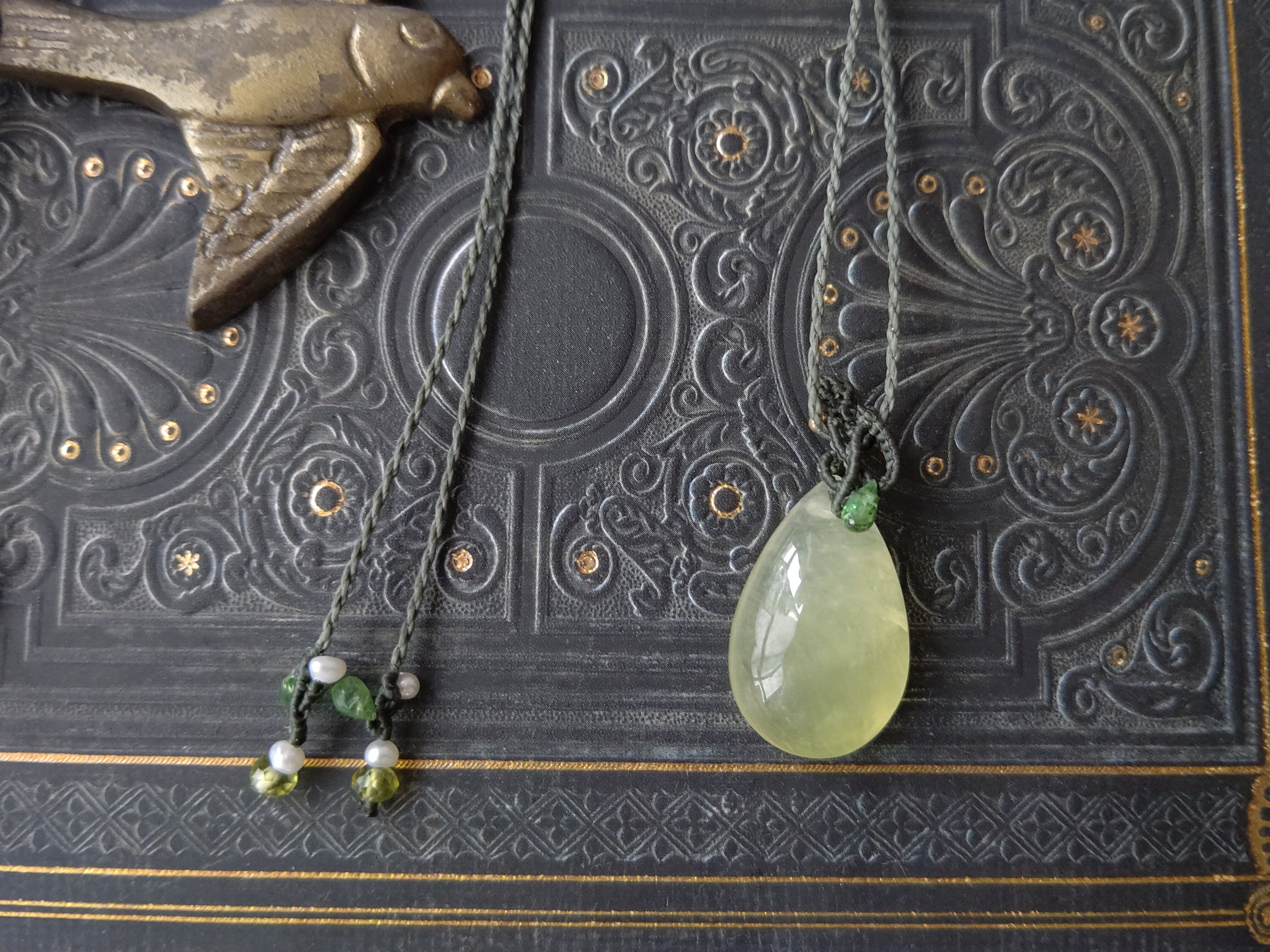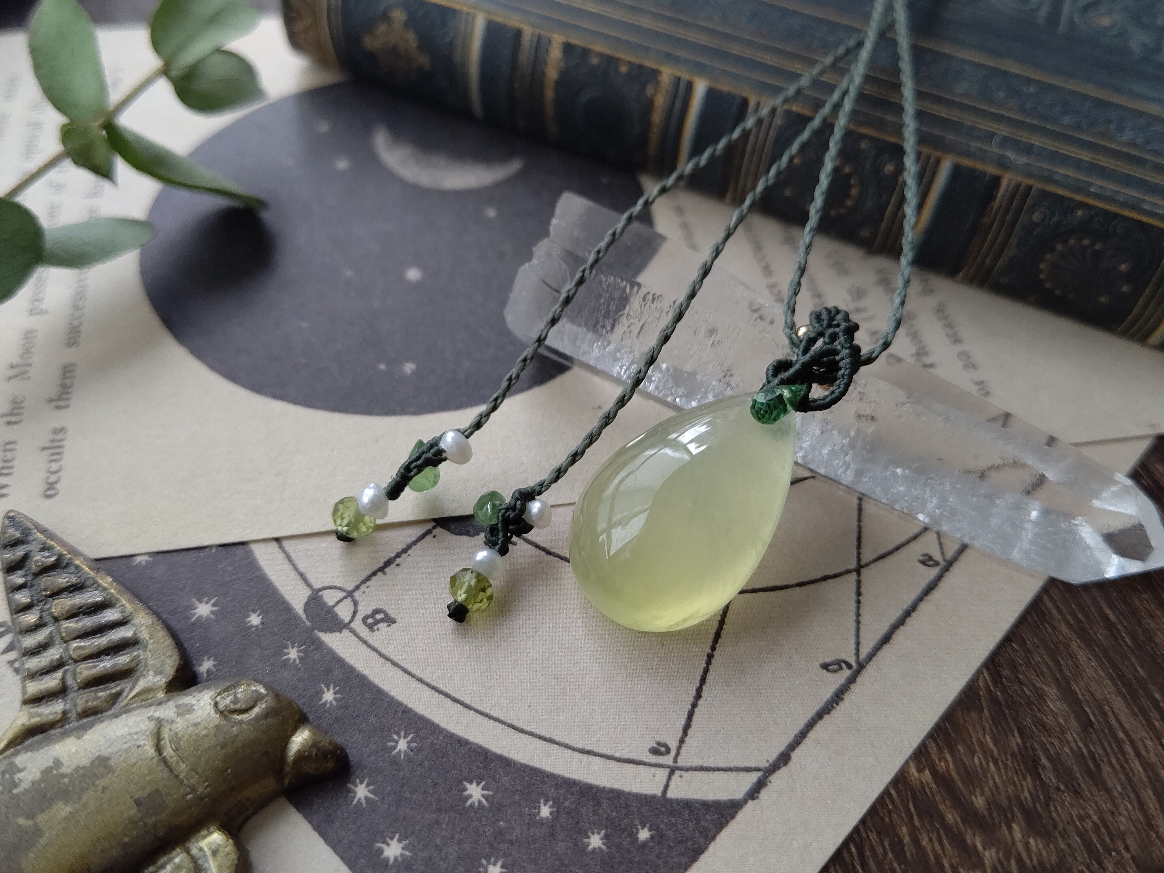 ぷるんと艶やかでおいしそうな色合いのイエロープレナイトをすっきりと編み上げ、毎日身に着けられるペンダントを製作しました。