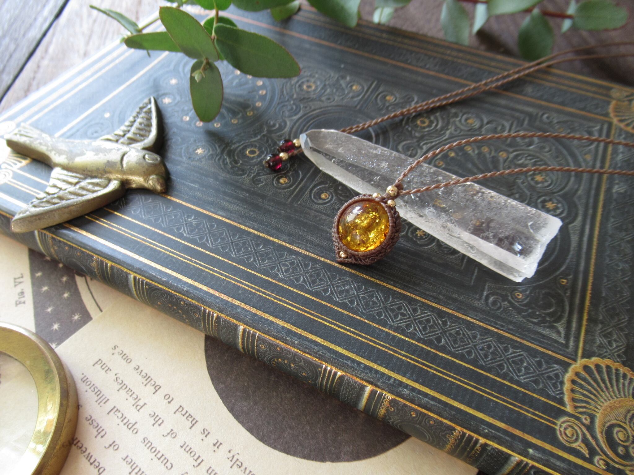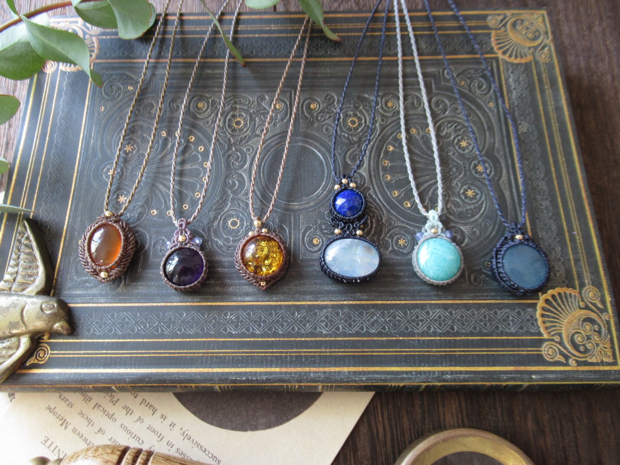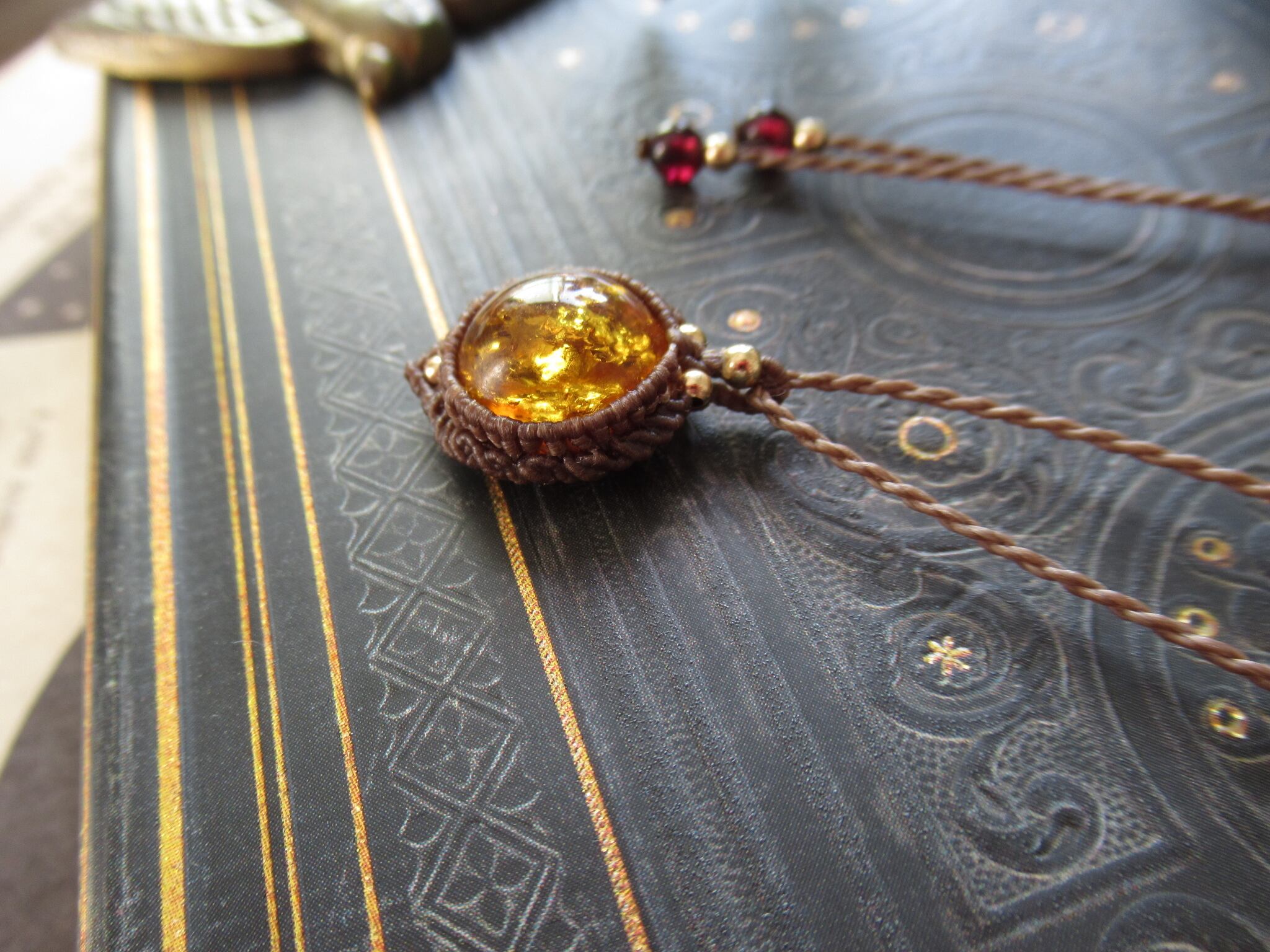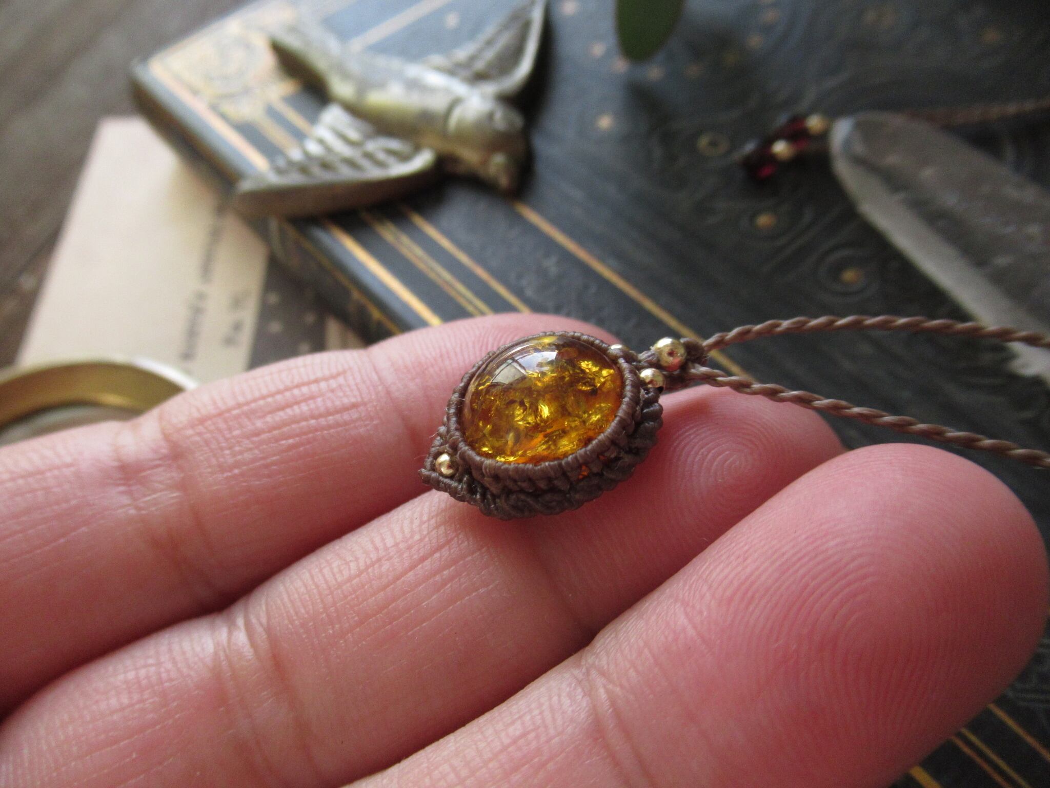 バルティックアンバーのマクラメペンダント/0.25mm仕上げ
