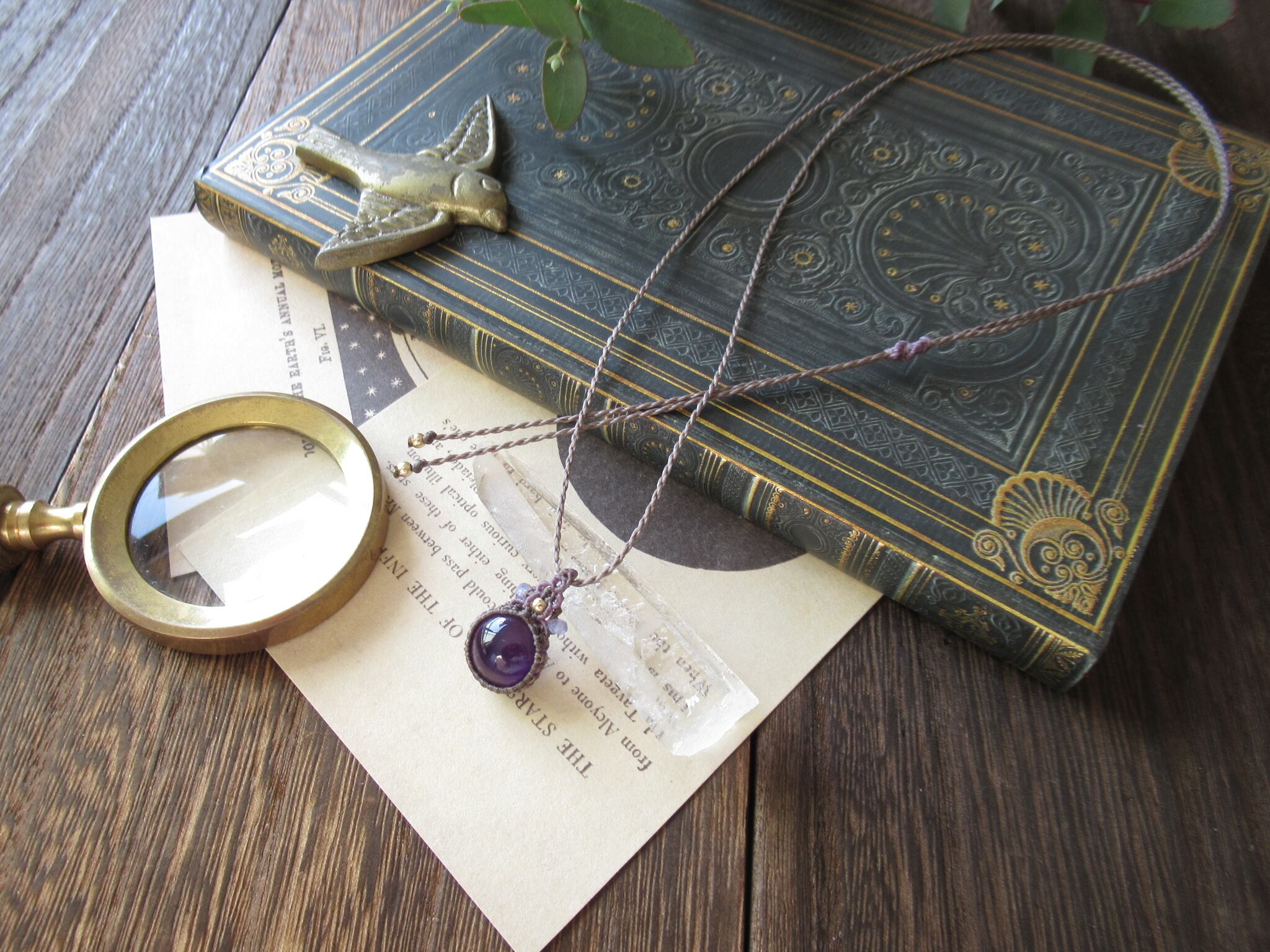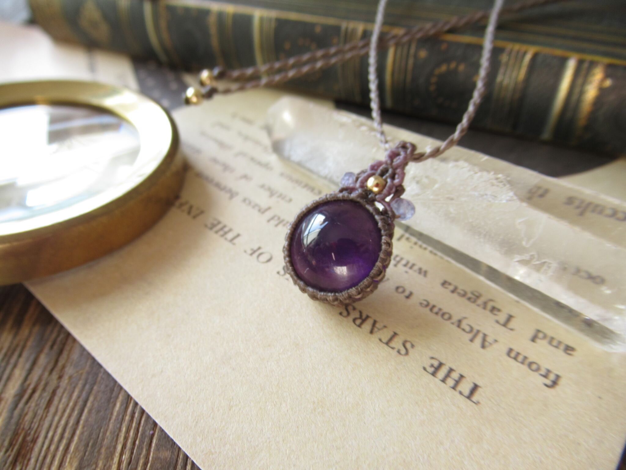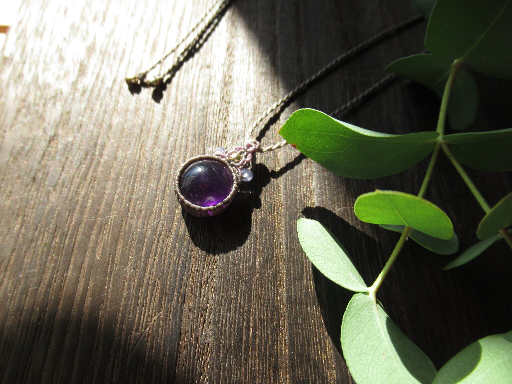 ころんとアメジストのマクラメペンダント/0.25mm仕上げ