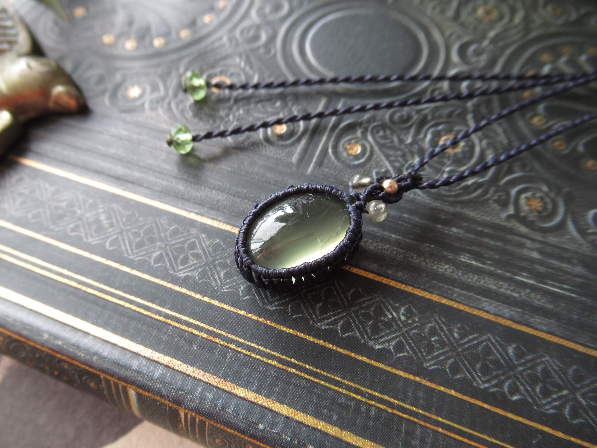 ぷるつや宝石質プレナイトのマクラメペンダント/0.25mm仕上げ