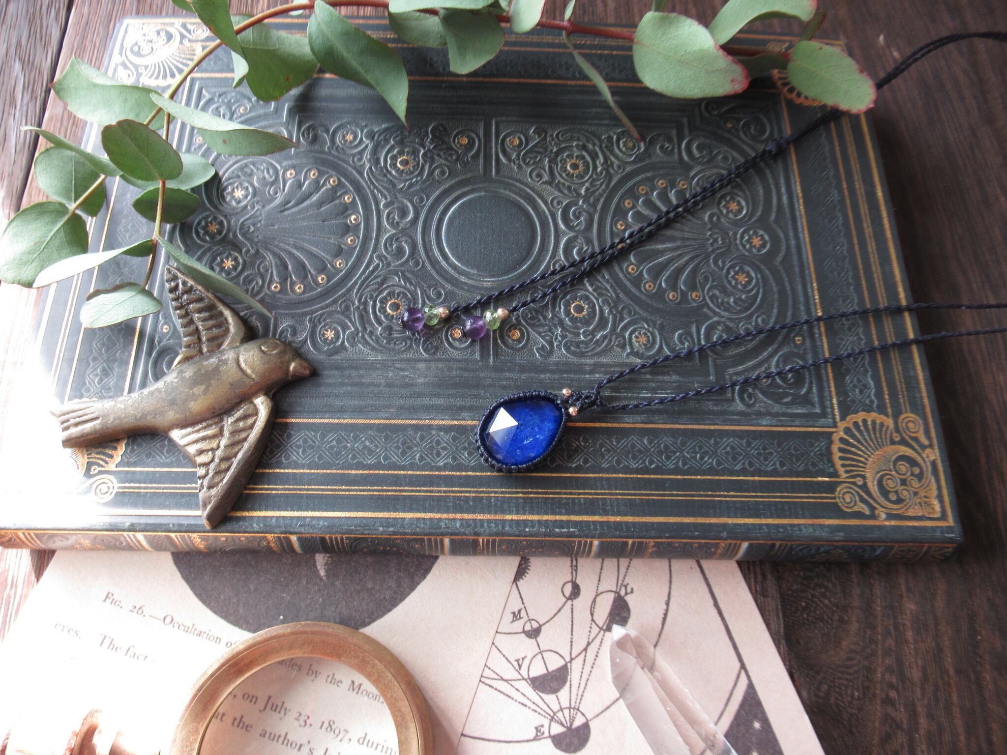 銀河の色 / ラピスラズリ×クリスタルのダブレットストーンのマクラメペンダント/0.25mm仕上げ