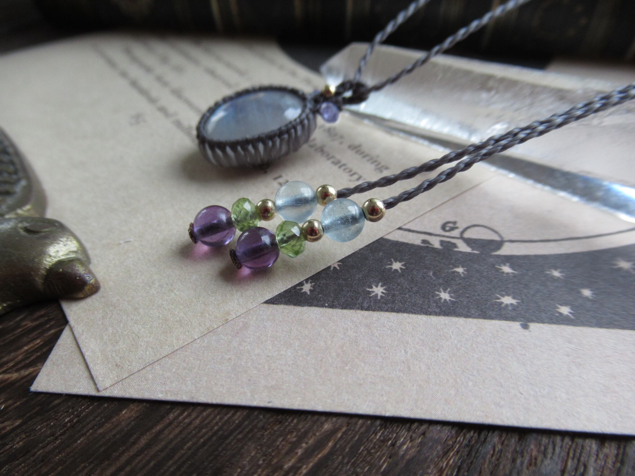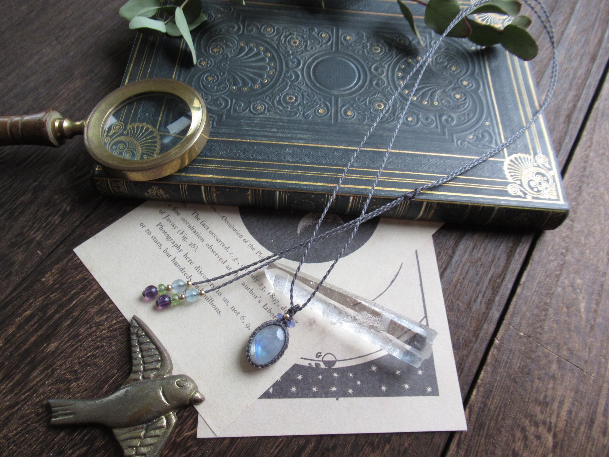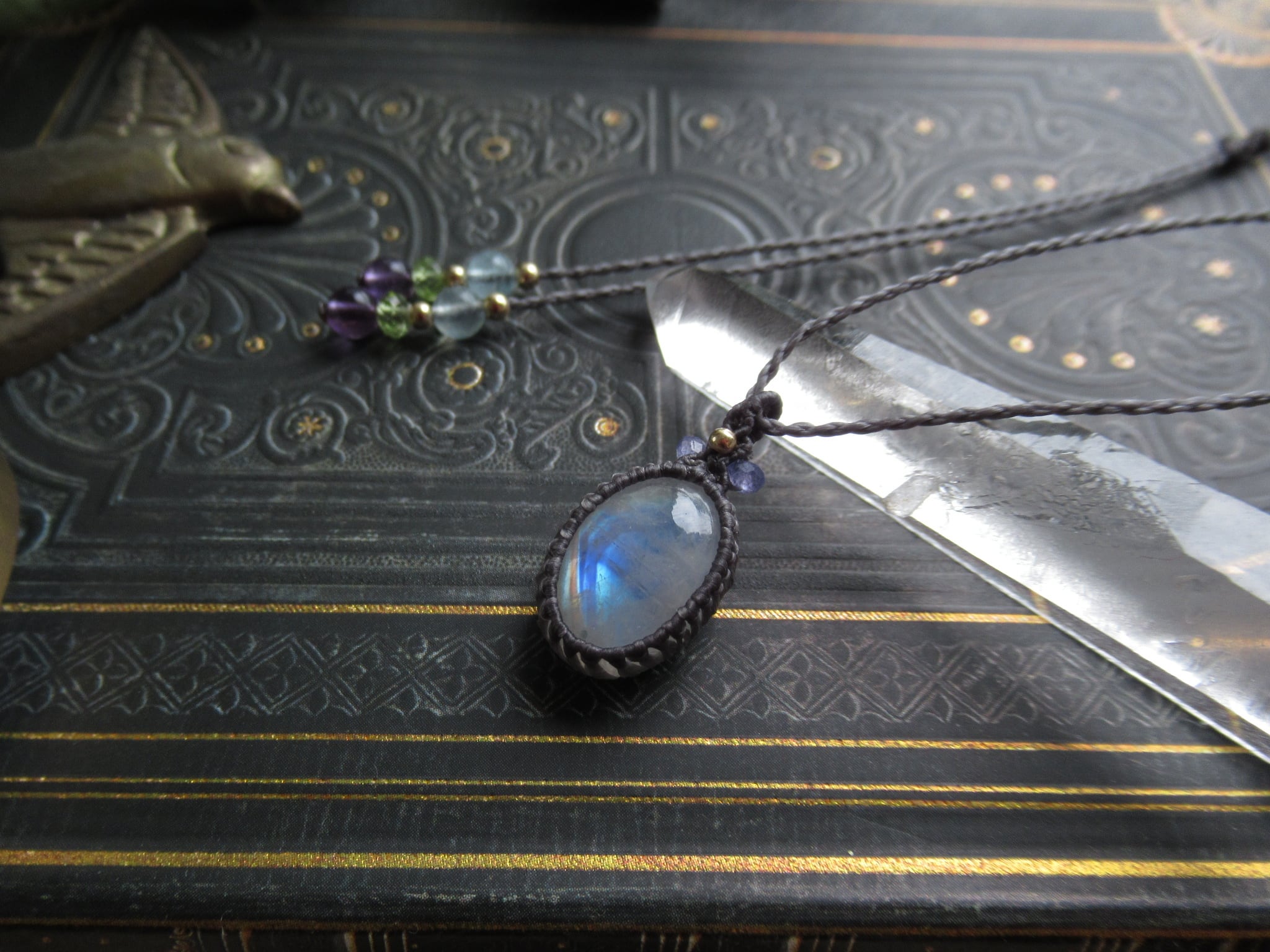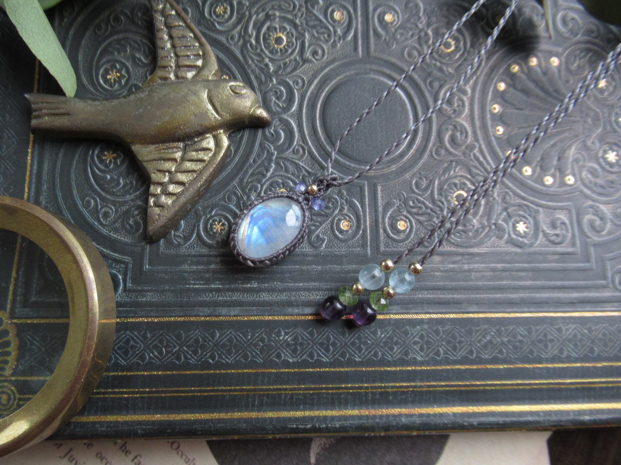 レインボームーンストーンのマクラメペンダント/0.25mm仕上げ