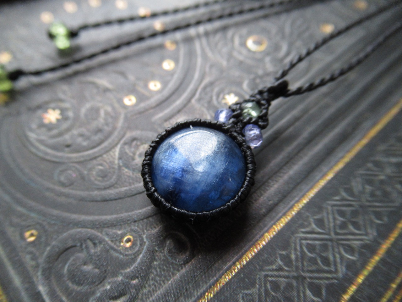ころんとカイヤナイトのマクラメペンダント/0.25mm仕上げ