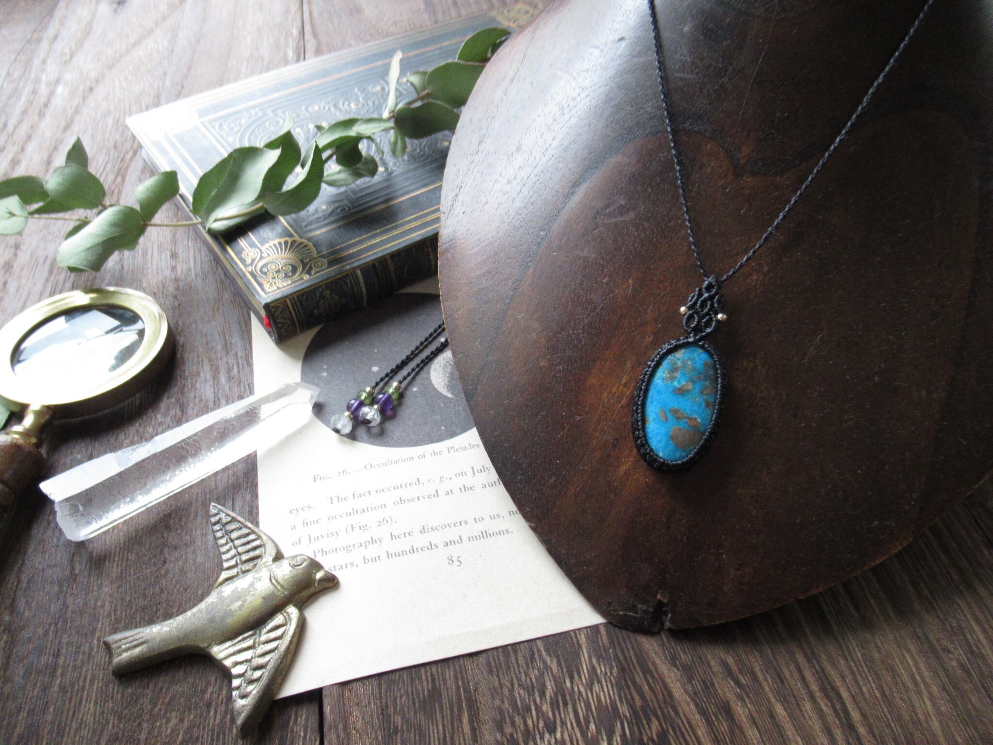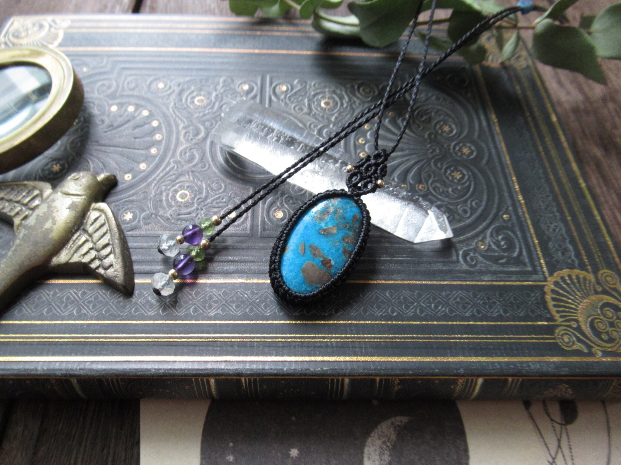ペルシャンターコイズのマクラメペンダント/0.5㎜仕上げ