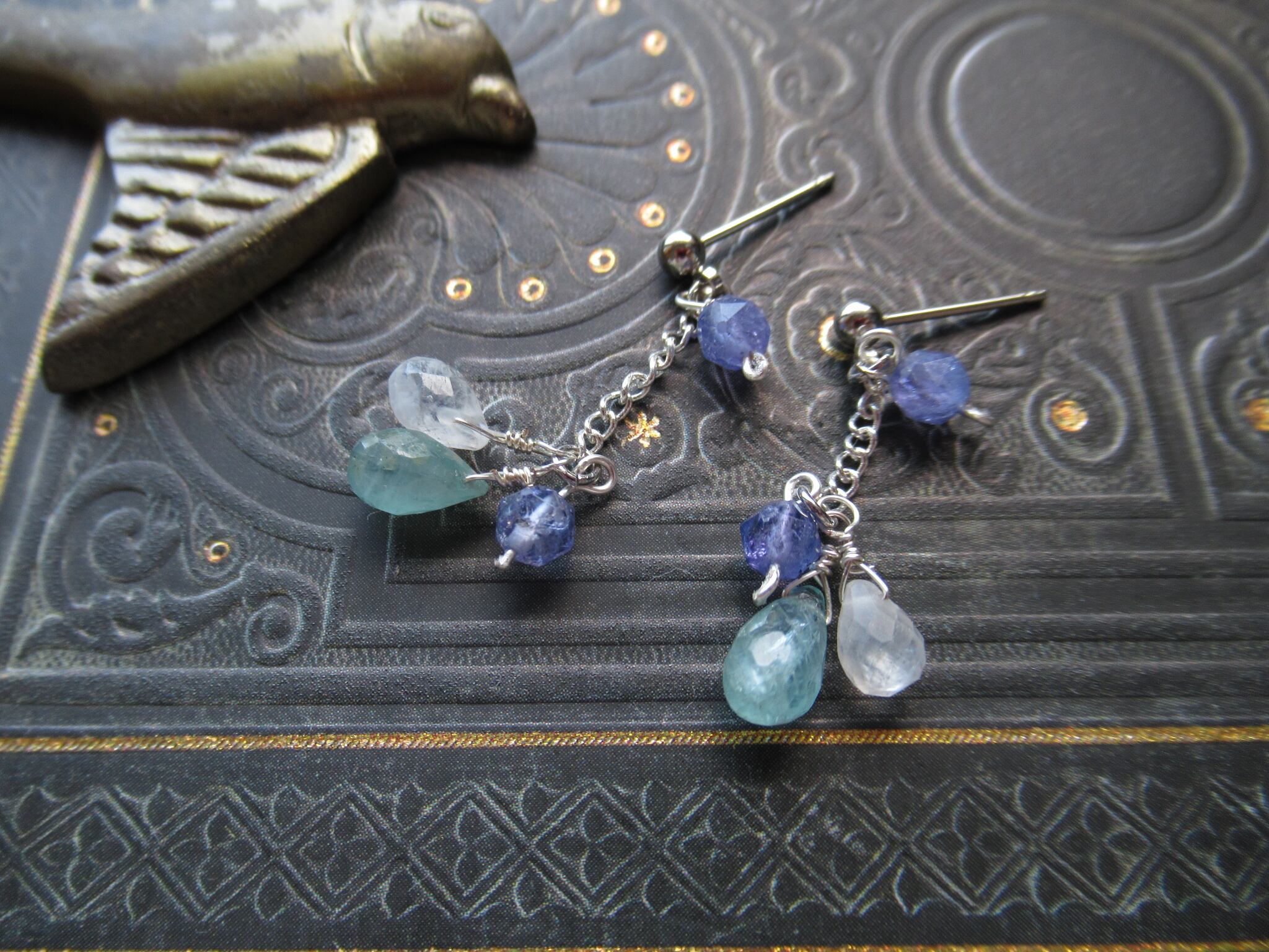 グランディディエライト×タンザナイト×ホワイトラブラドライトのゆらゆら耳飾り