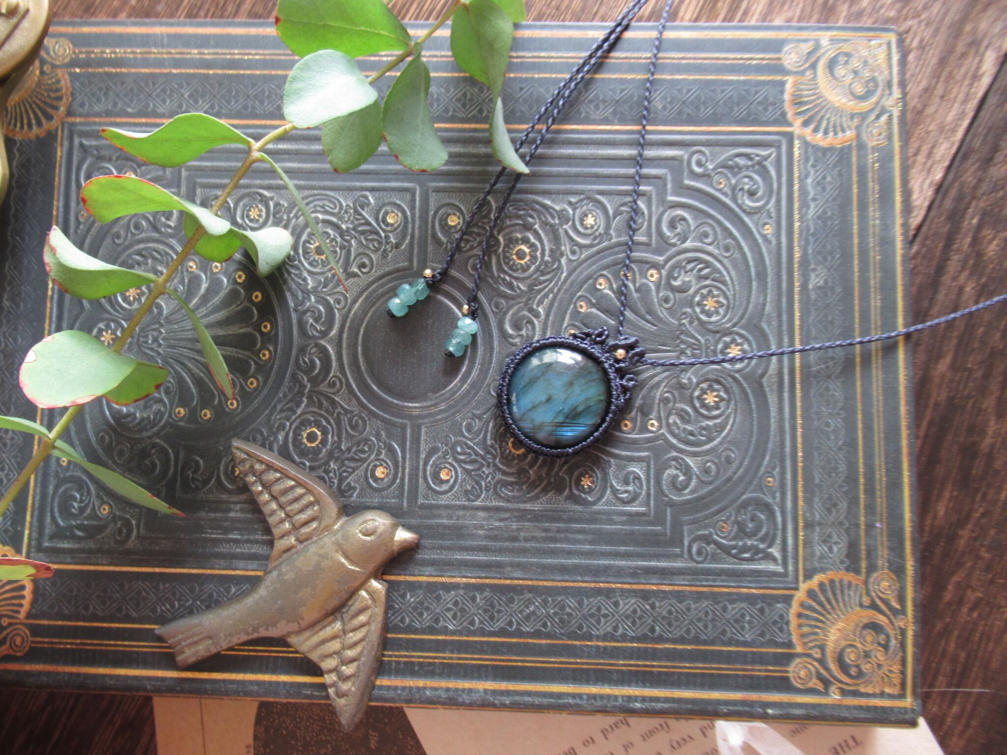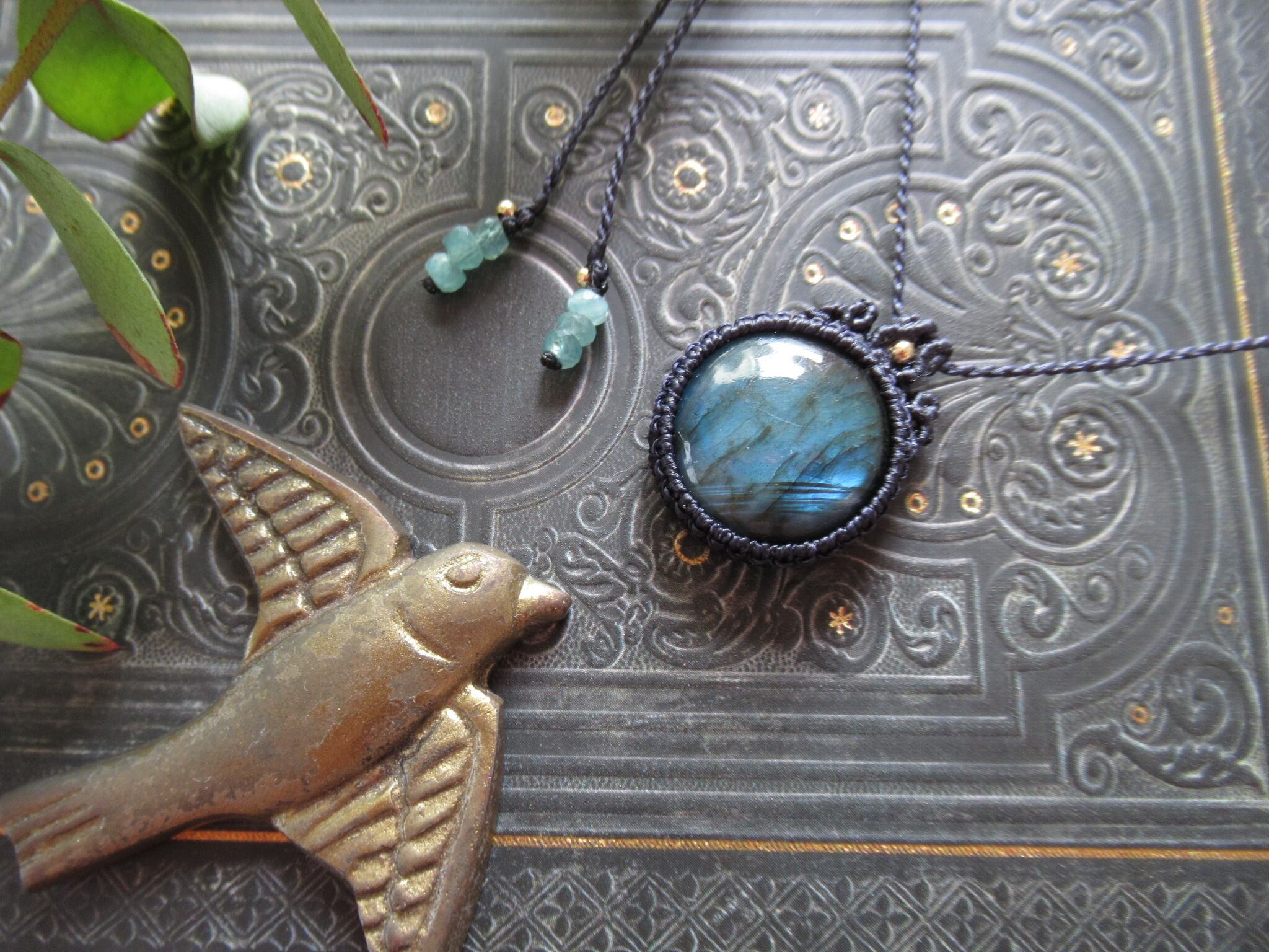 ころんとラブラドライトのマクラメペンダント