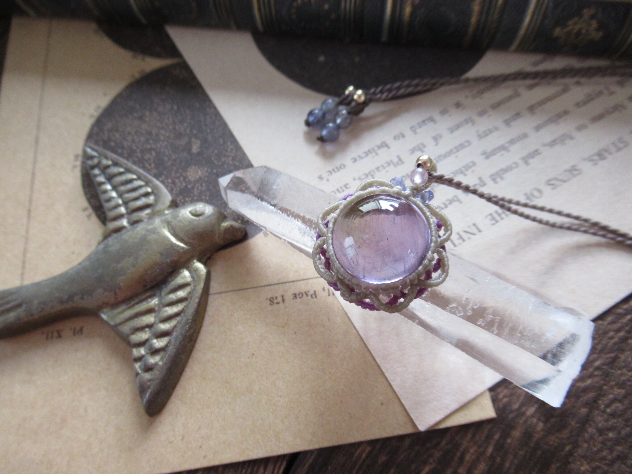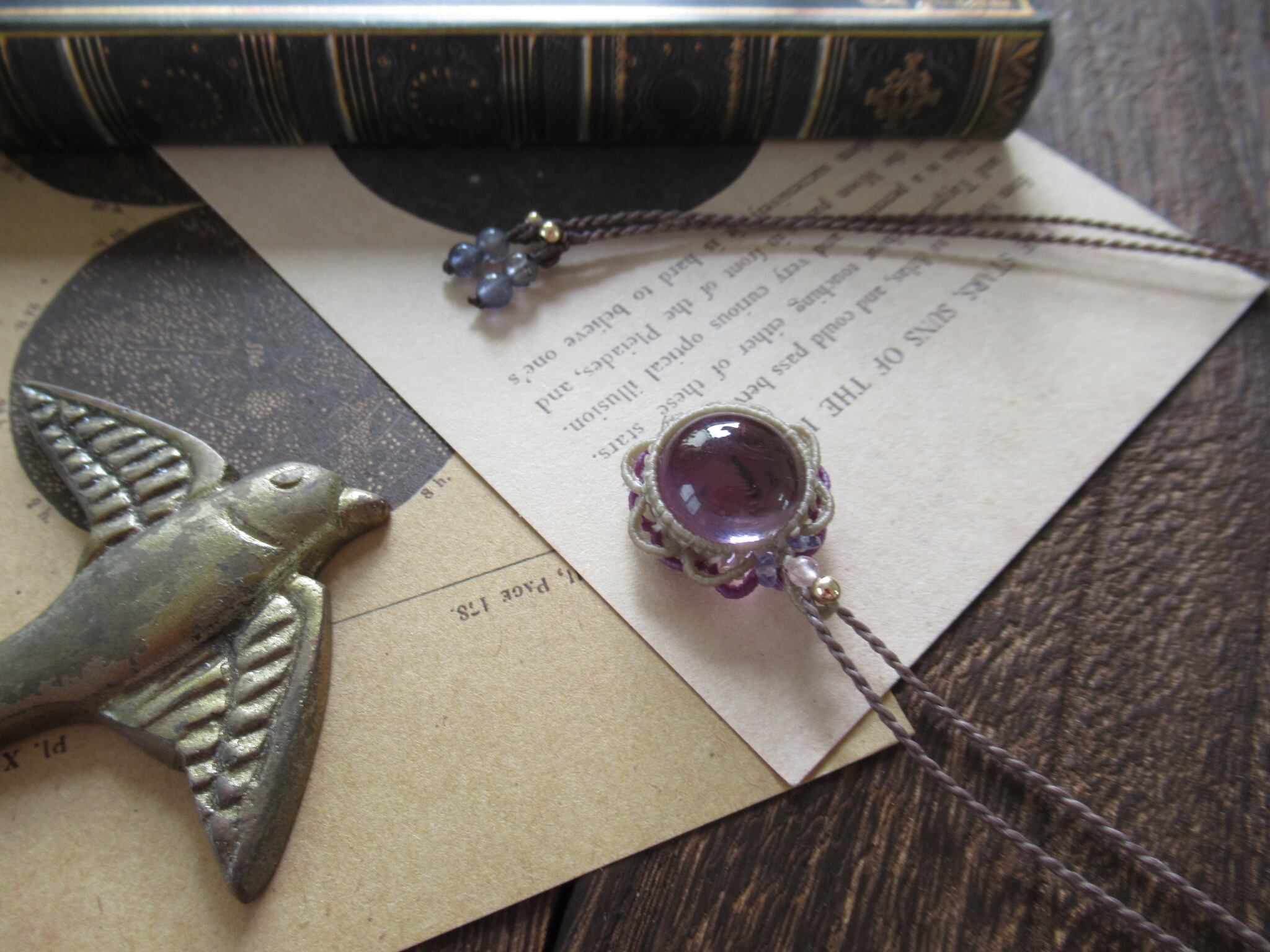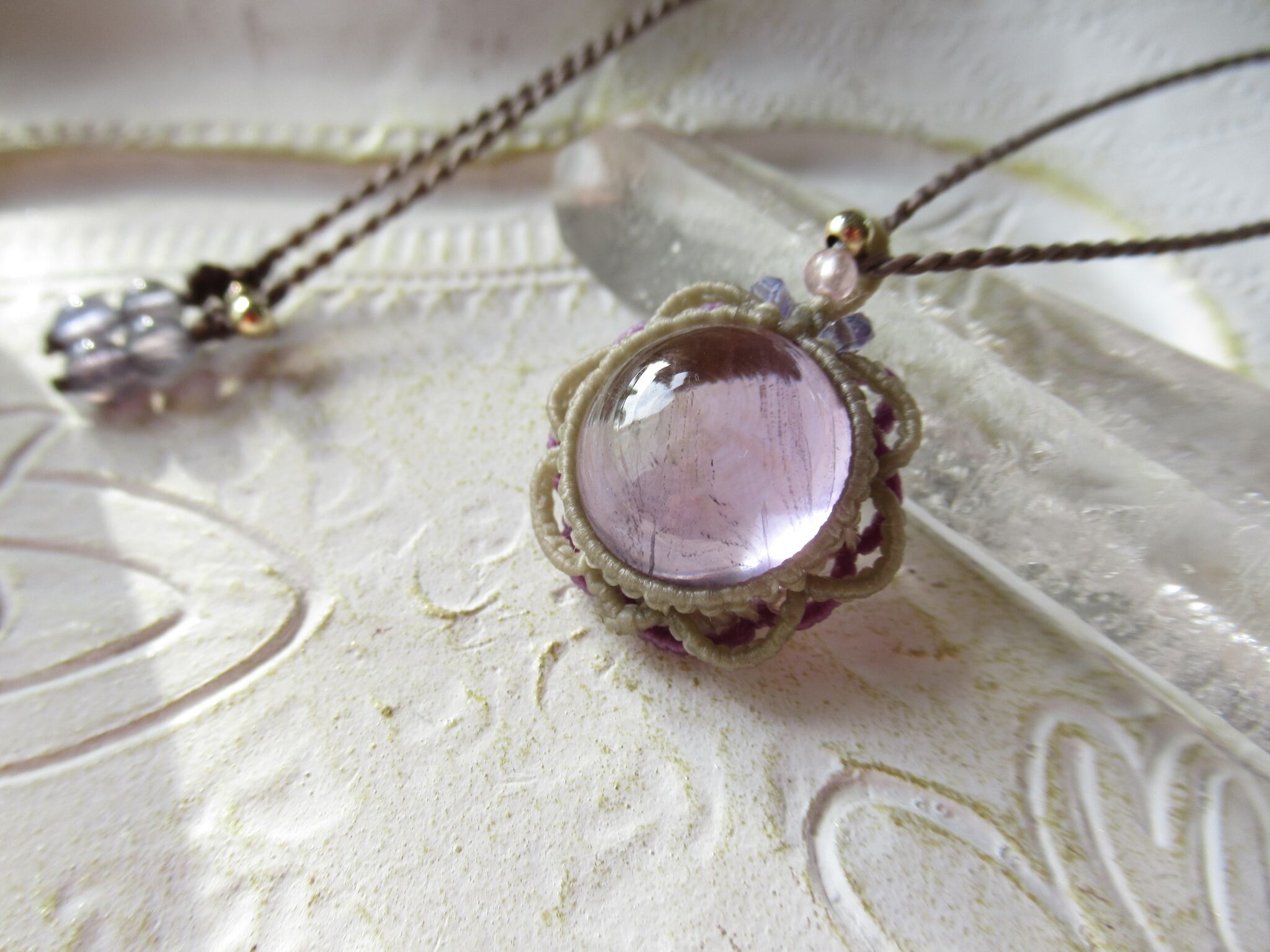 ふんわりとしたライトカラーのアメジストでマクラメペンダントを製作いたしました。