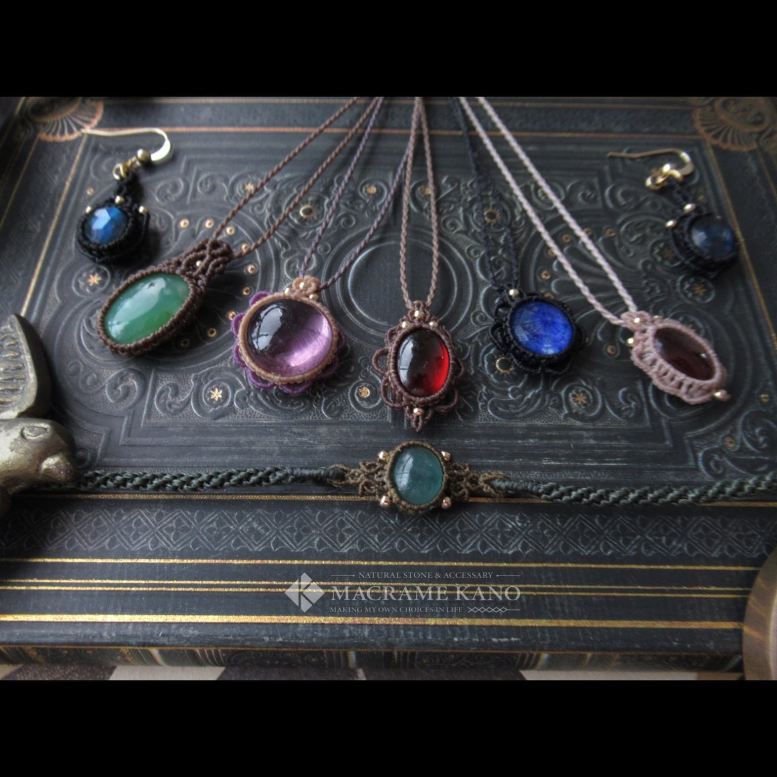 ★マクラメならではの優雅なフレーム編みが楽しめる3way使いのペンダント