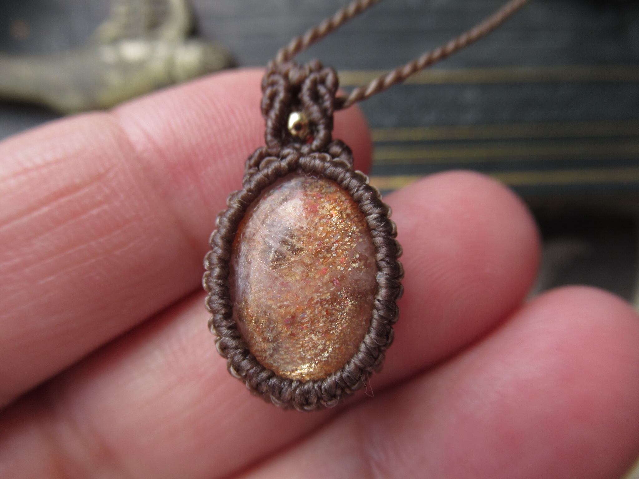 サンストーンのマクラメペンダント / 0.5㎜仕上げ
