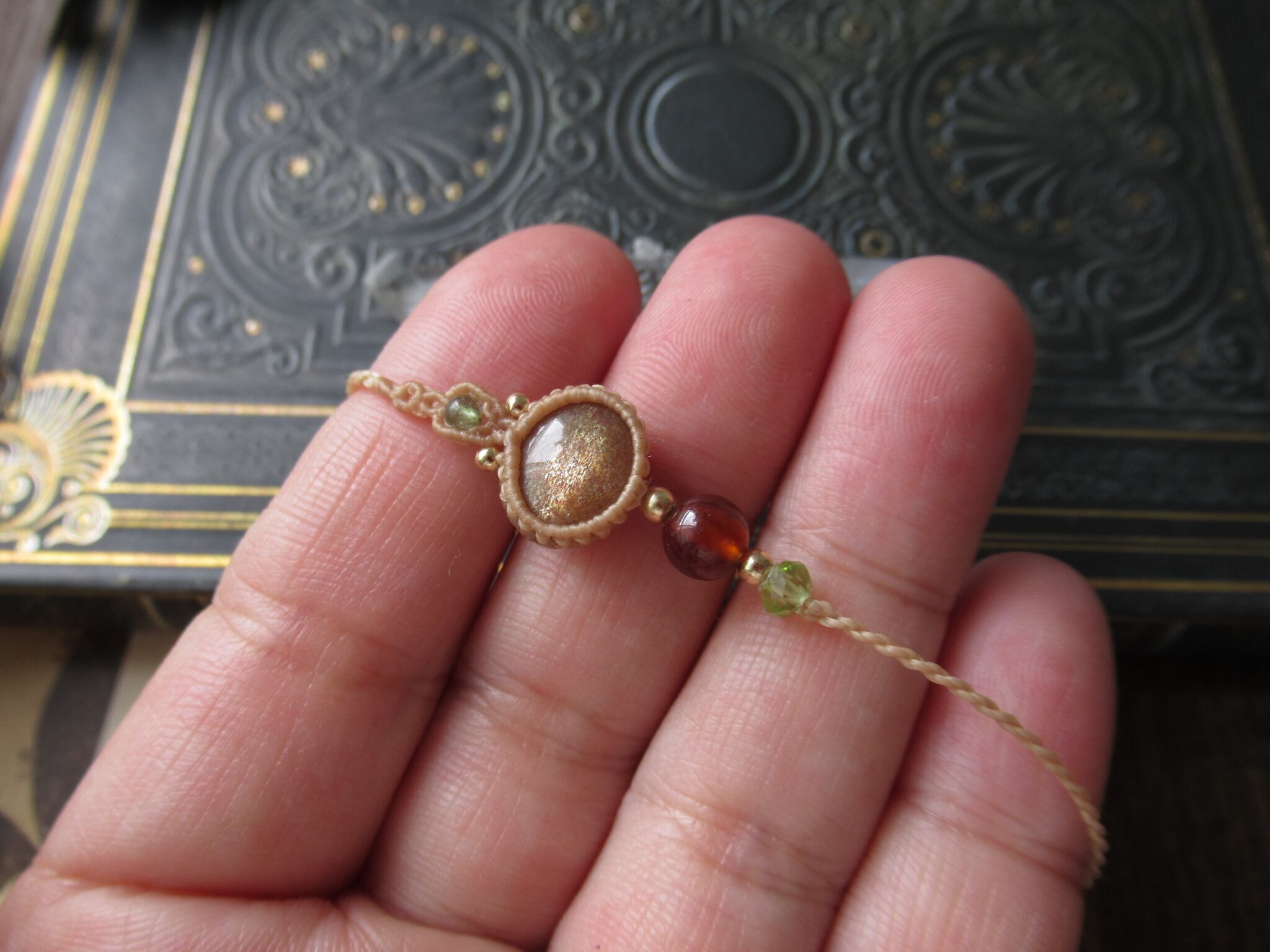 スターサンストーン×天然石ビーズのアシンメトリーブレスレット / 0.25mm仕上げ